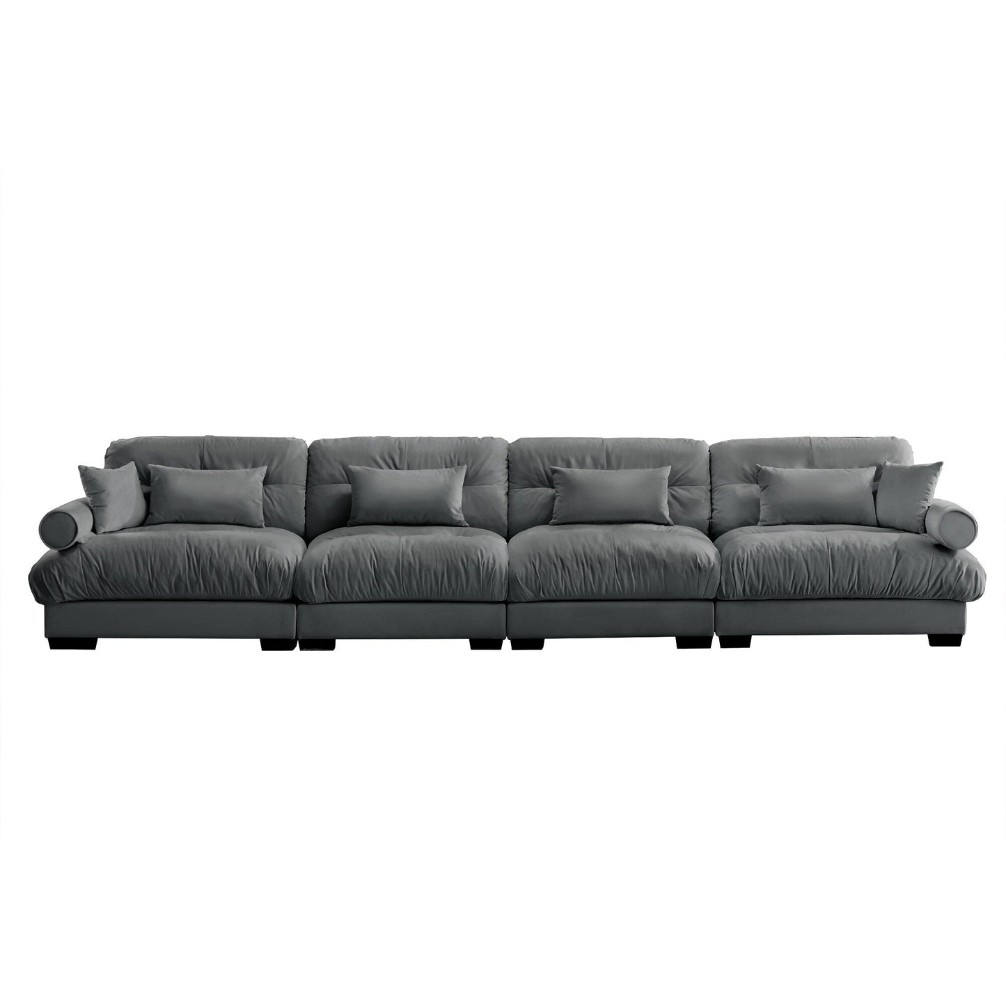 166Velvet 4-Seater Sofa with Bolster Armrests, High-Resilience Sponge...