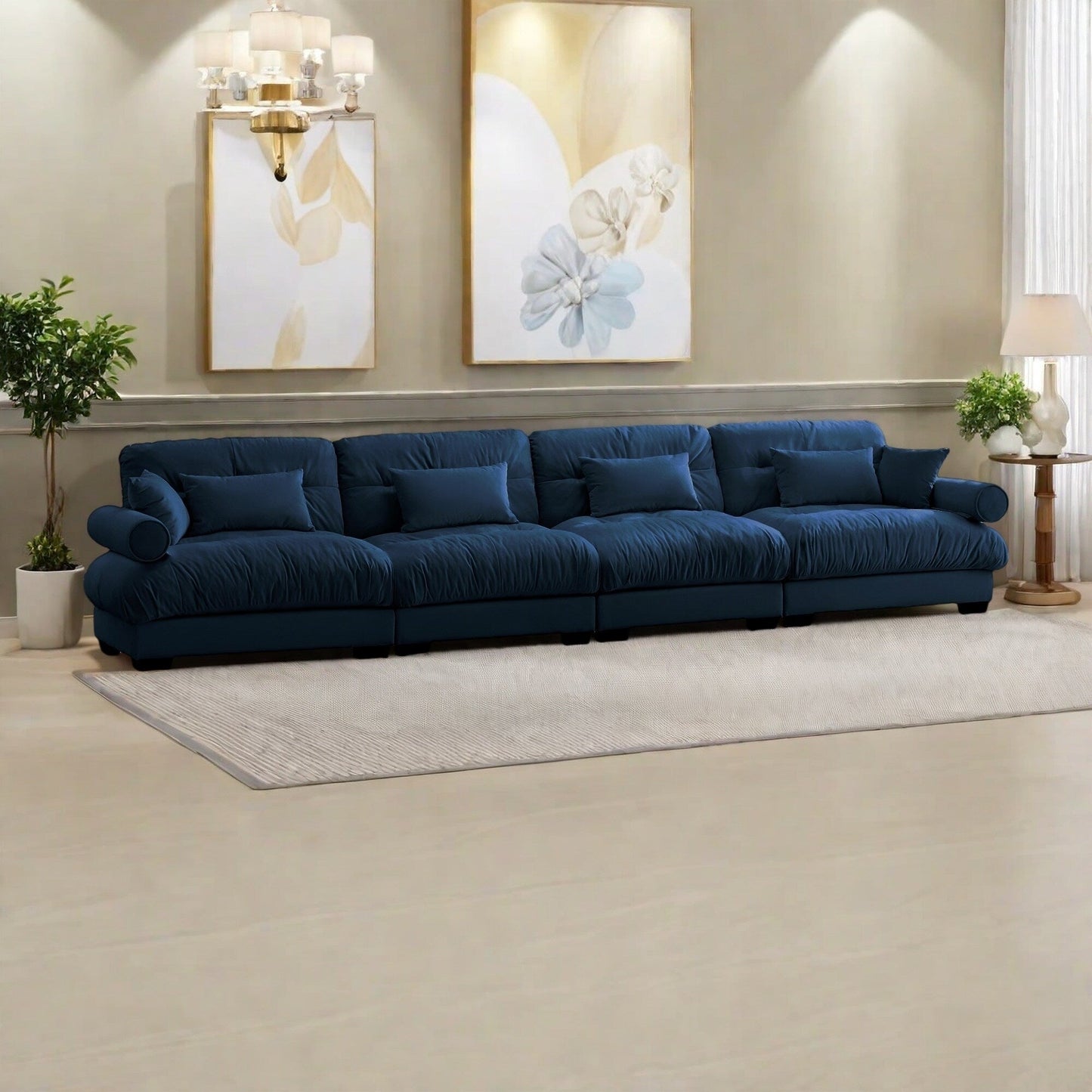 Elevate your living space with this exquisitely designed velvet sofa that combines vintage elegance with cloud-like comfort. Its luxurious round bolster armrests and deep seating create the perfect spot for relaxation, whether you're entertaining guests or enjoying quiet moments. Designed for both style and versatility, this sofa offers flexible configurations to suit any room layout while providing exceptional support and comfort.