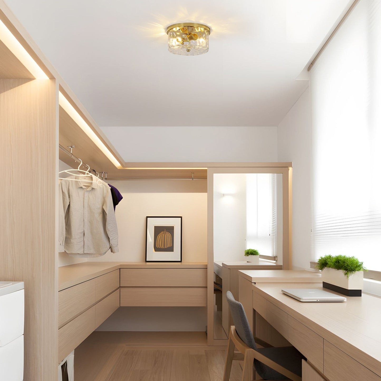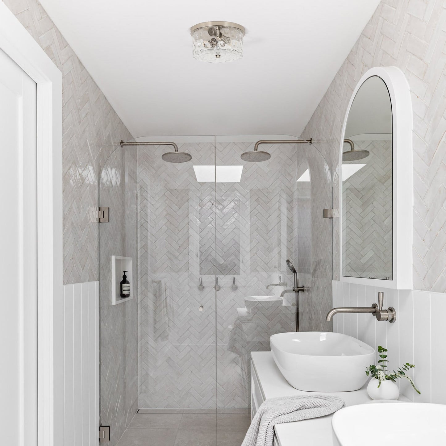 2-Light Flush Mount Ceiling Light with Clear Hammered...