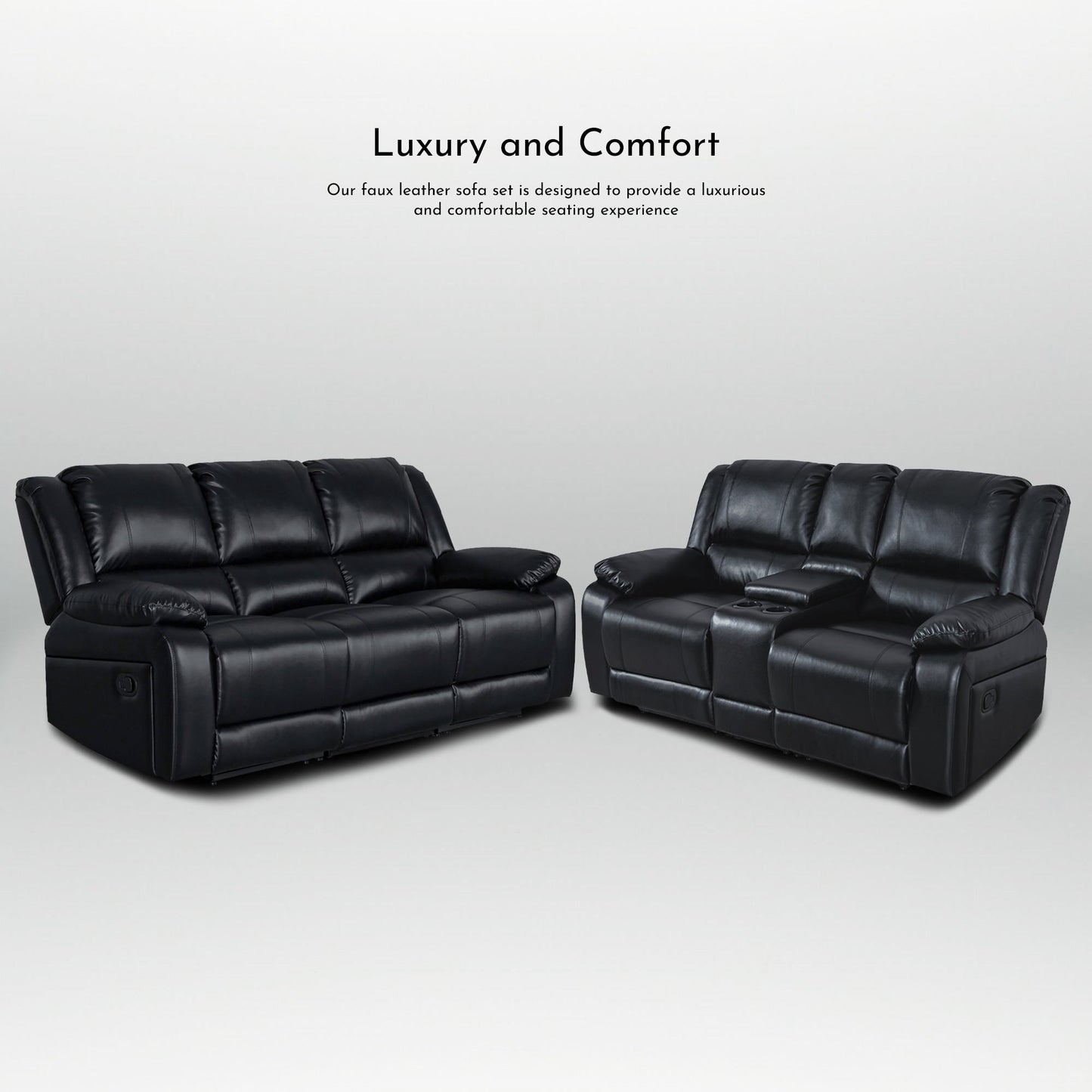 2-Piece Classic Faux Leather Manual Reclining Living Room...