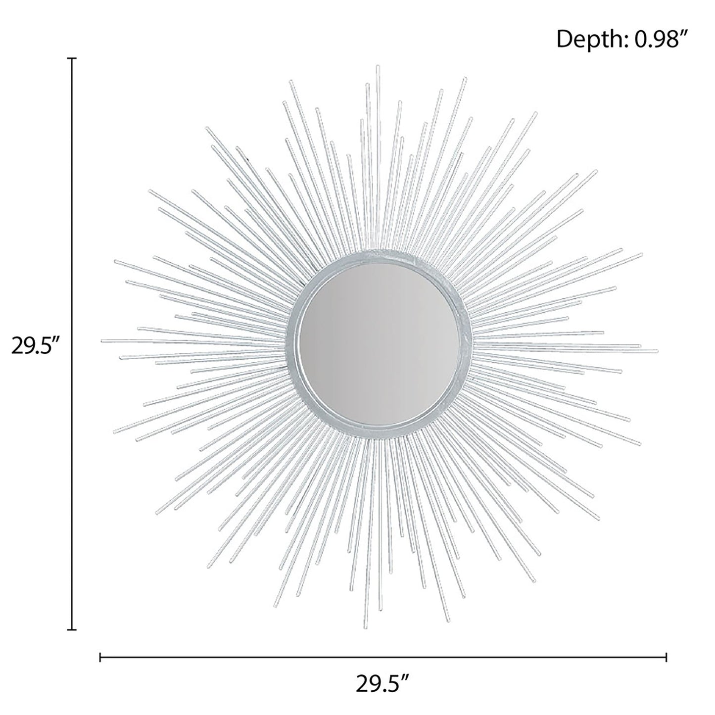 Add a modern and glamorous touch to your space with our Madison Park Sunburst Mirror. A stylized iron frame is featured in a sphere design creating beautiful dimension, while the metal foil adds a rich sheen and luster. The keyhole hanger feature on the reverse of the mirror allows for effortless hanging on your wall. Incorporate this wall mirror into your decor, for the perfect combination of chic luxe and metallic flair. Mirror is sold as a single piece and does not come as a set; Handle with care; Gently wipe clean with a damp cloth