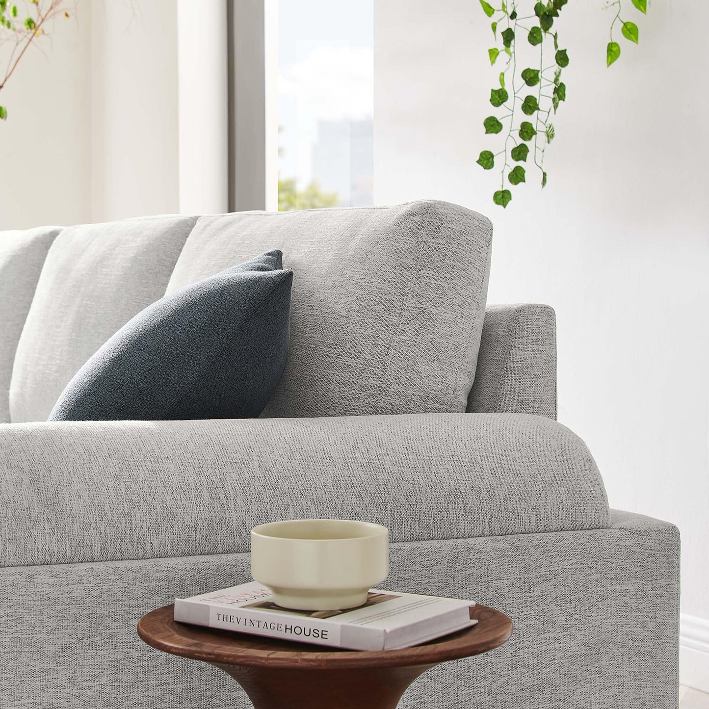 Experience contemporary luxury with the Oasis Fabric Upholstered Sofa bringing modern design and a streamlined silhouette to your living room, lounge area, or office. Featuring a deep, cozy seat, this comfortable couch offers unparalleled relaxation with armrests that resemble oversized bolster pillows. The dense foam padded cushions with pocket springs provide premium support, while the sinuous spring support system ensures lasting durability. Covered in stain-resistant polyester fabric, this upholstered sofa exudes elegance while resting on a sturdy wood veneer plinth base. Assembly is a breeze, allowing you to effortlessly bring this luxurious piece into your home. Elevate your living space with this modern sofa that combines comfort, style, and convenience. Weight Capacity: 600 lbs.