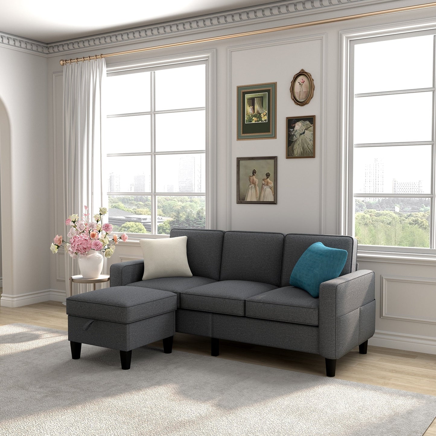 Soft Fabric Convertible Modular Sofa and...
