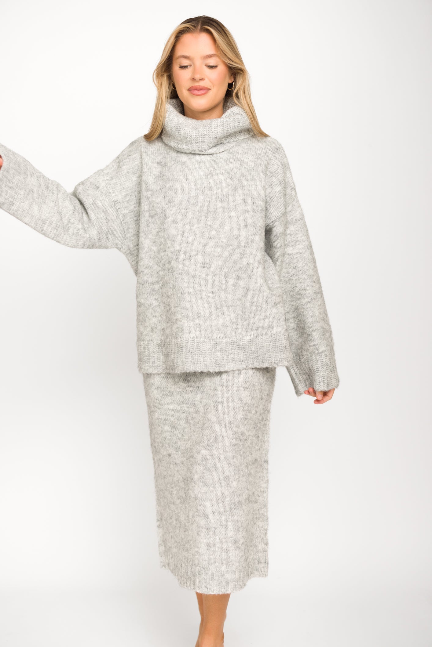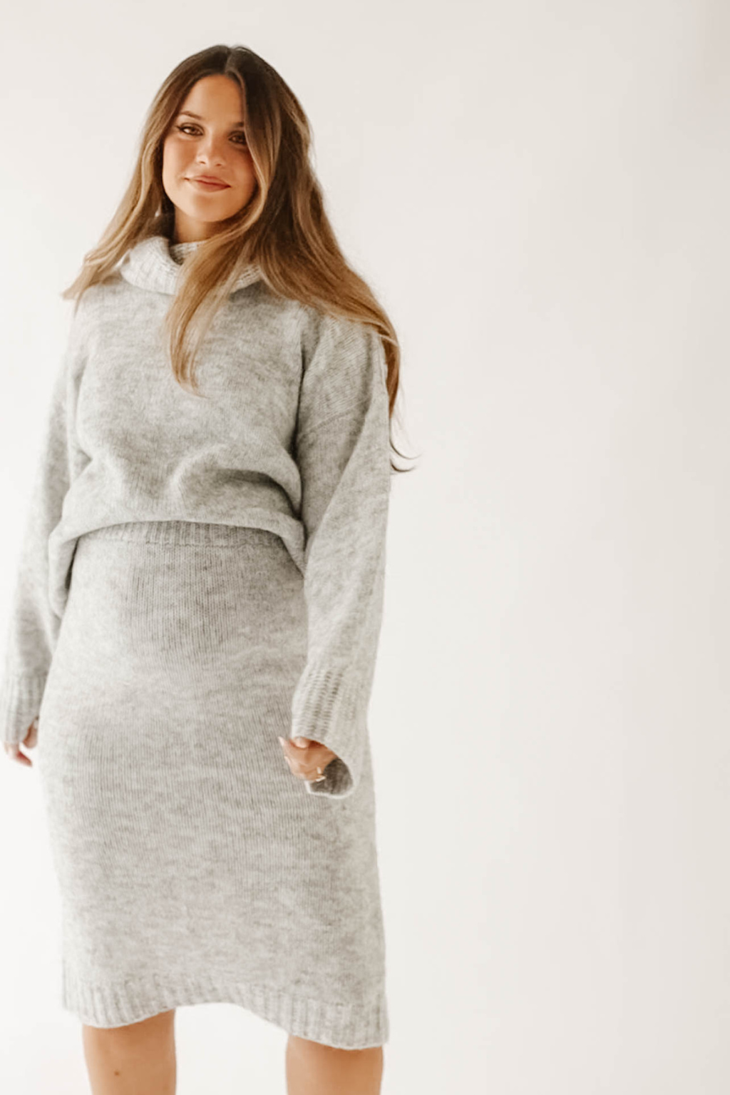 Midi skirts are everywhere this season, but the Robyn features the coziest knit and perfect fit you've been looking for. This stretchy skirt is woven from a beautiful wool combination, and pairs elegantly with the matching Knit Pullover or your favorite tank or bodysuit.
