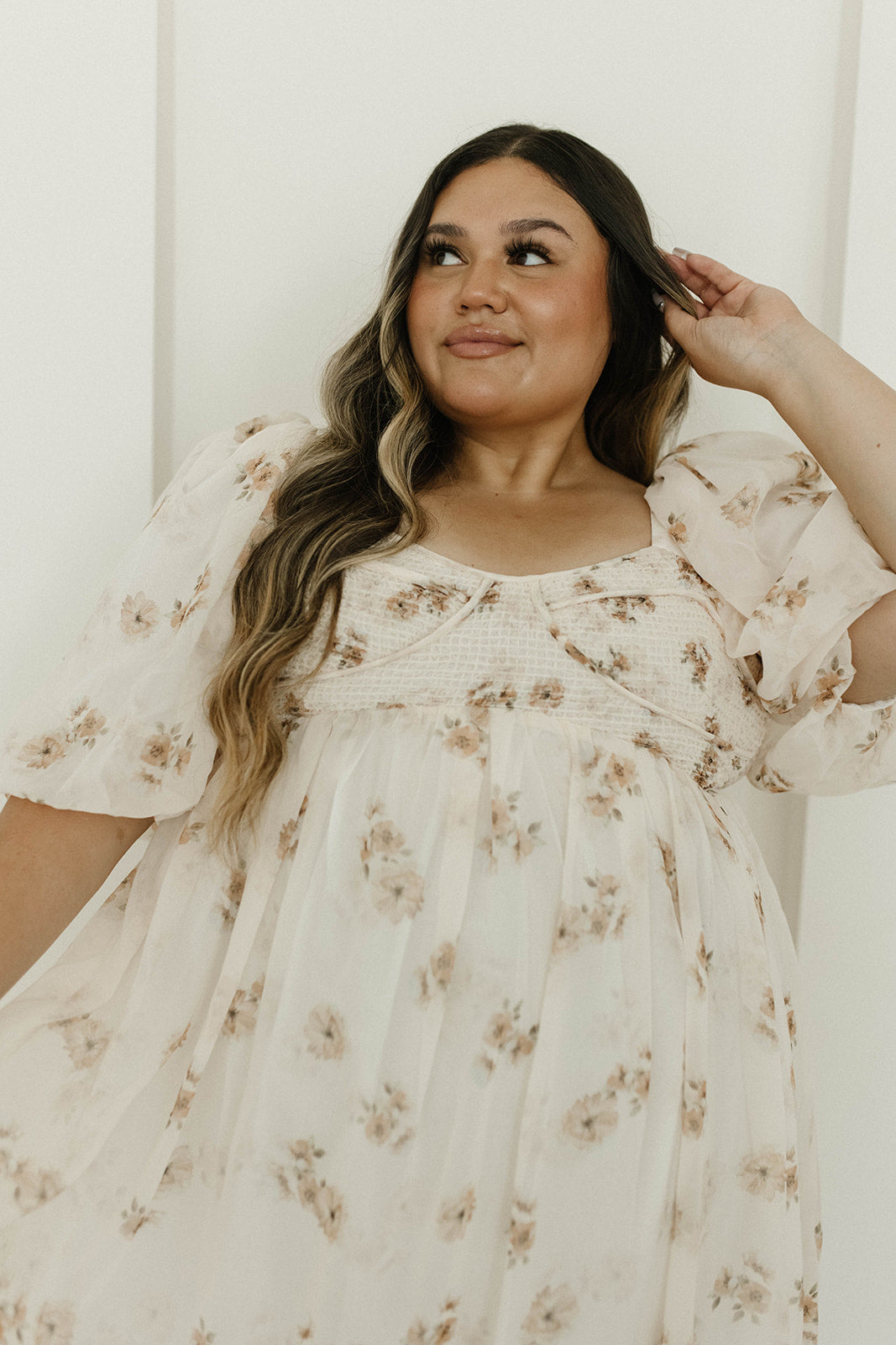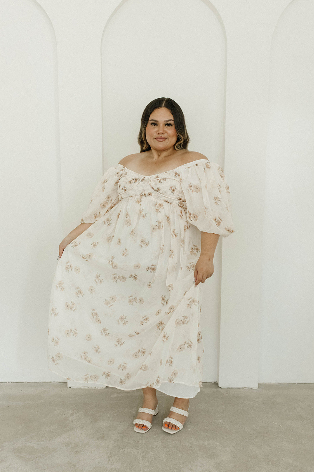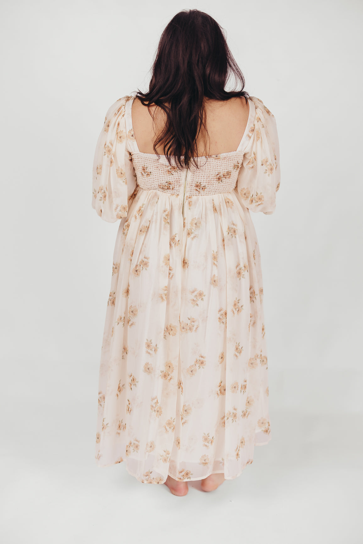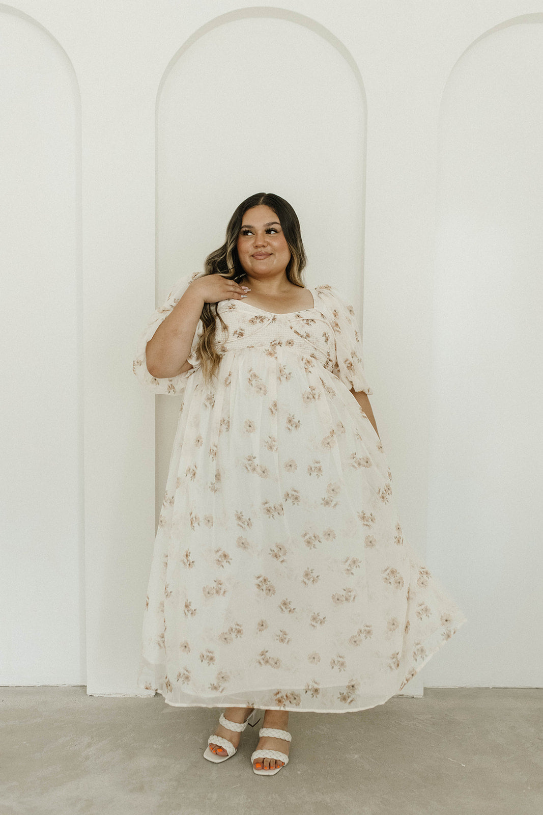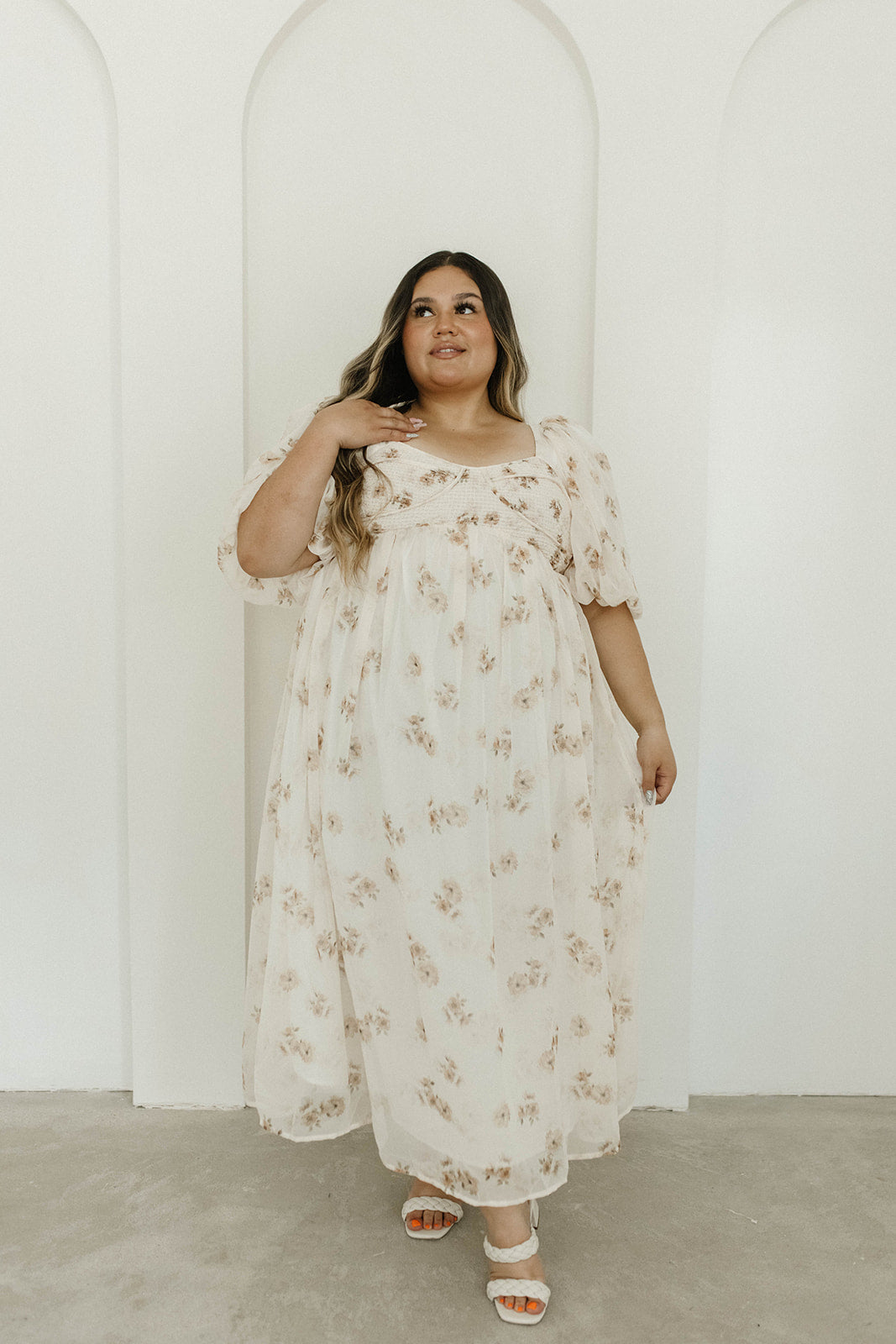 Harlow Maxi Dress in Taupe Floral - Bump Friendly & Inclusive Sizing (S-3XL)