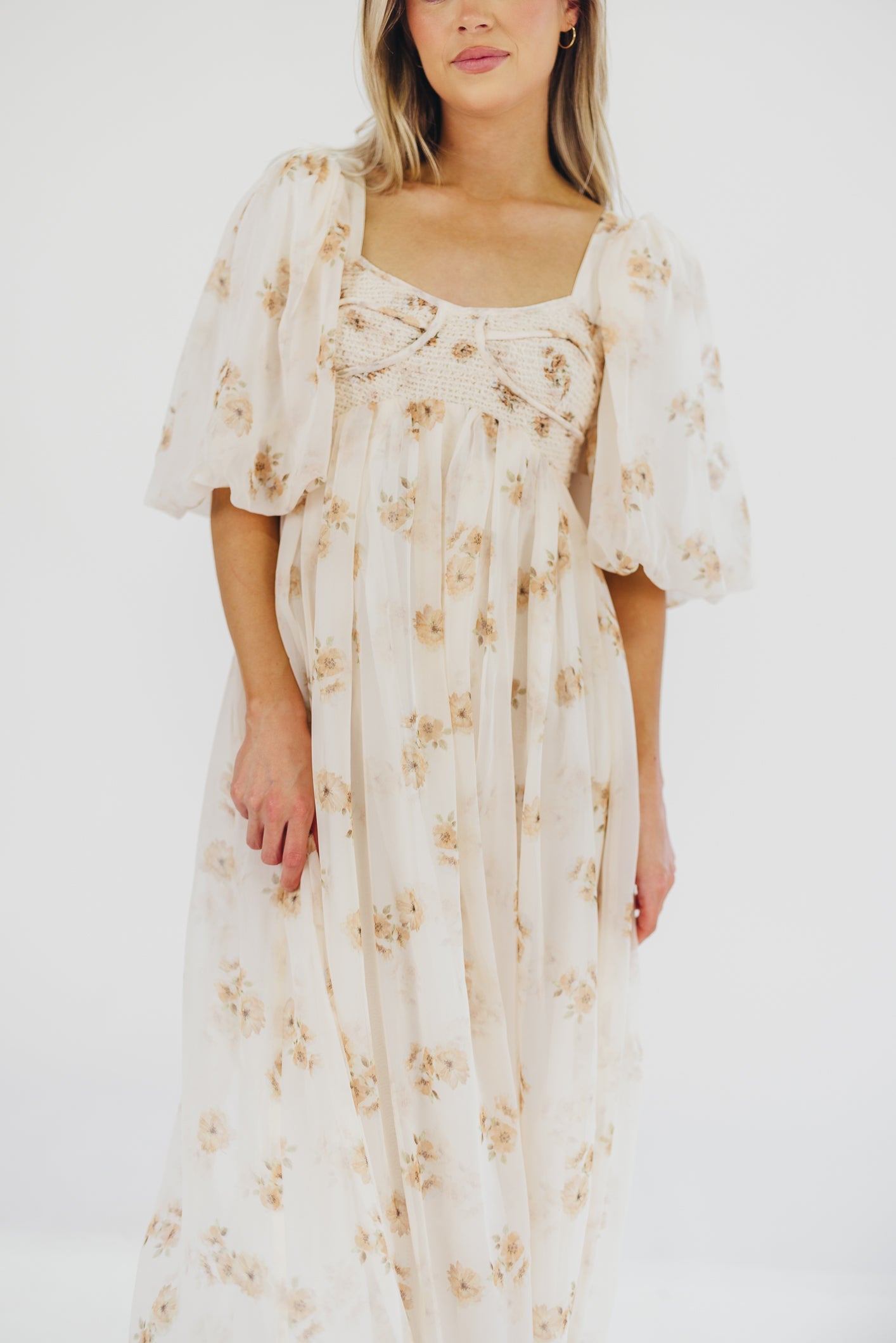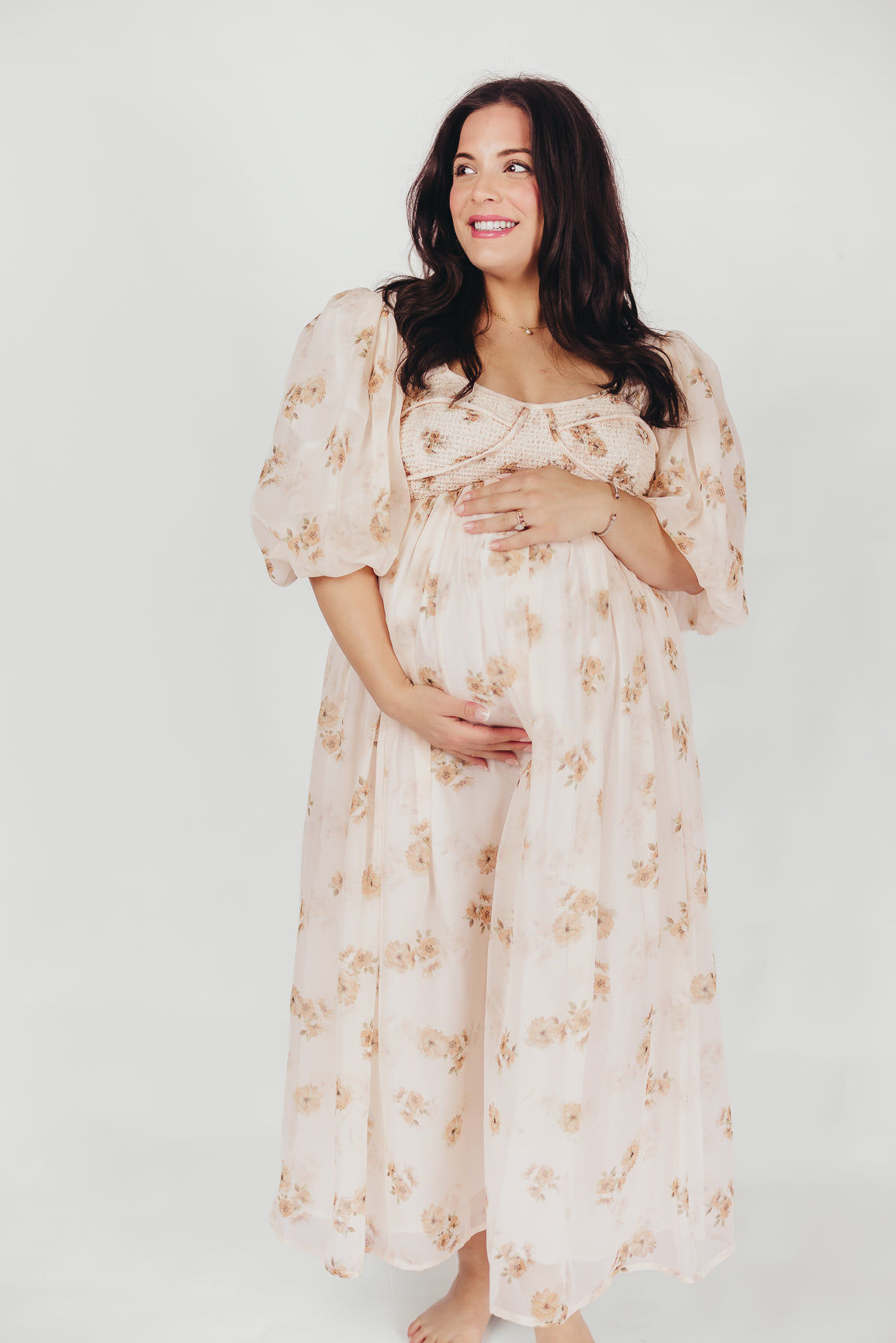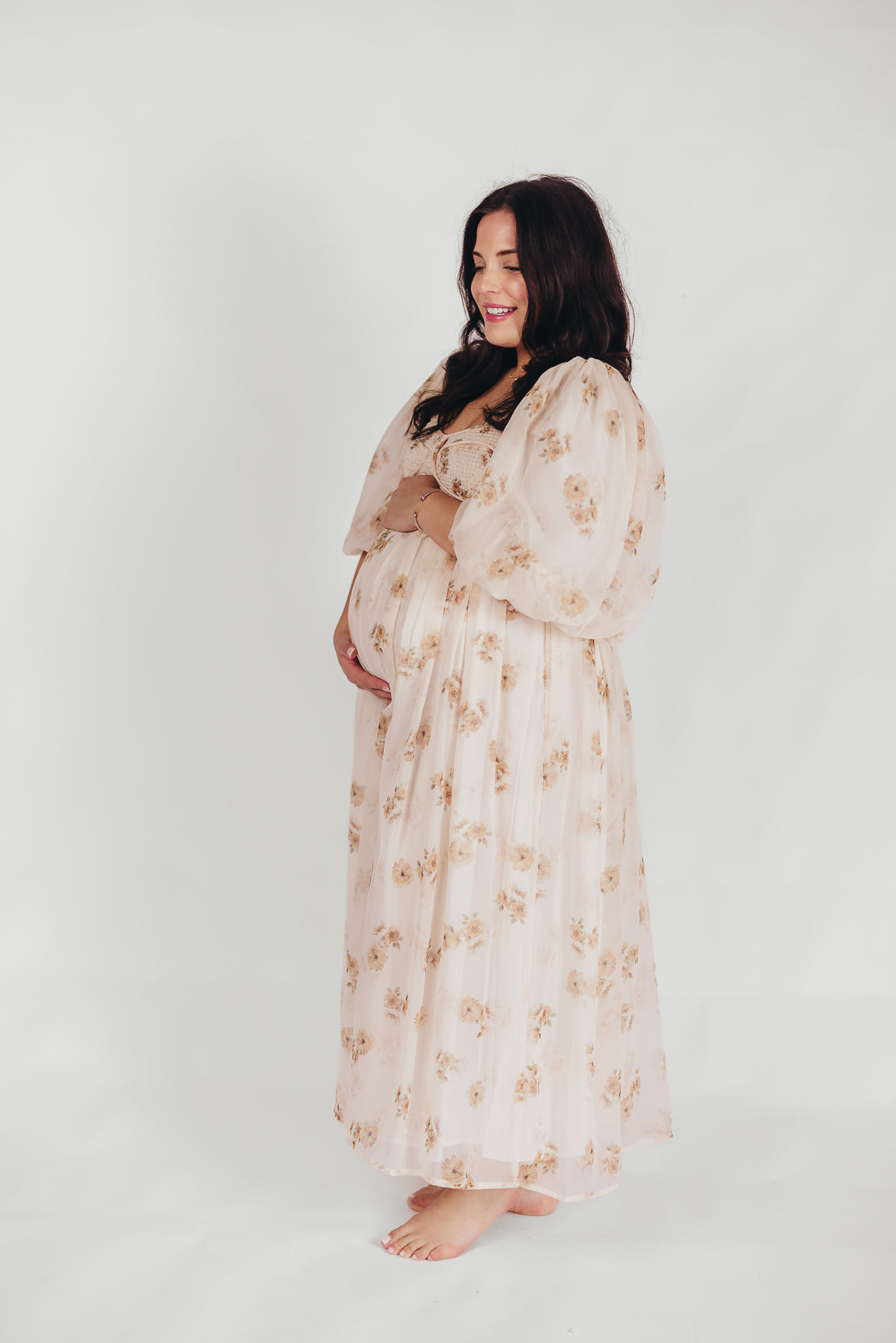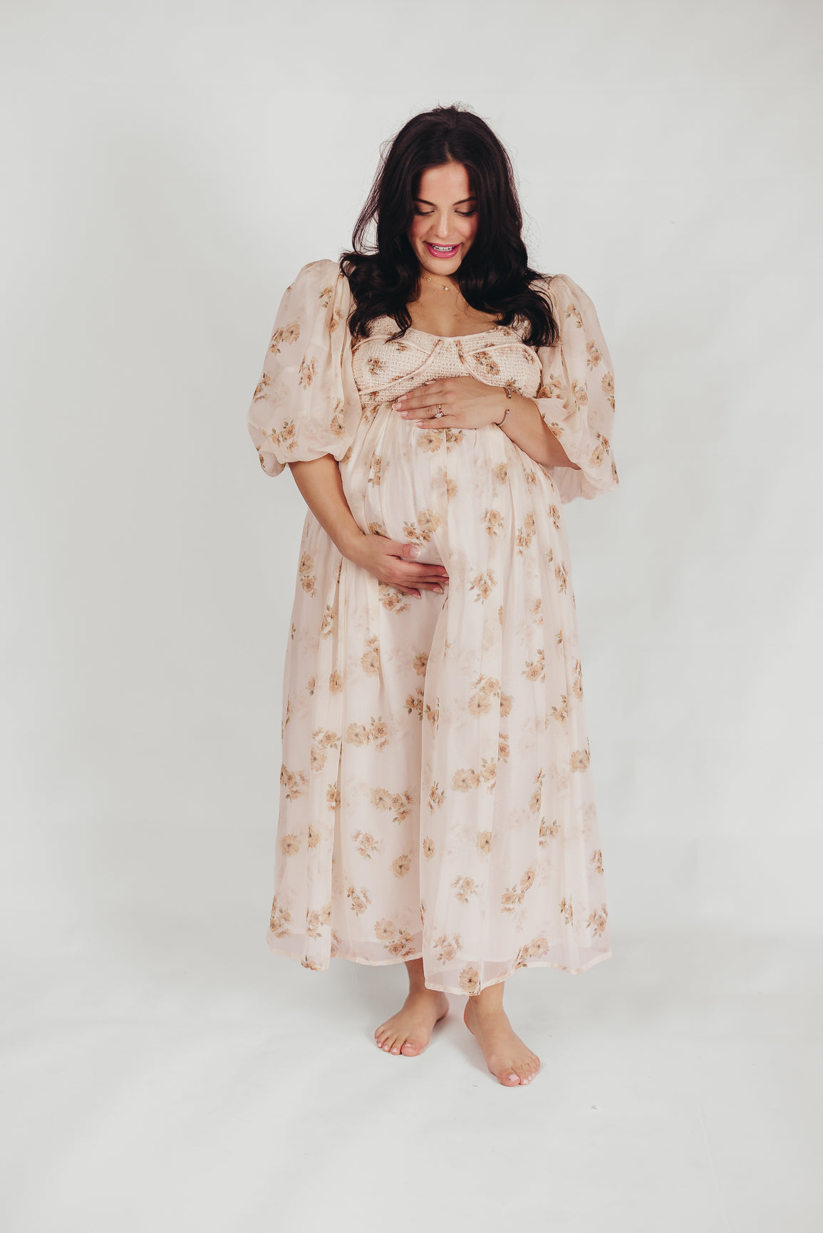 Harlow Maxi Dress in Taupe Floral - Bump...