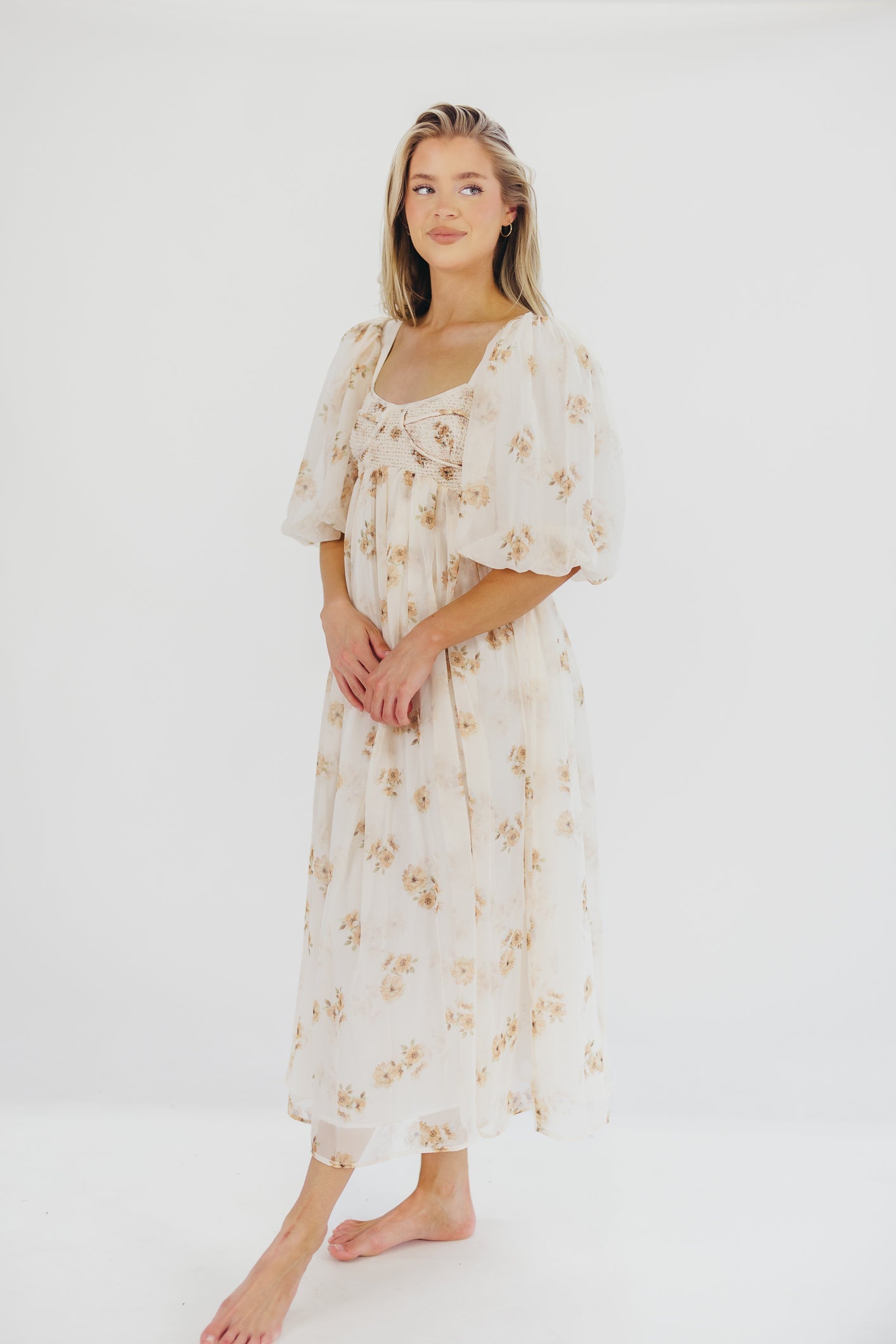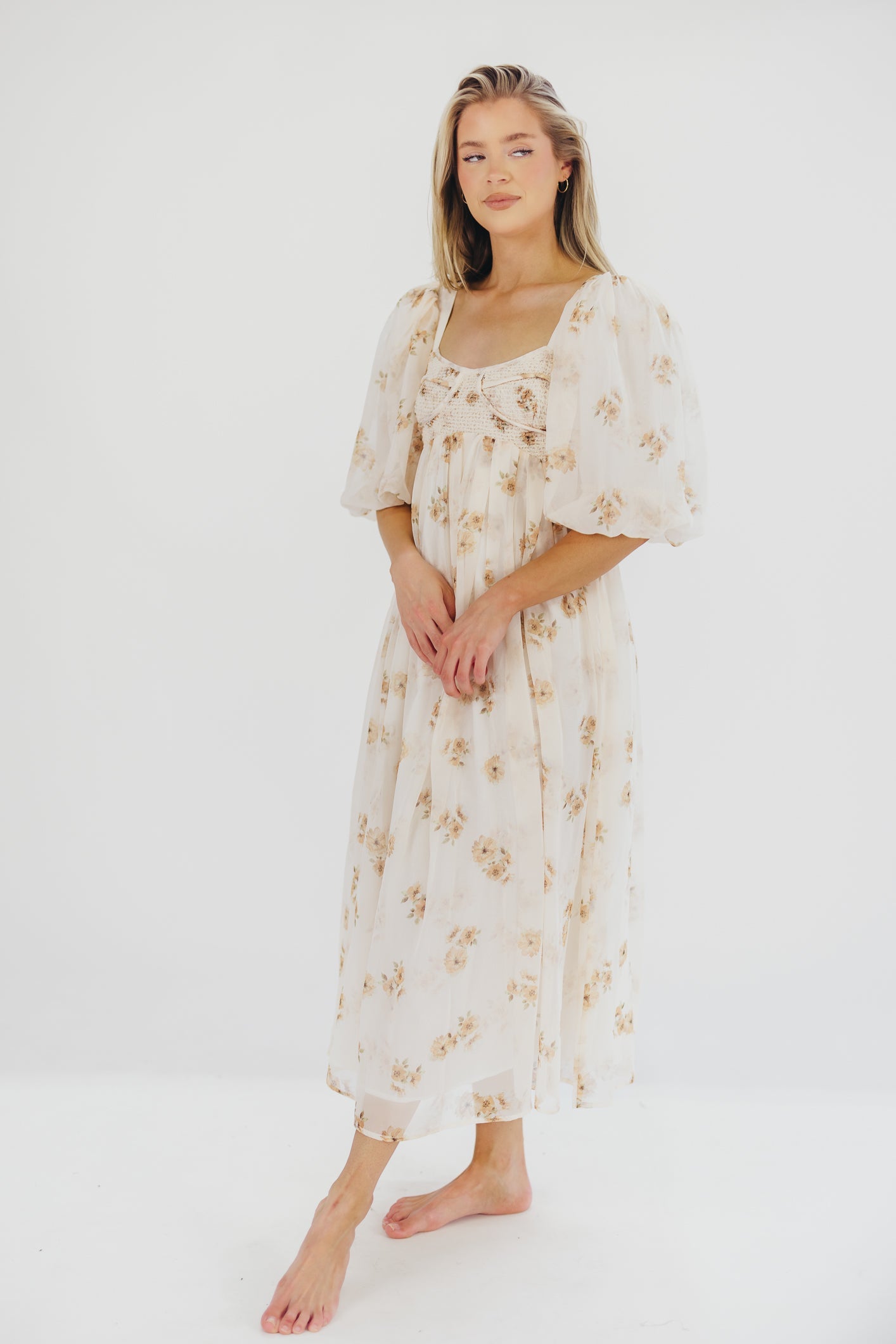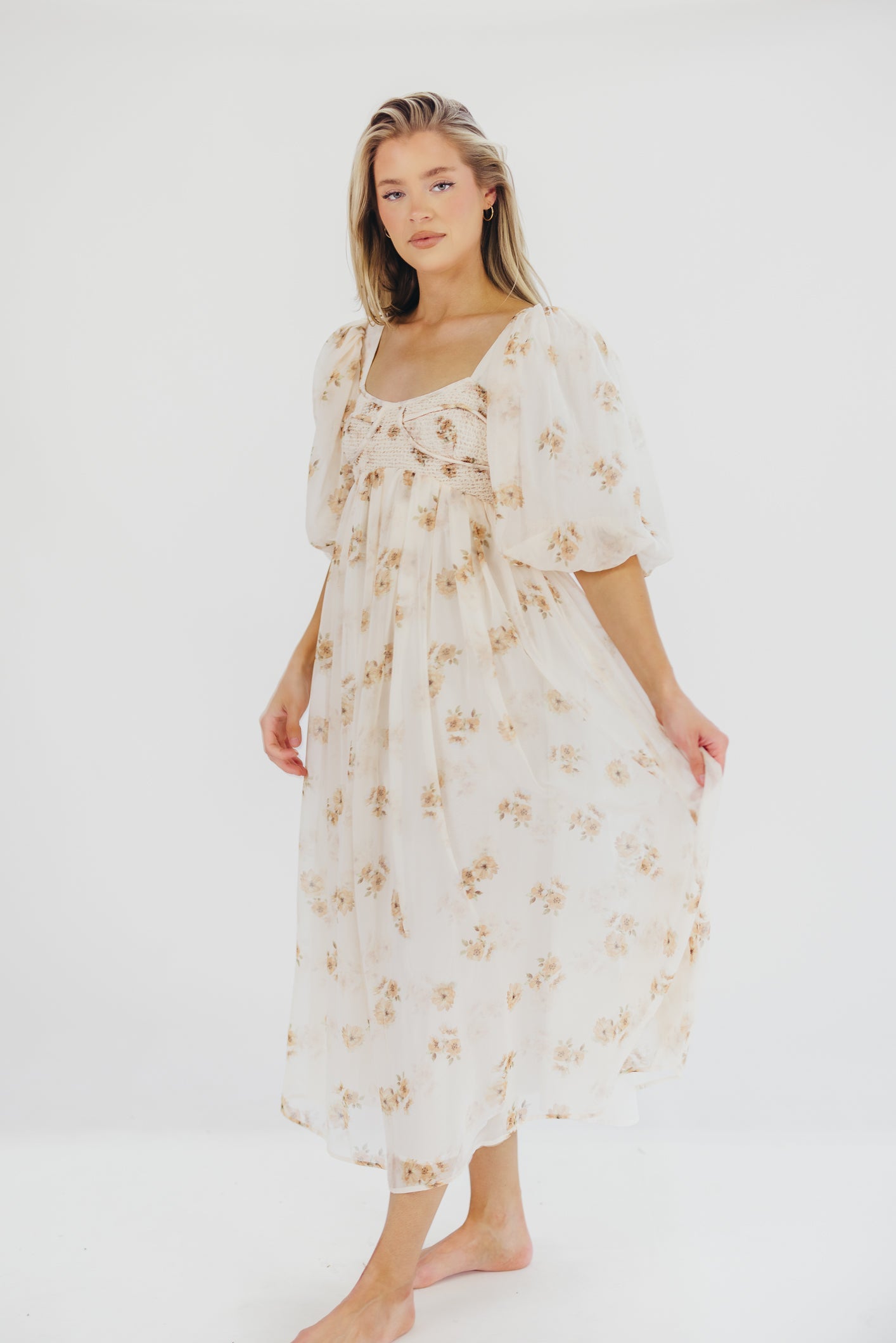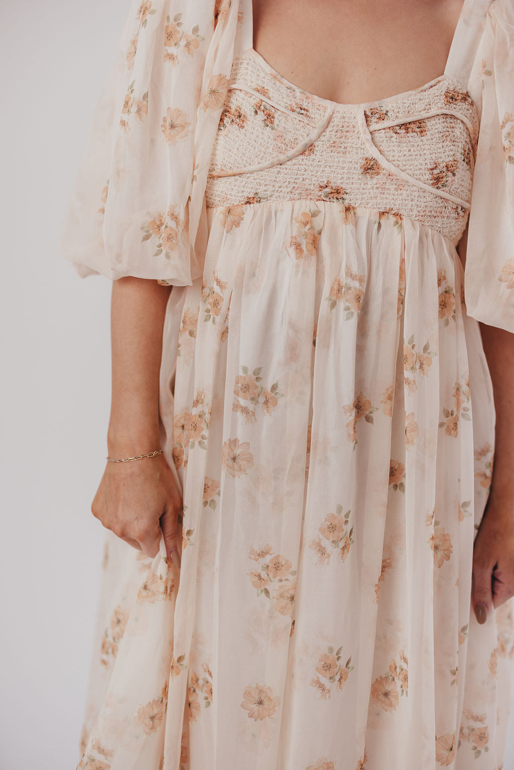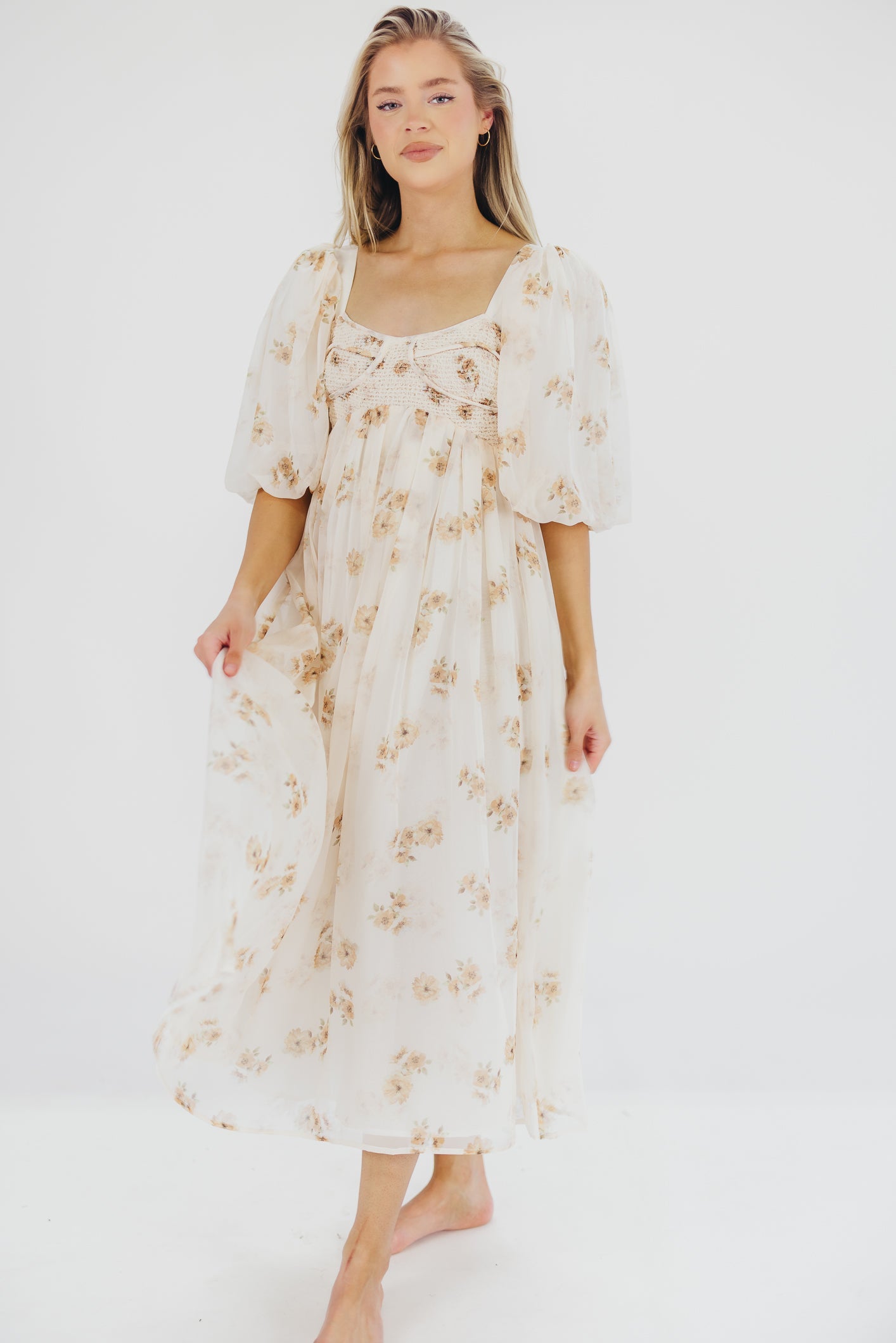 Harlow Maxi Dress in Taupe Floral - Bump...