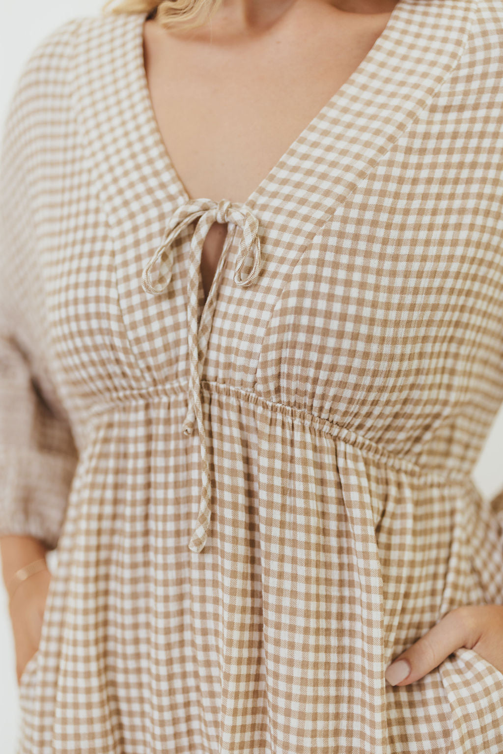 Hunter Printed Gauze Midi Dress in Natural Plaid...