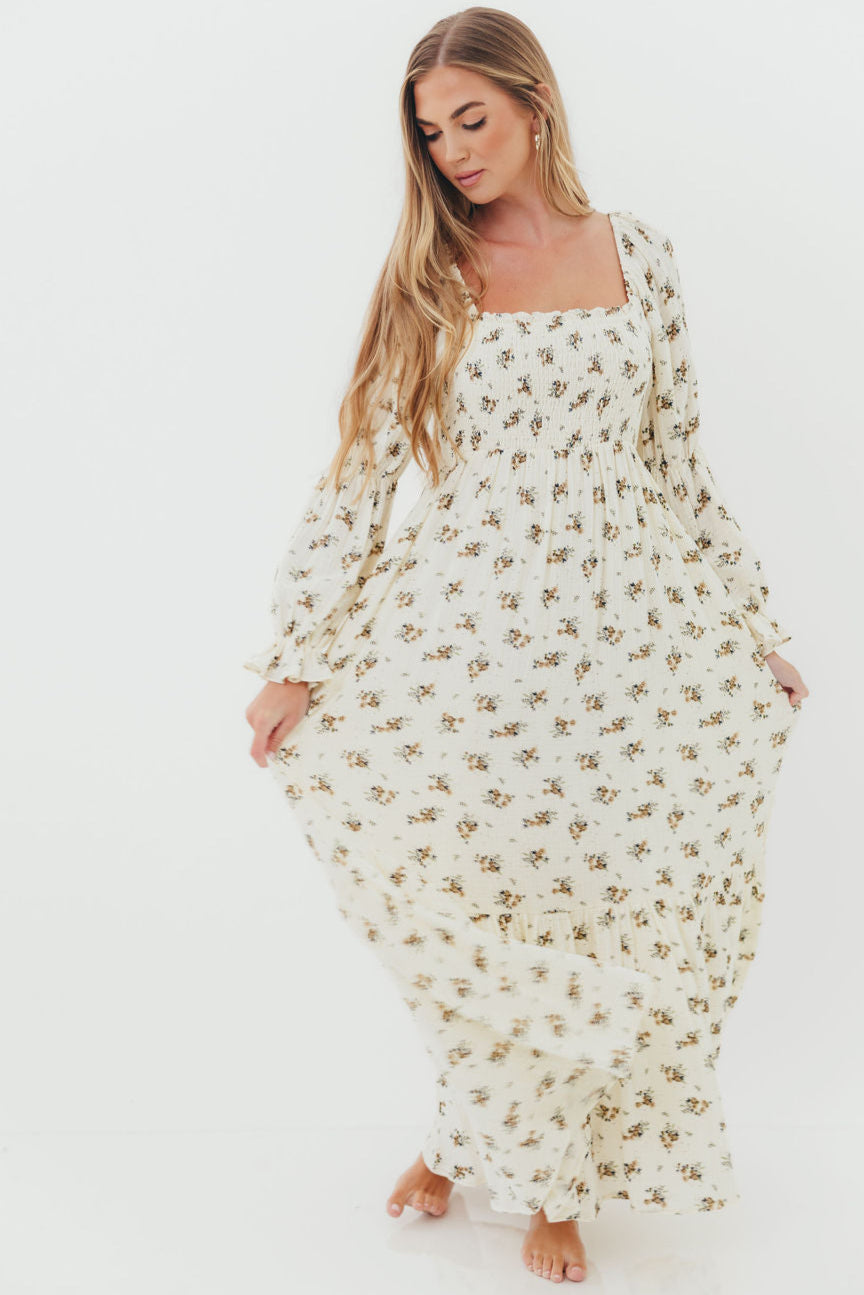 Emerson 100% Cotton Smocked Maxi Dress with Long...