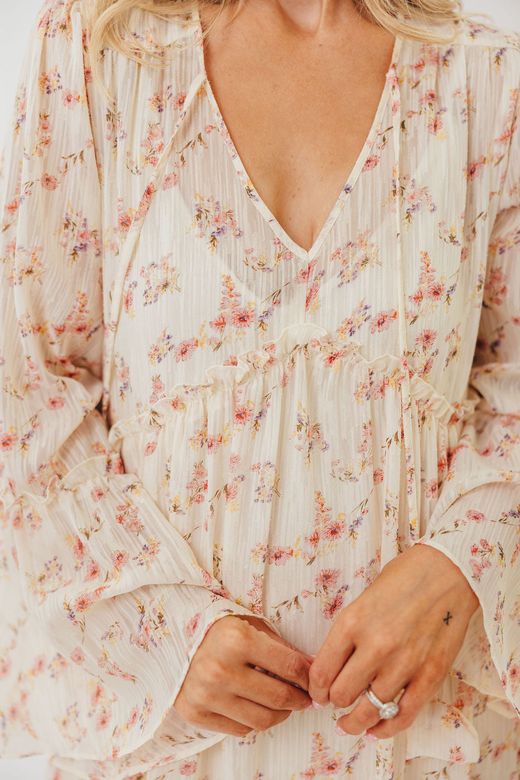 Lisa Woven Floral V-Neck Maxi Dress with Detachable...
