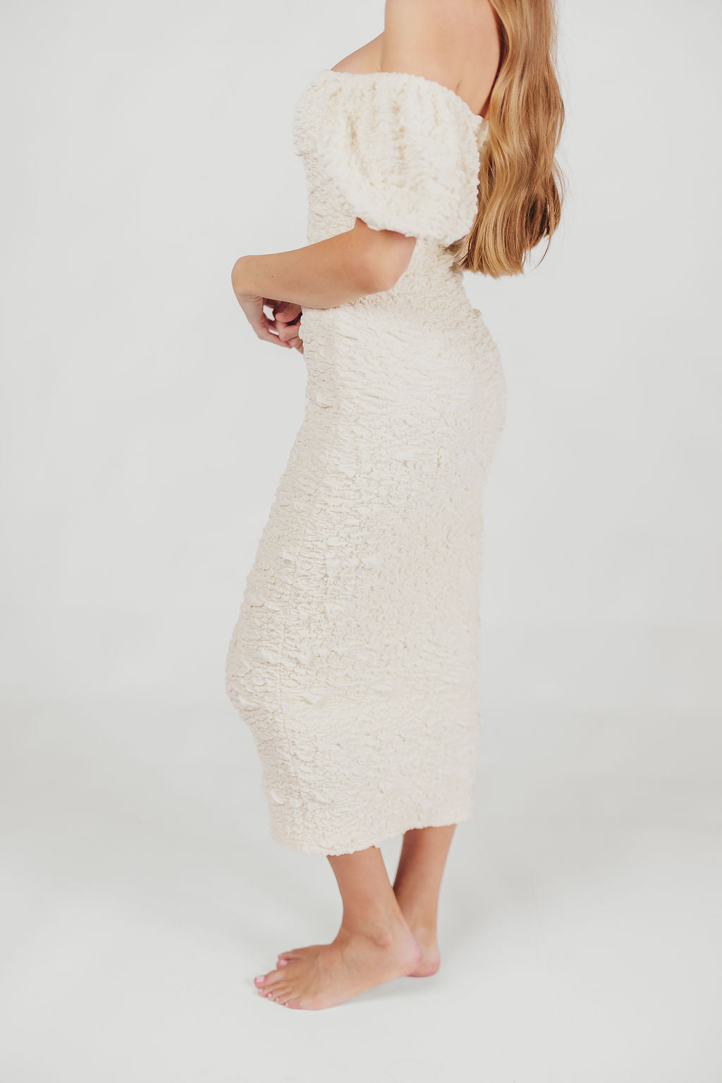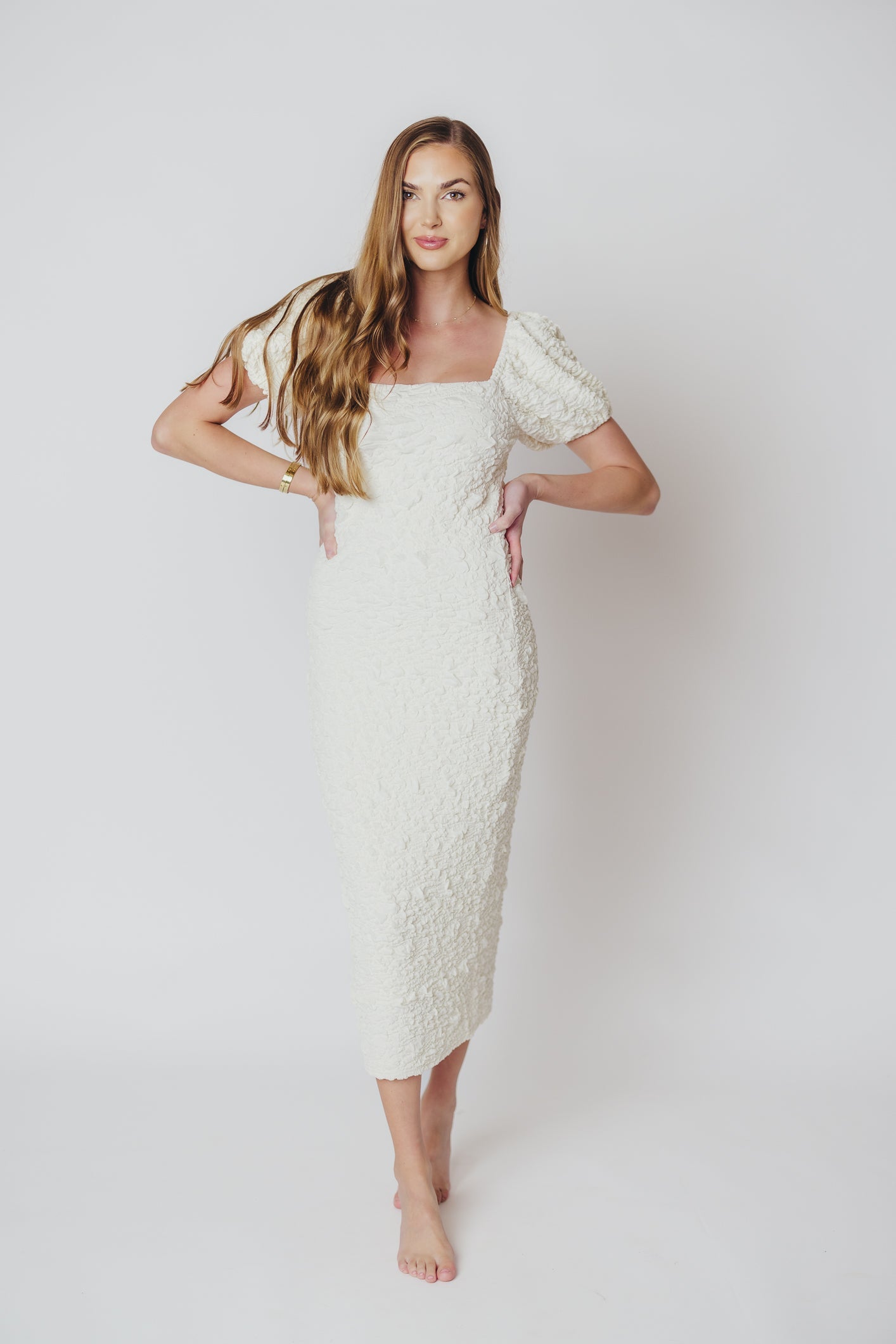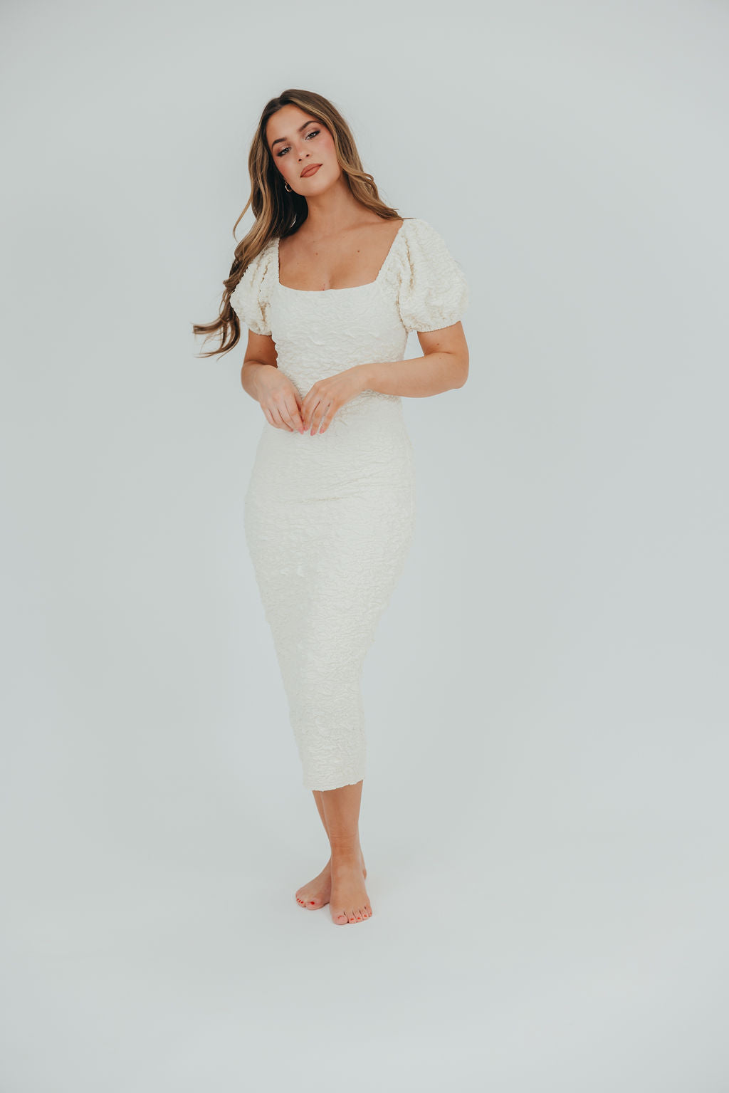 Blakeley Textured Midi Dress in Ivory - Bump...