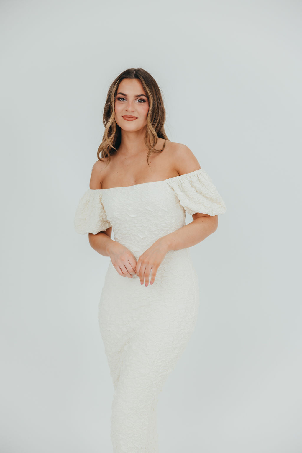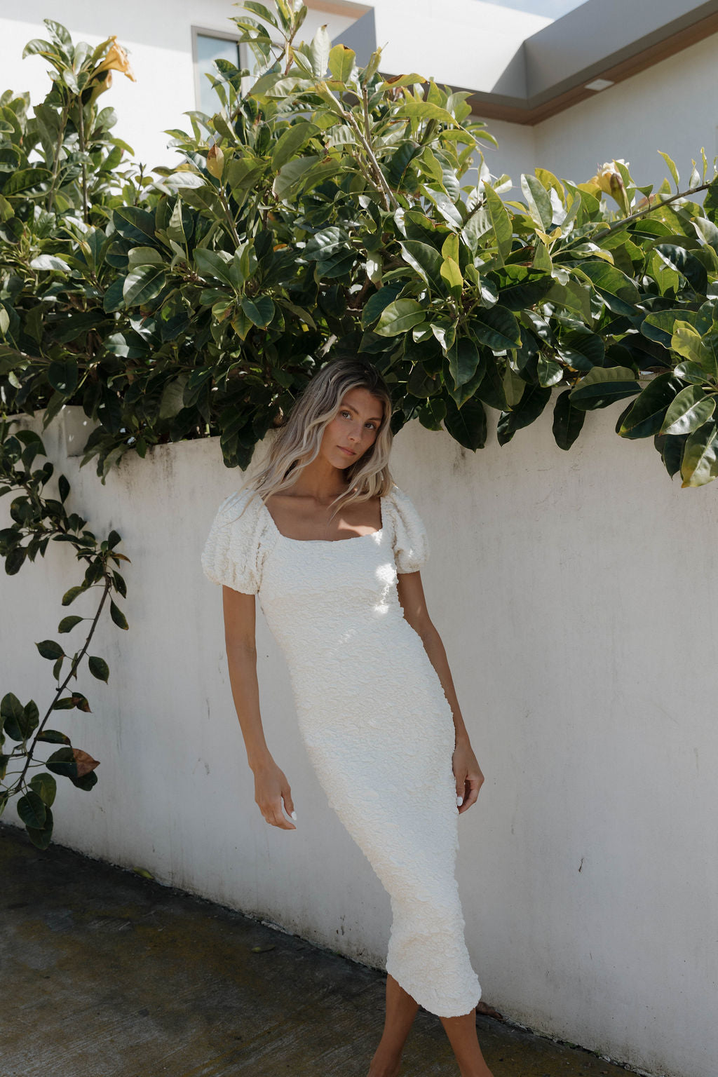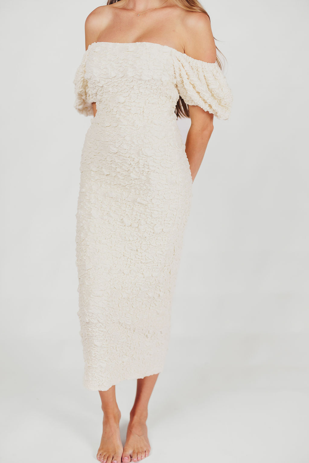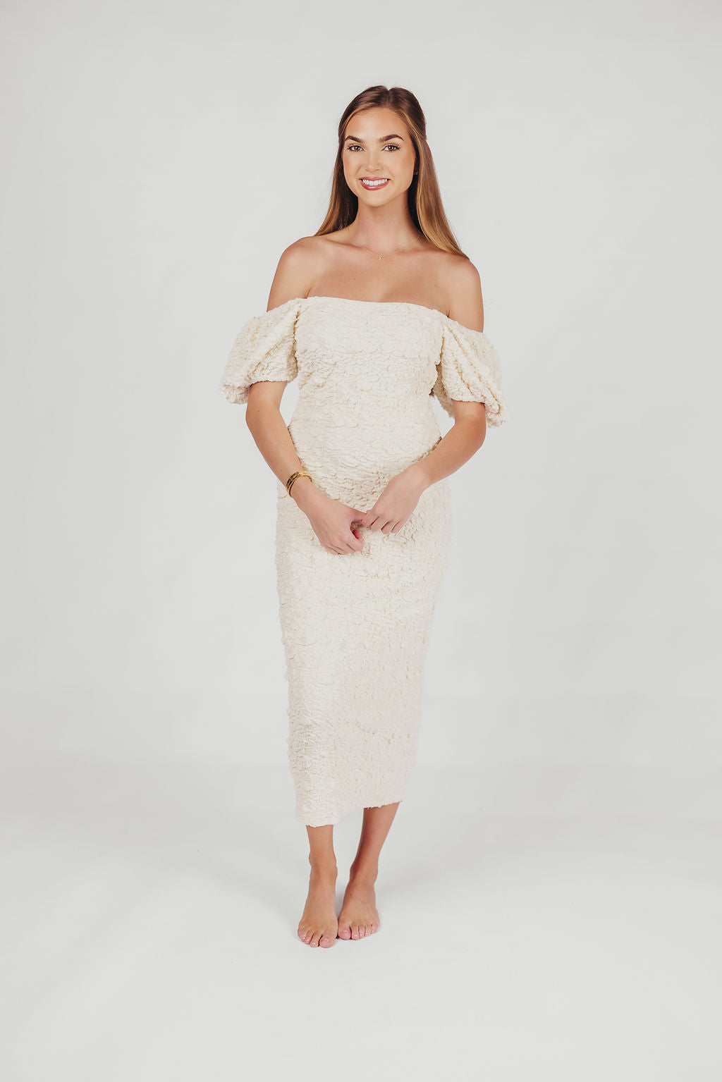 Blakeley Textured Midi Dress in Ivory - Bump...