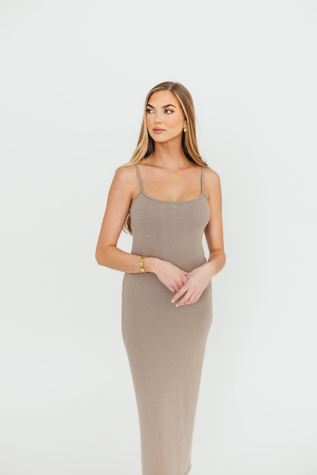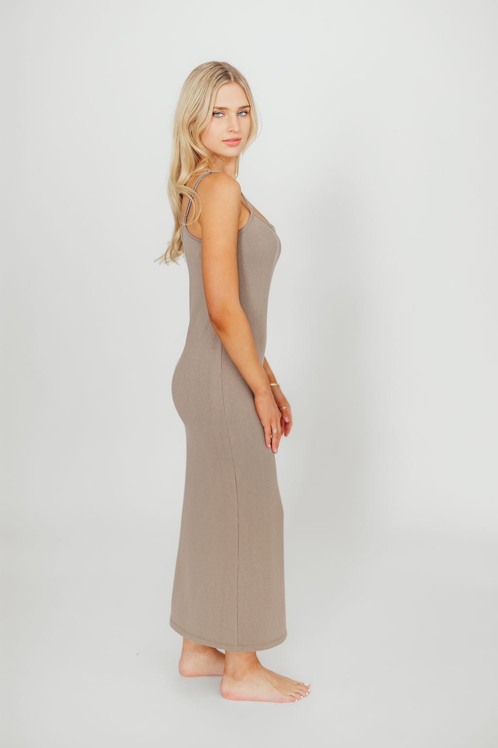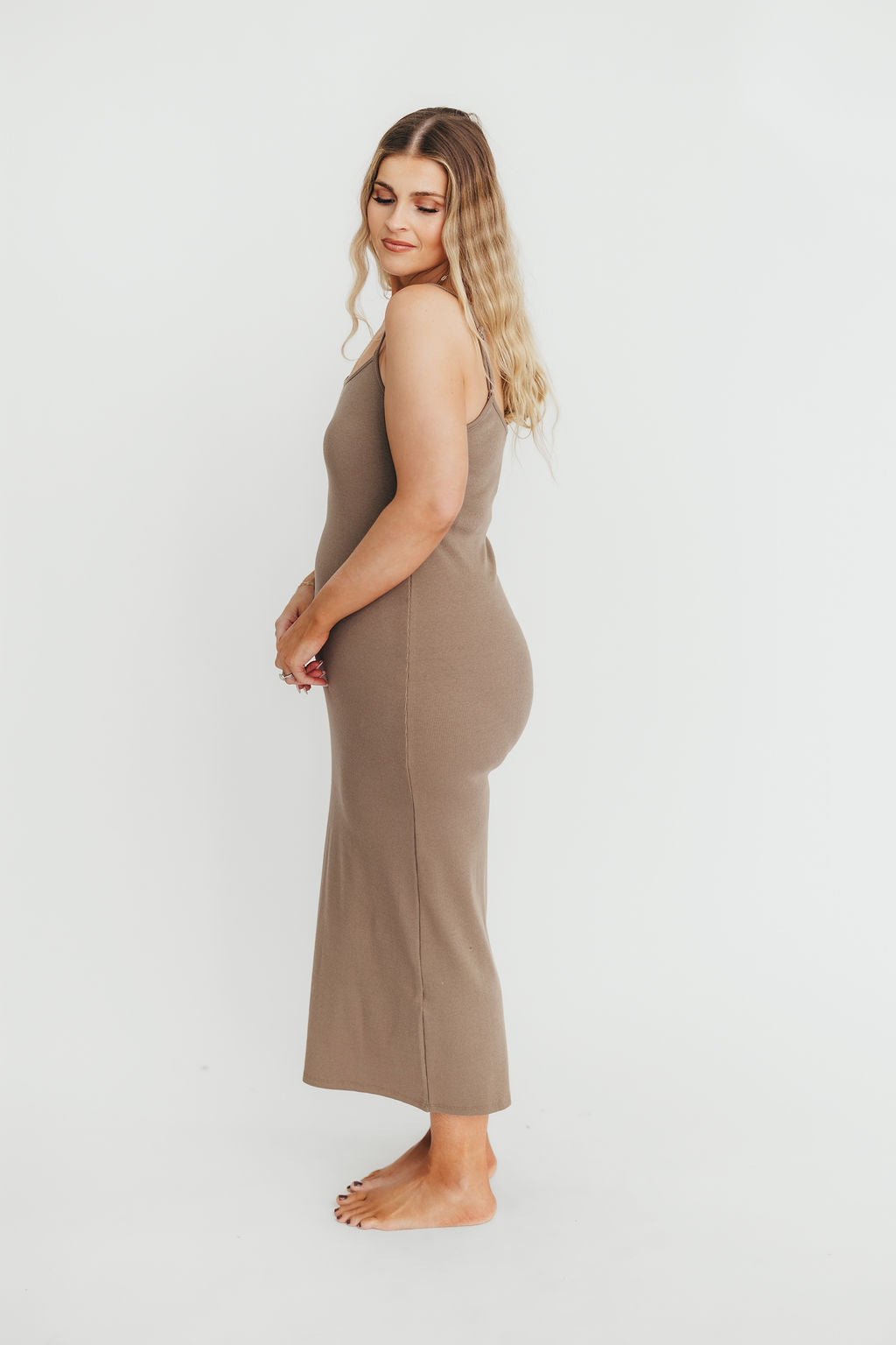 Alexa Ribbed Maxi Dress in Burnt Taupe