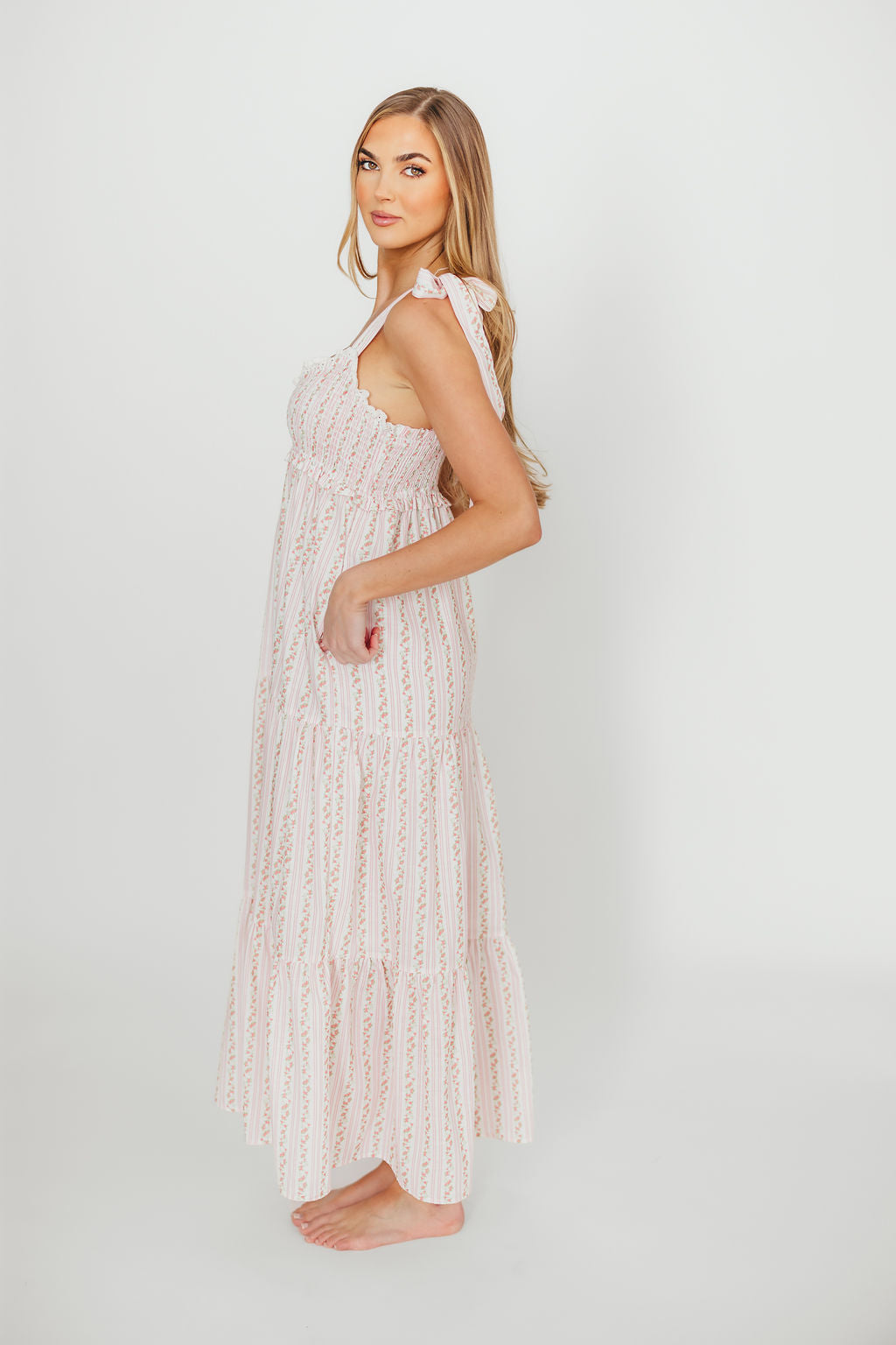 Vivienne Maxi Sundress in Ivory/Pink Floral
