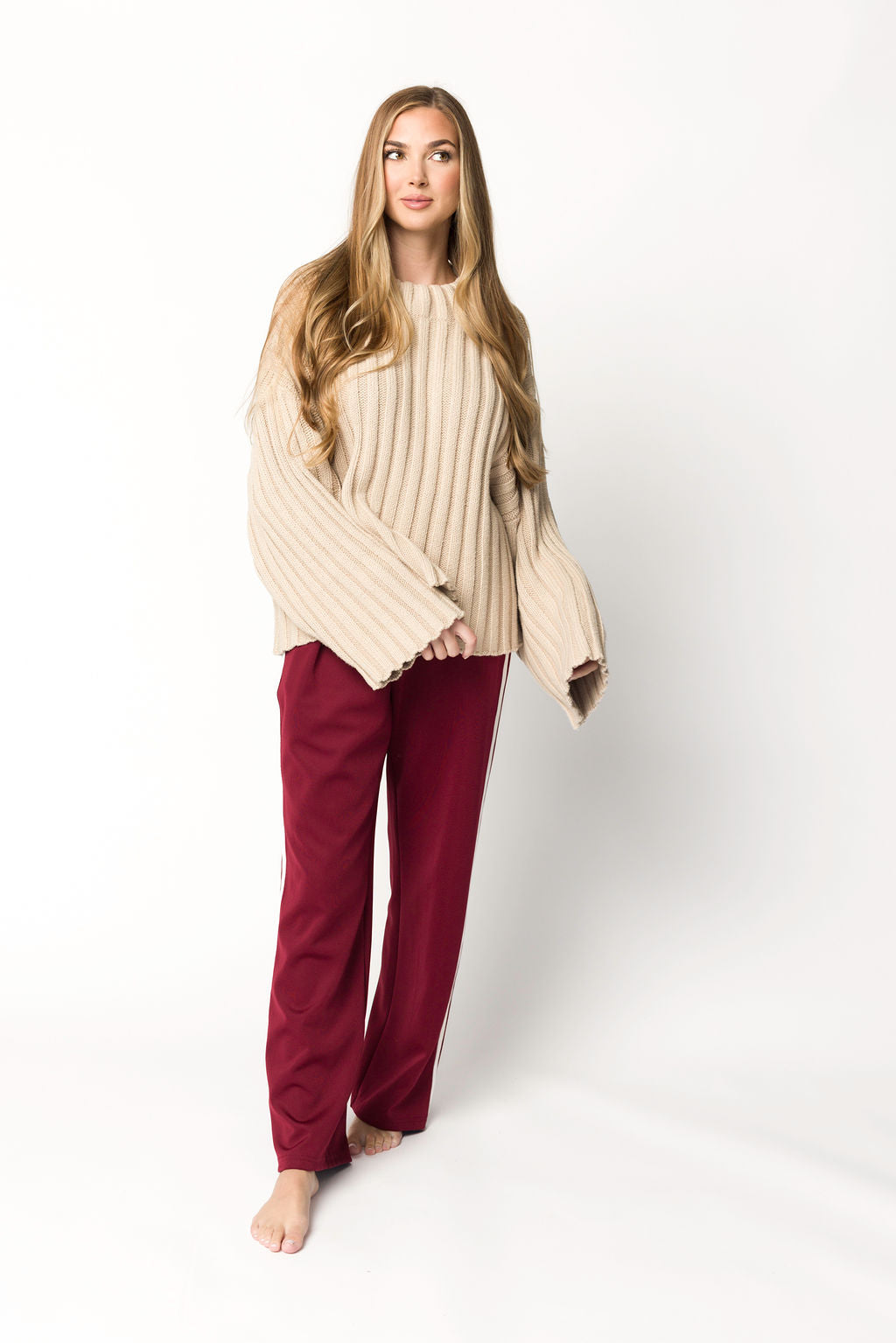 Meet the hero of the holidays, the Sue Track Pants. Track pants are so in right now, and the Sue Pants come in a luscious Burgundy colorway, which is also very in...plus they're incredibly comfortable and pair beautifully with all your sweaters. What's not to love?