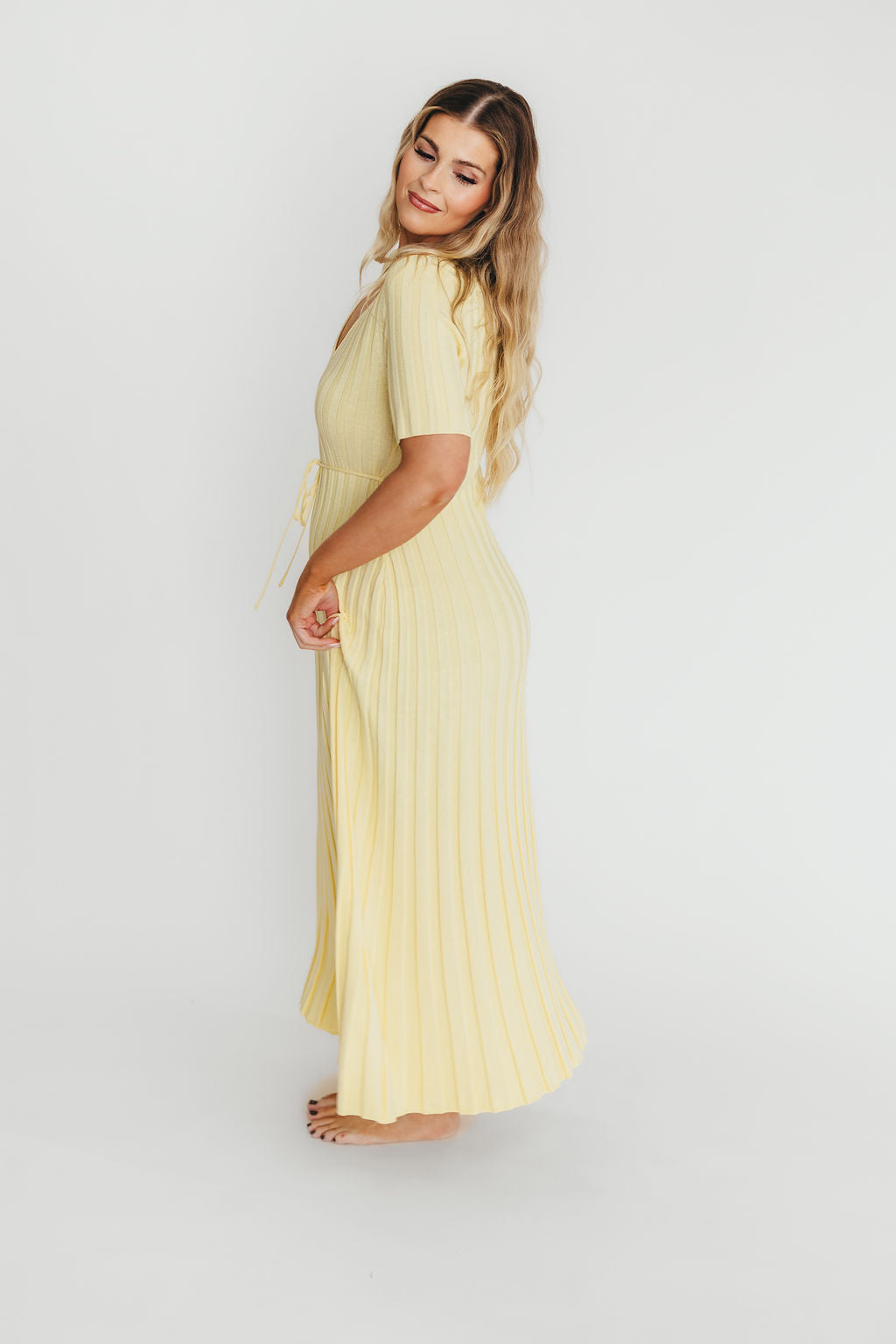 Oakley Ribbed Maxi Dress in Light Yellow -...