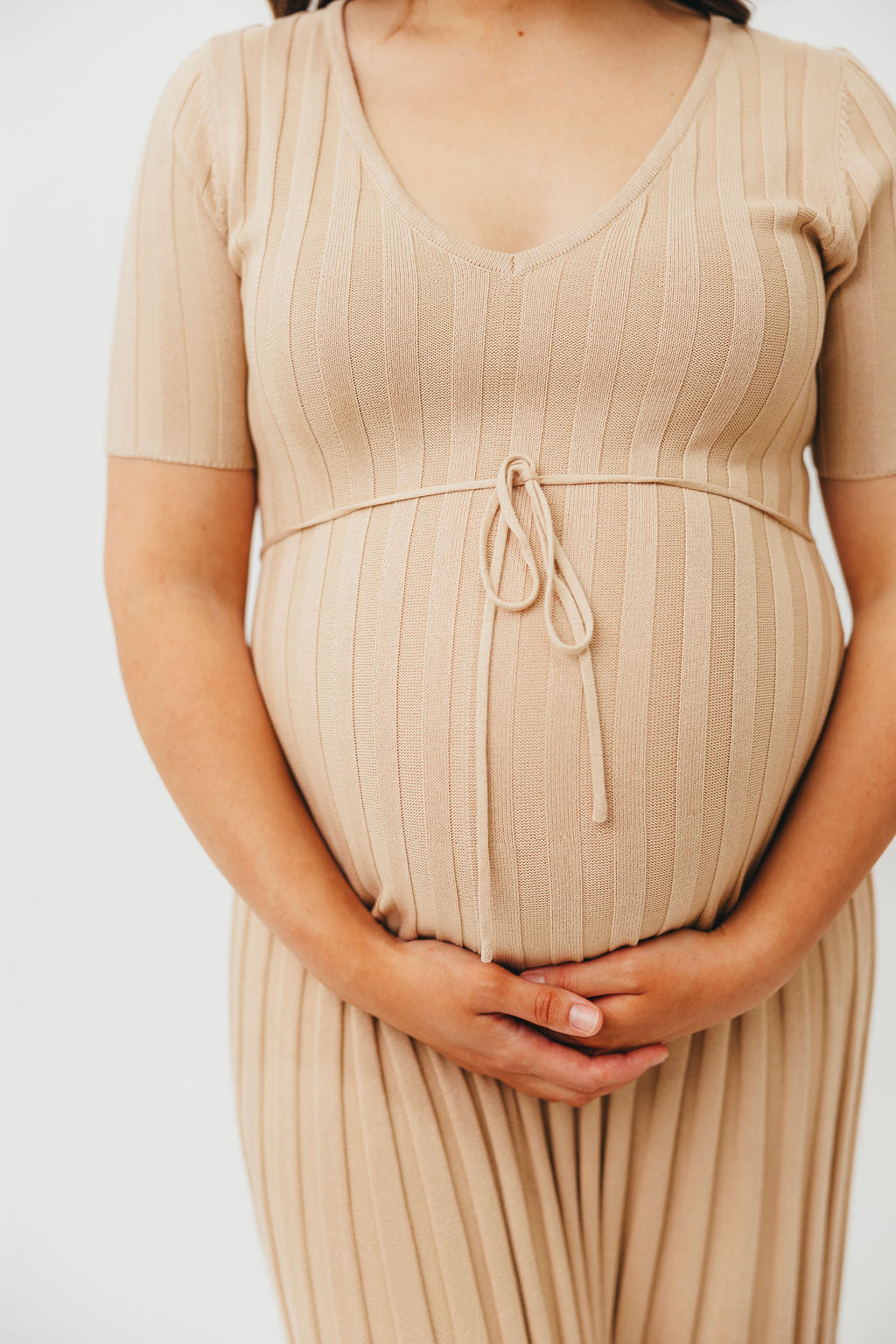 Oakley Ribbed Maxi Dress in Taupe - Bump...