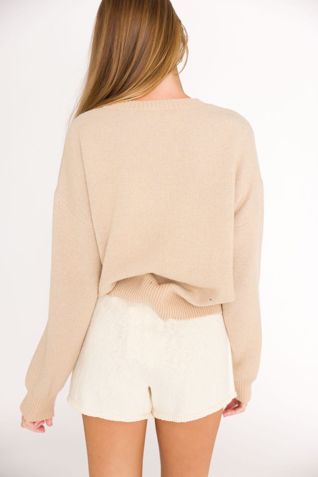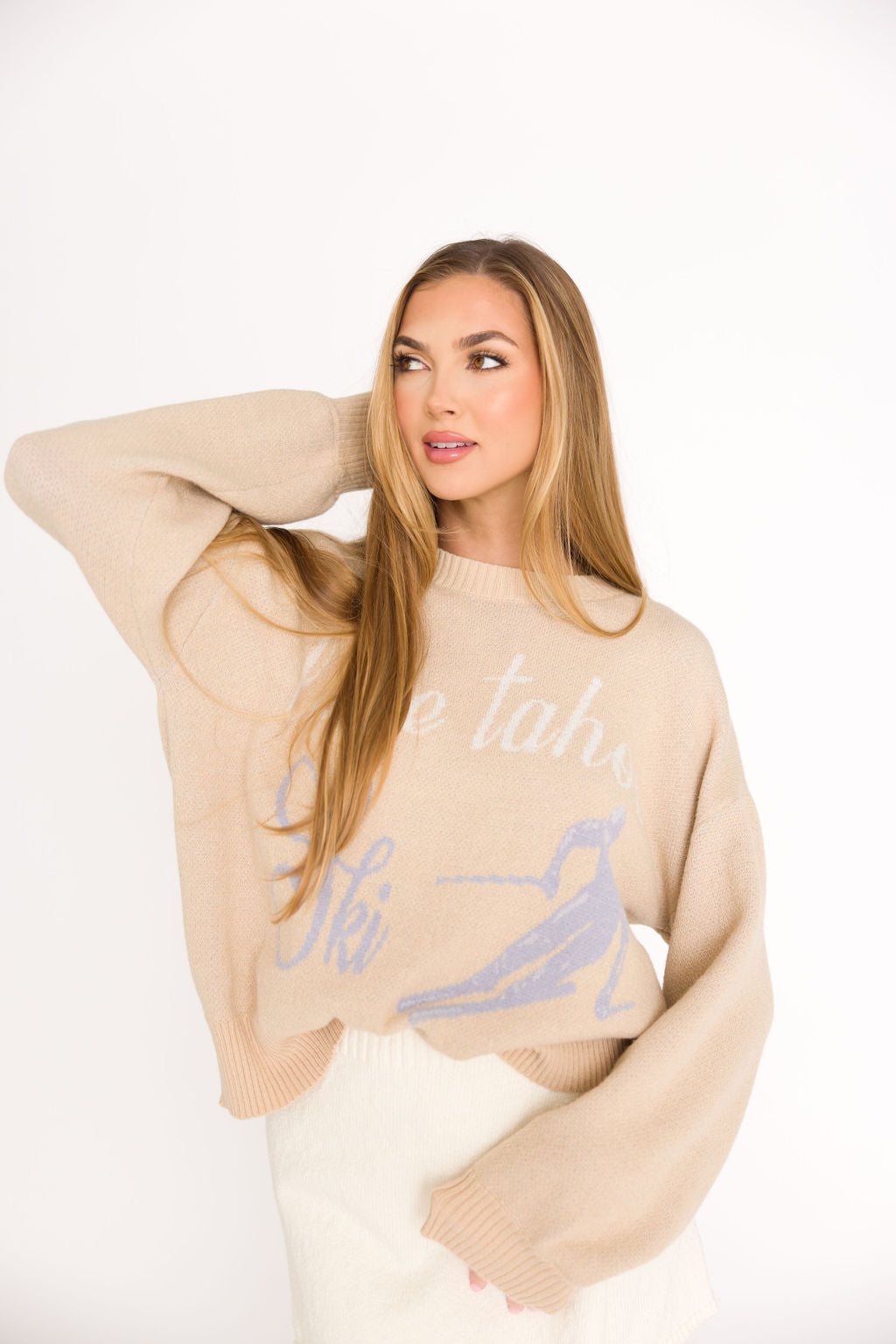 Lake Tahoe Ski Graphic Oversized Sweater in Beige