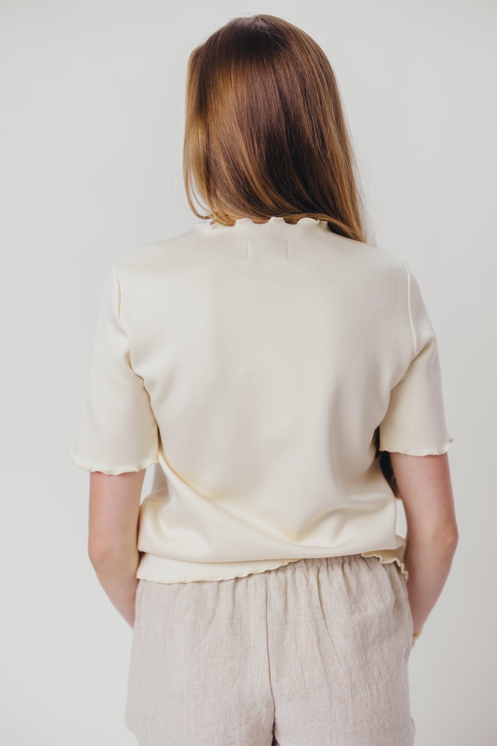 Jemma Butter Modal Mockneck Top with Merrow Edge from P.Cill in Eggshell