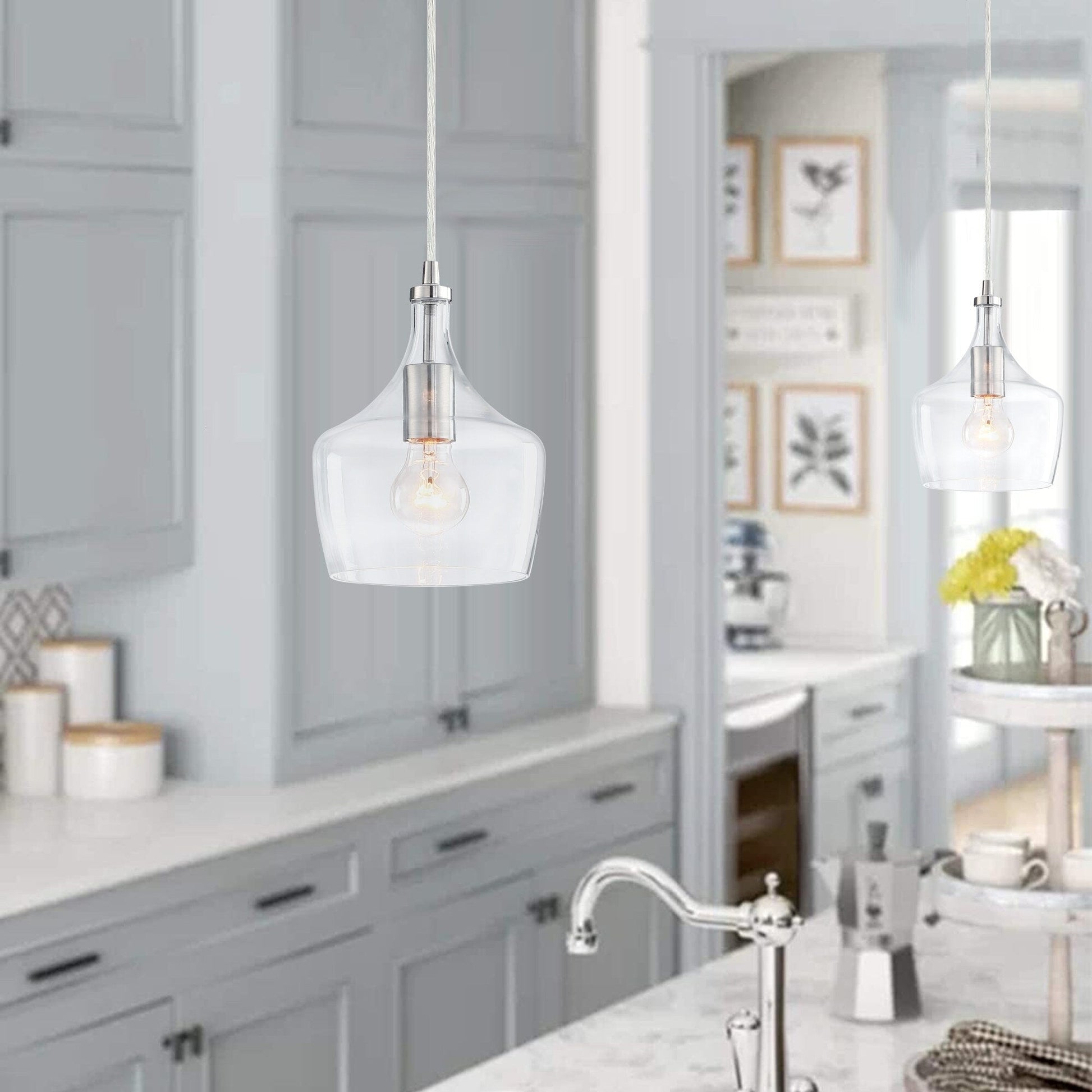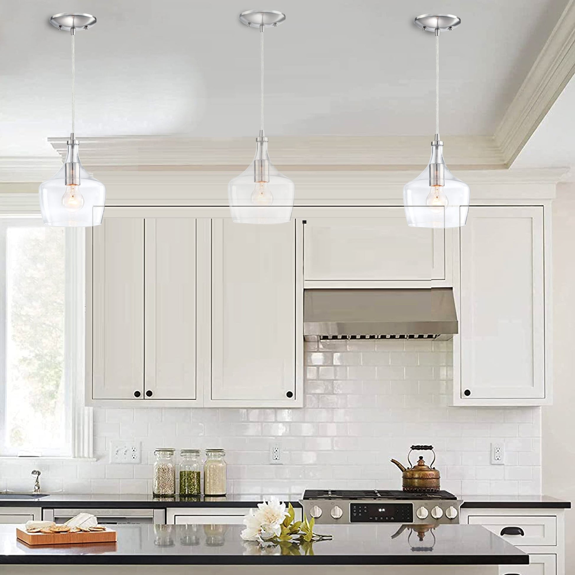 1-Light Kitchen Island Teardrop Clear Glass Pendant(1 or...