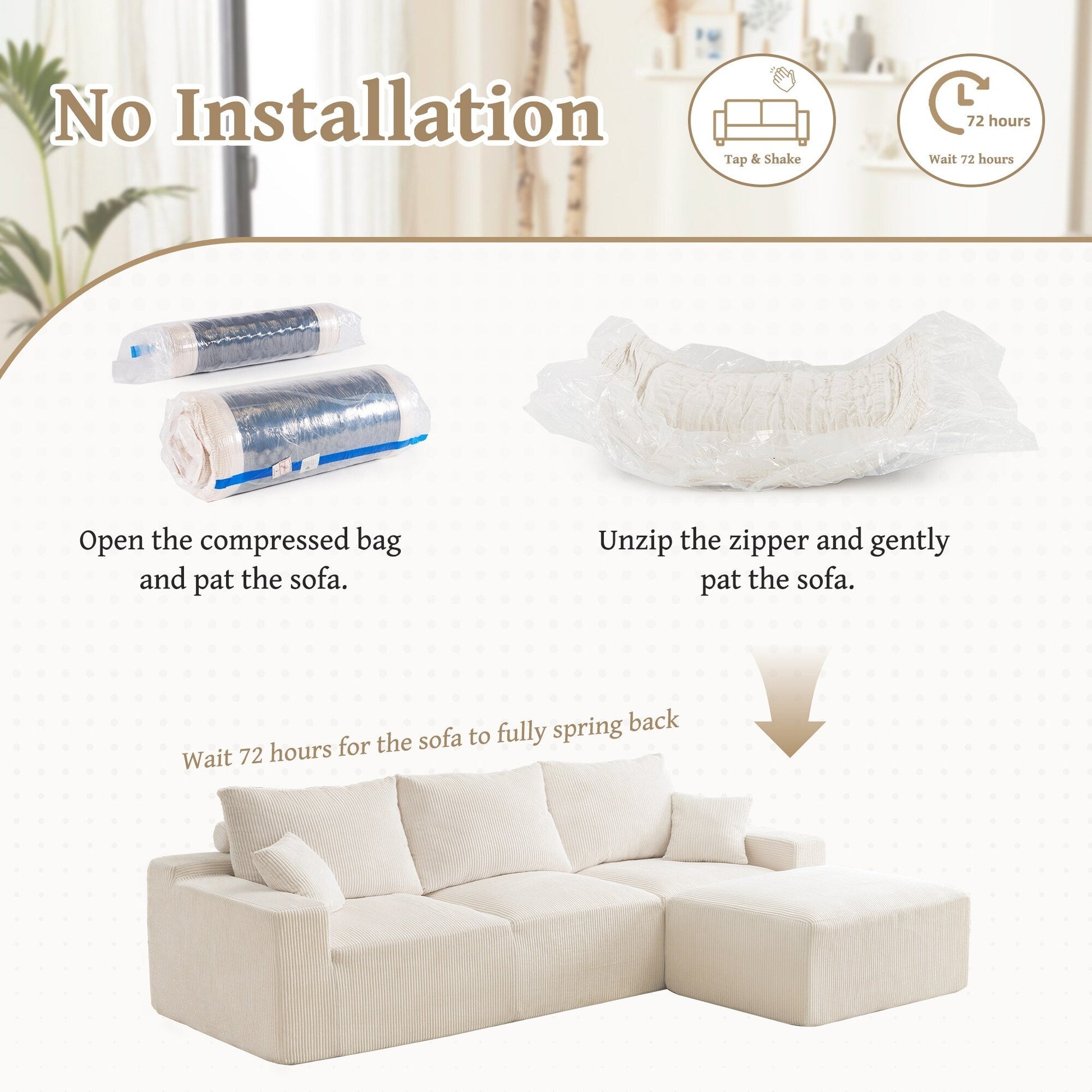 110 L-Shaped Sectional Sofa, Full-Compression 3-Seater Cloud Couch...