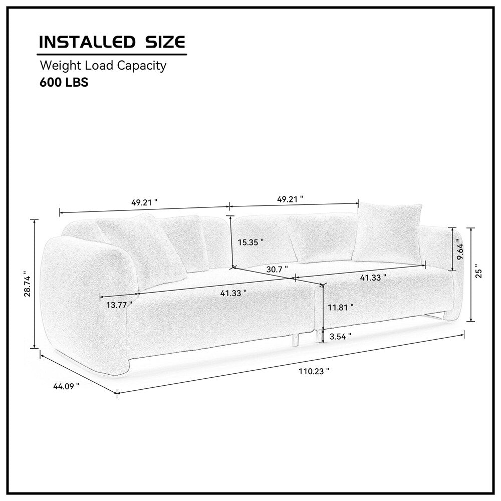 • Product Size:This couch for the living room measured 110.23'D x 44.09'W x 28.97'H, spacious size is good for big families and reception guests, stylish design is ideal for various applications such as apartments, lounges, and clubs.