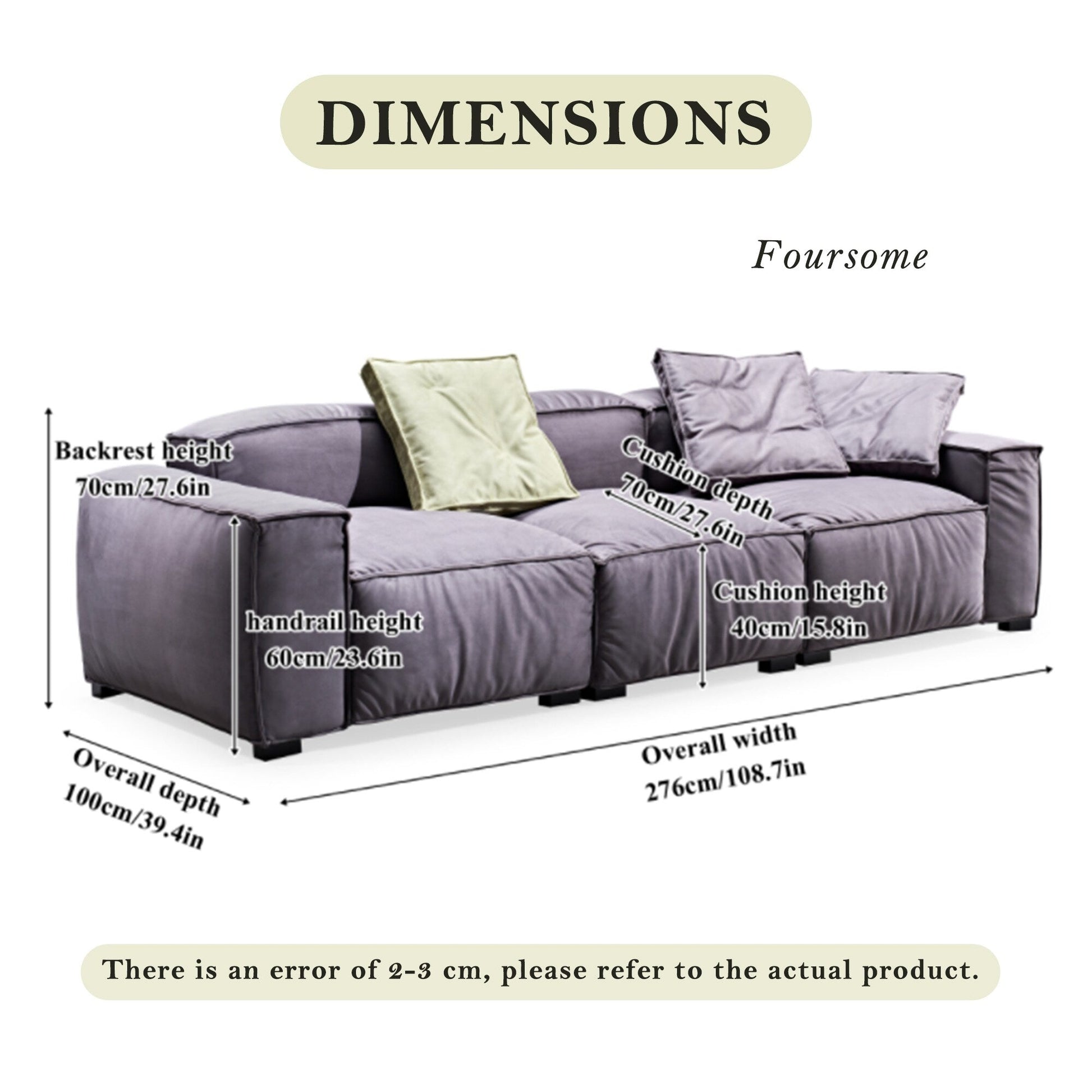 110'' Square Sofa Masha Velvet with Four-seater for Living Room Sofa-bed