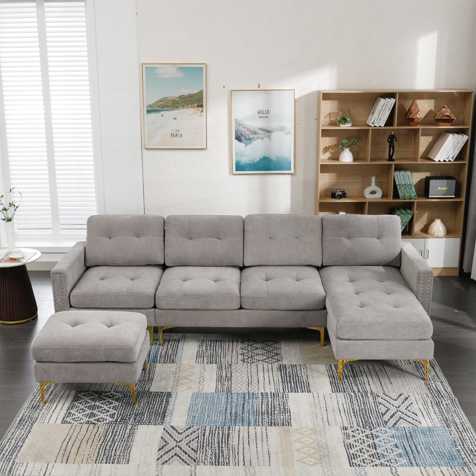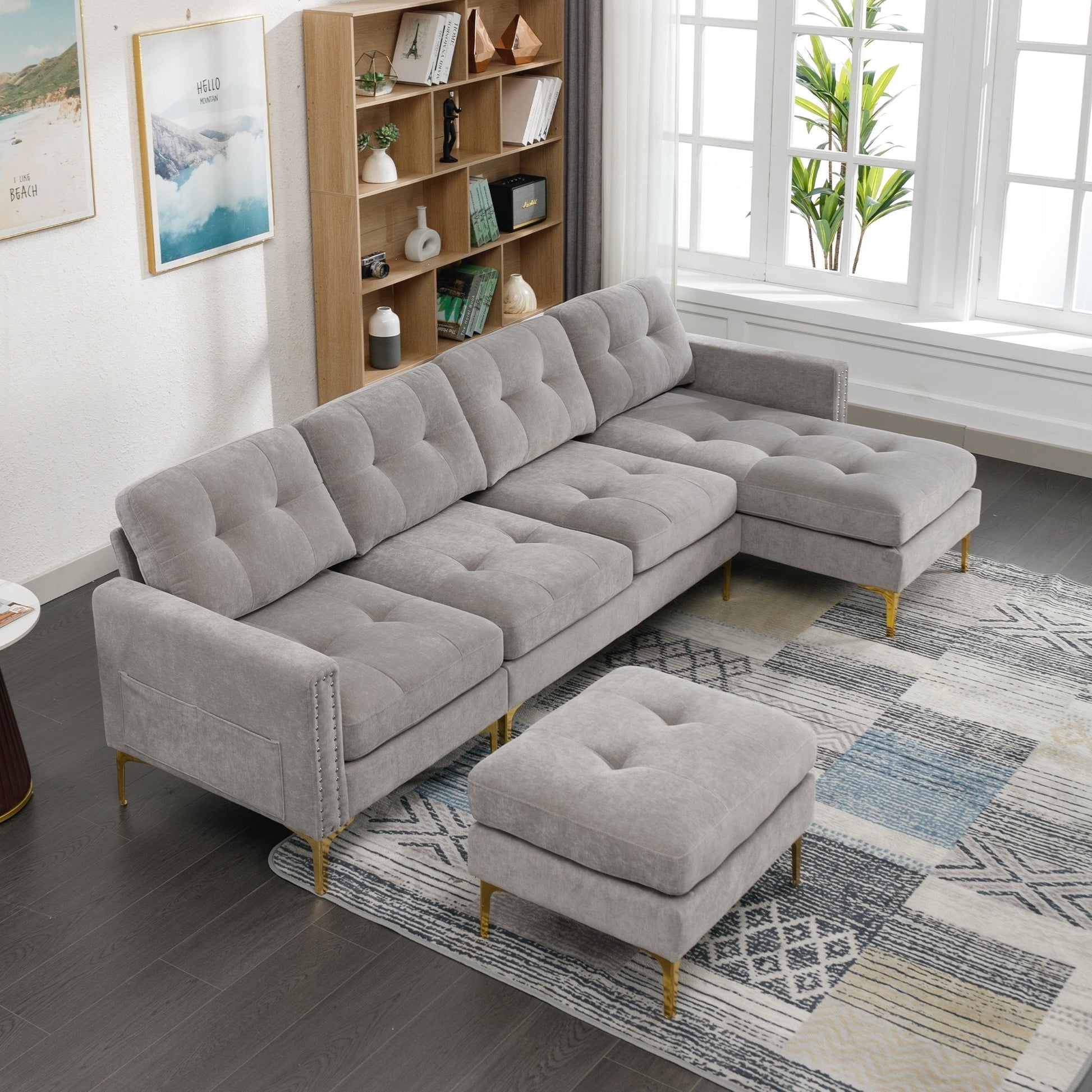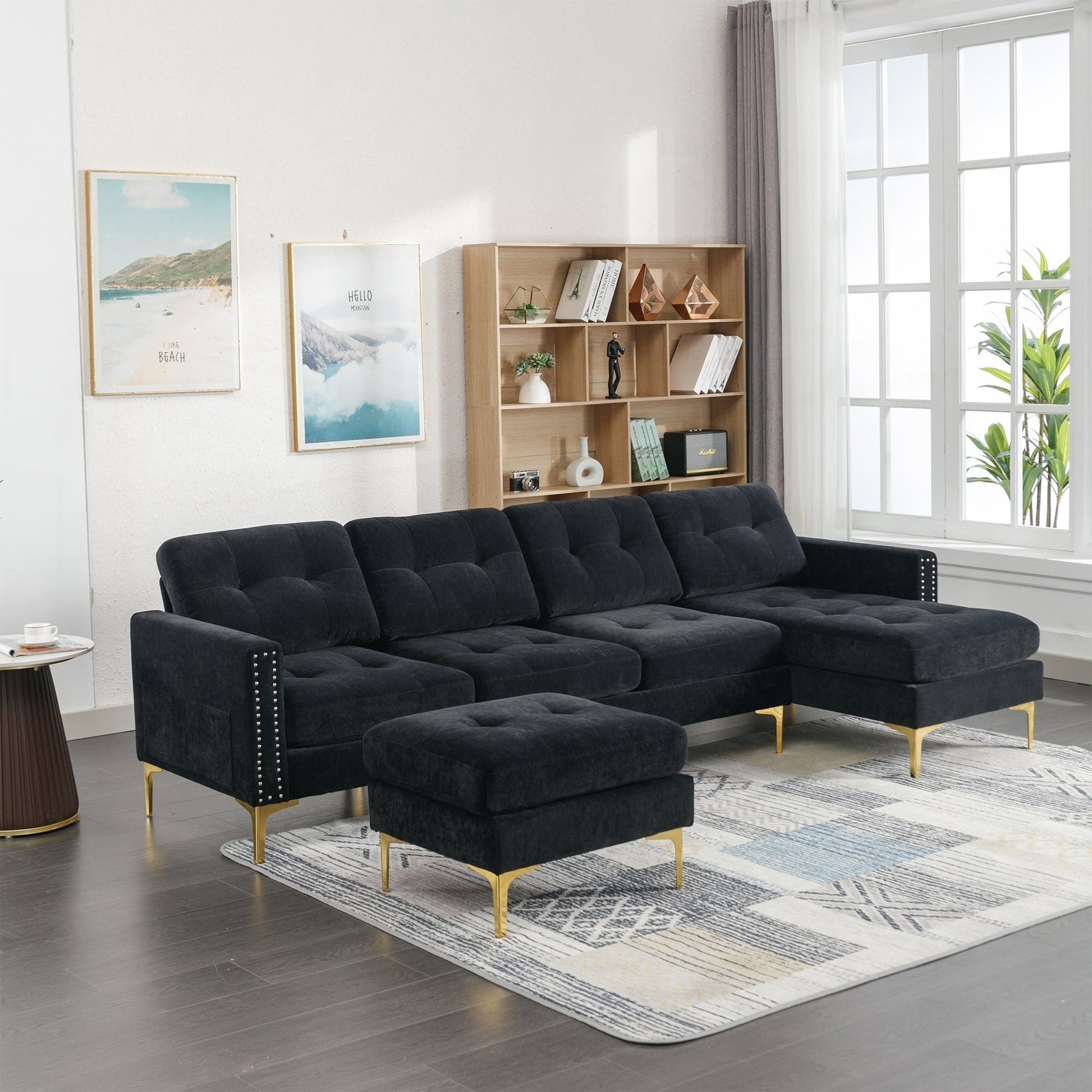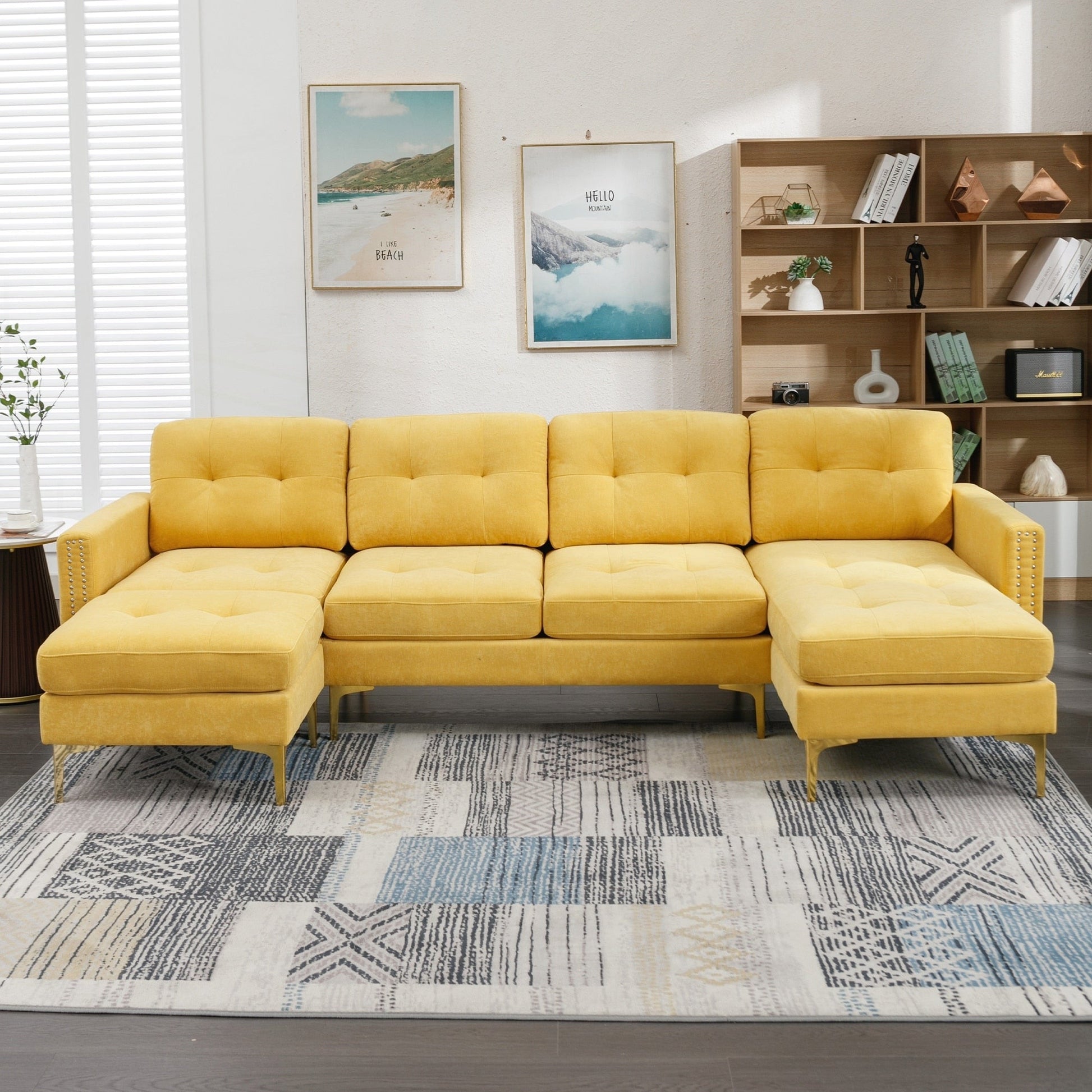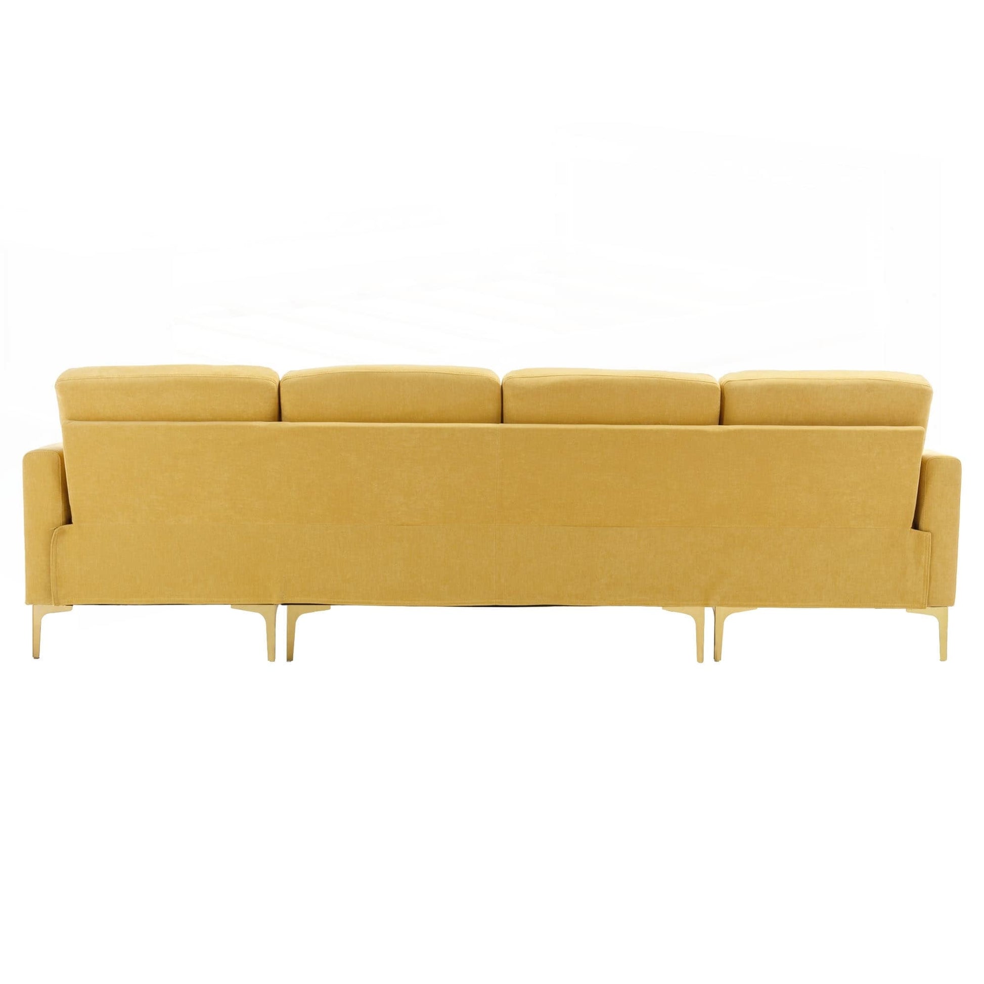 Durable and Sturdy - Our sectional sofa is built on a solid plywood frame with high-density foam and embedded springs, offering exceptional comfort and support for hours of relaxation and lounging. It is constructed to withstand daily use and retain their shape and comfort for years to come. Golden metal legs perfectly support the entire sofa and can be used for many years to come.