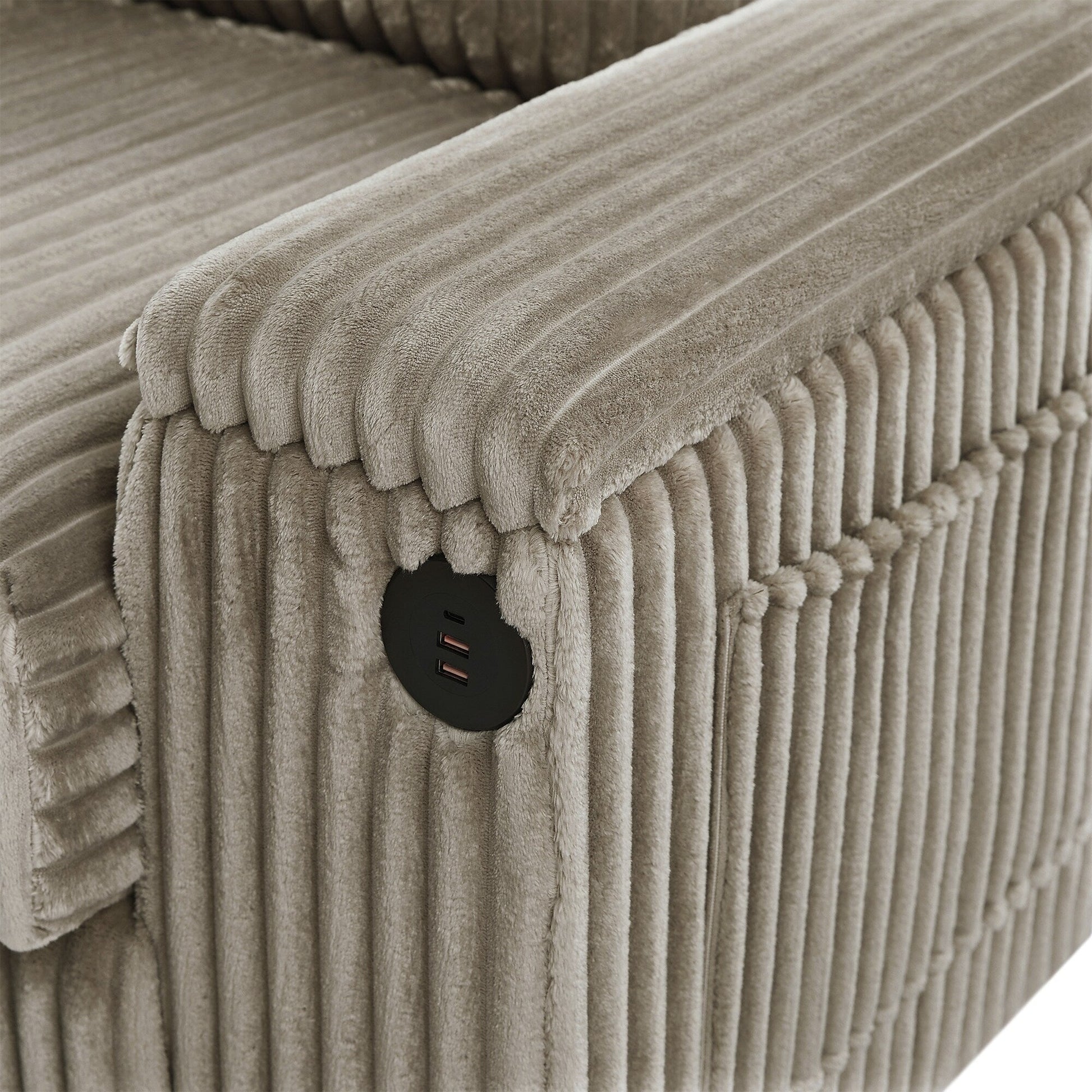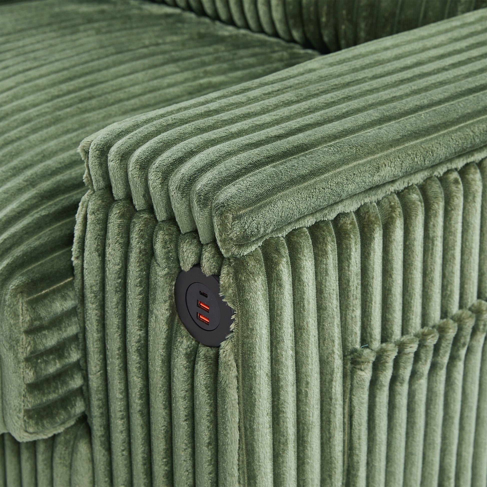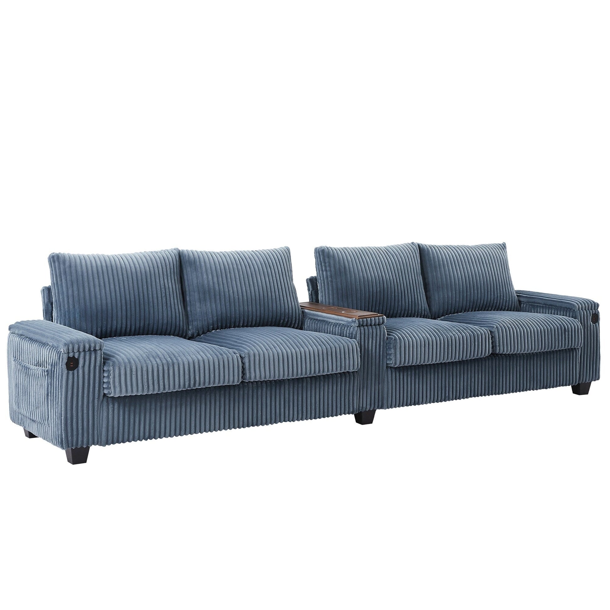 133 Corduroy 4-Seater Sofa with USB Ports, Flip-Top Cup Holders, and Hidden Storage