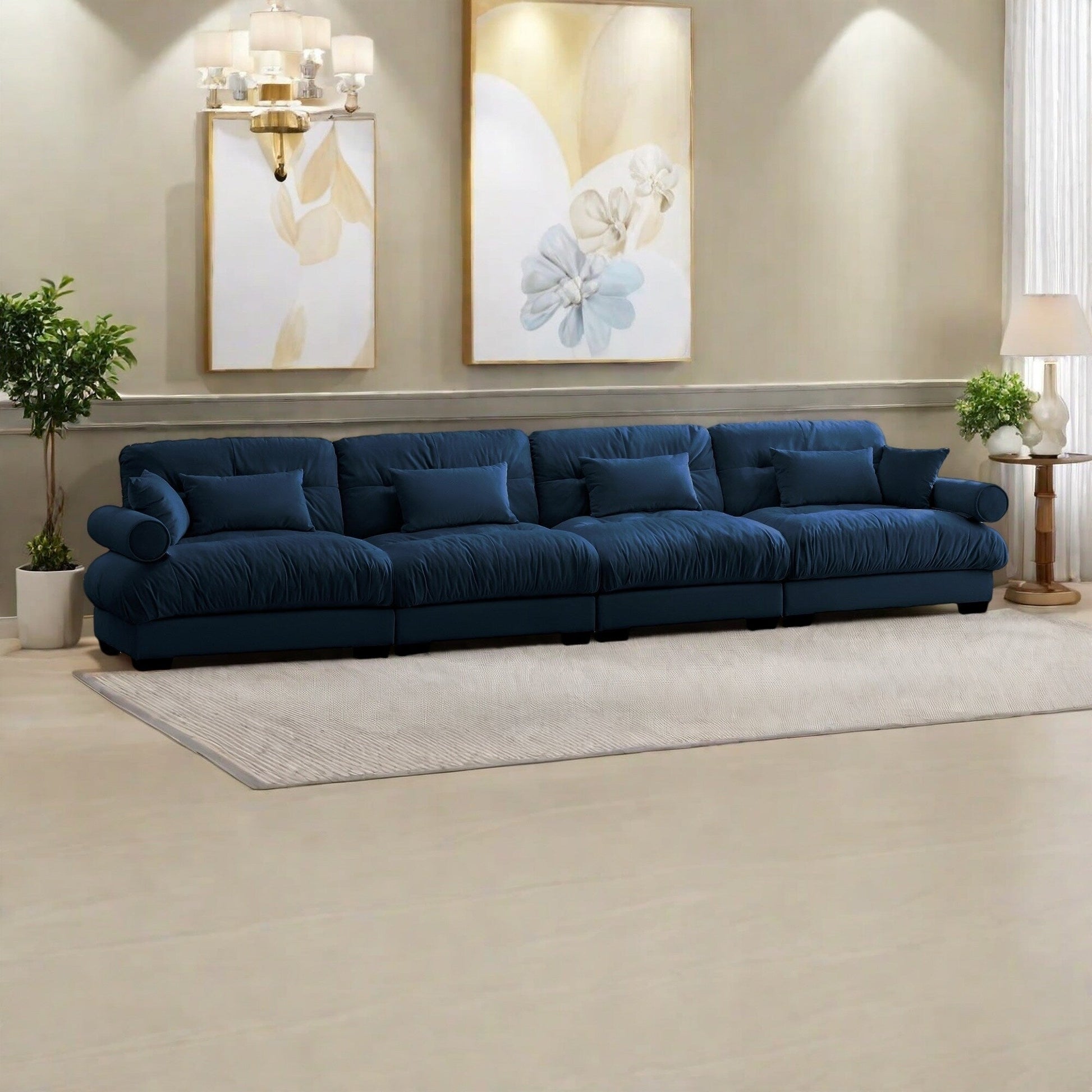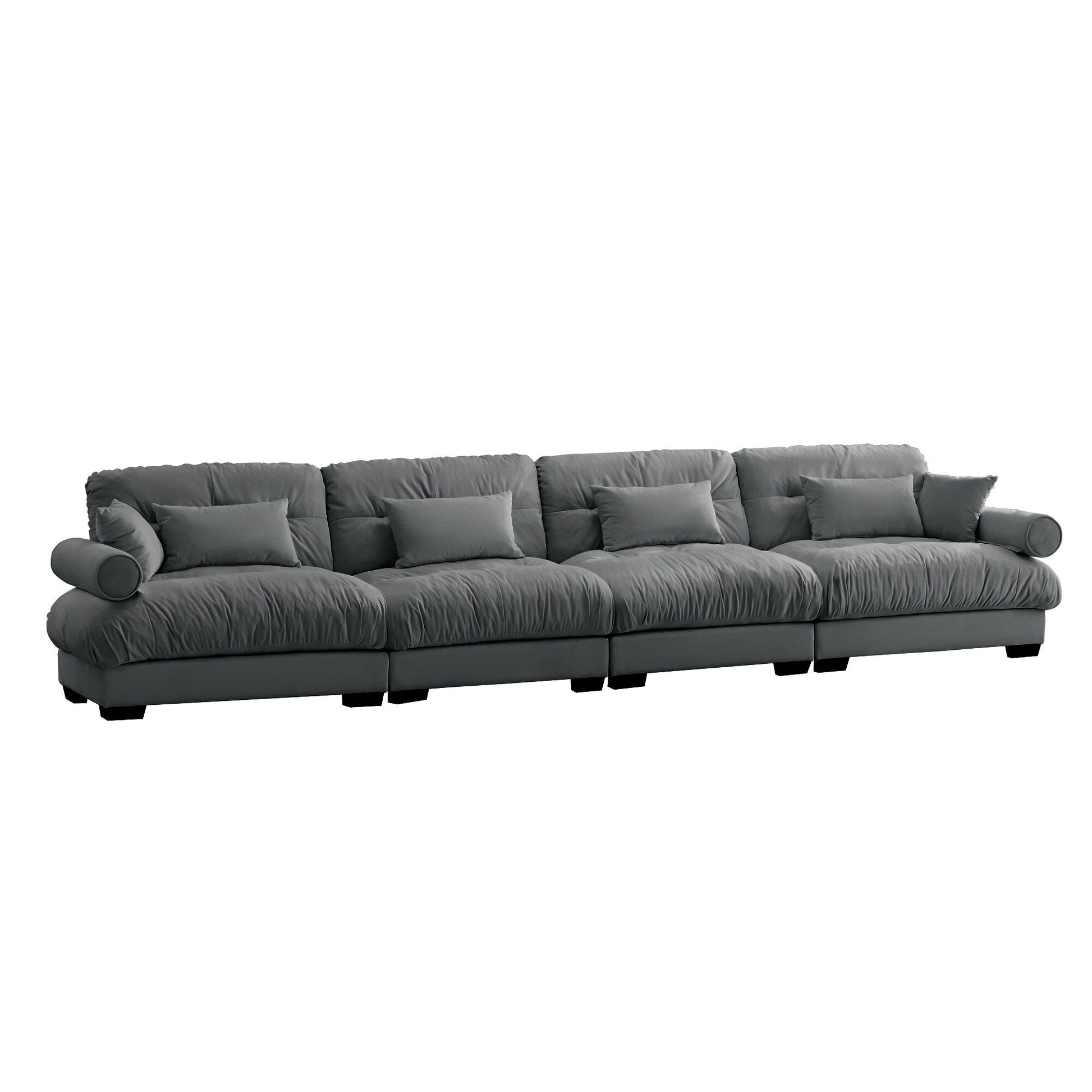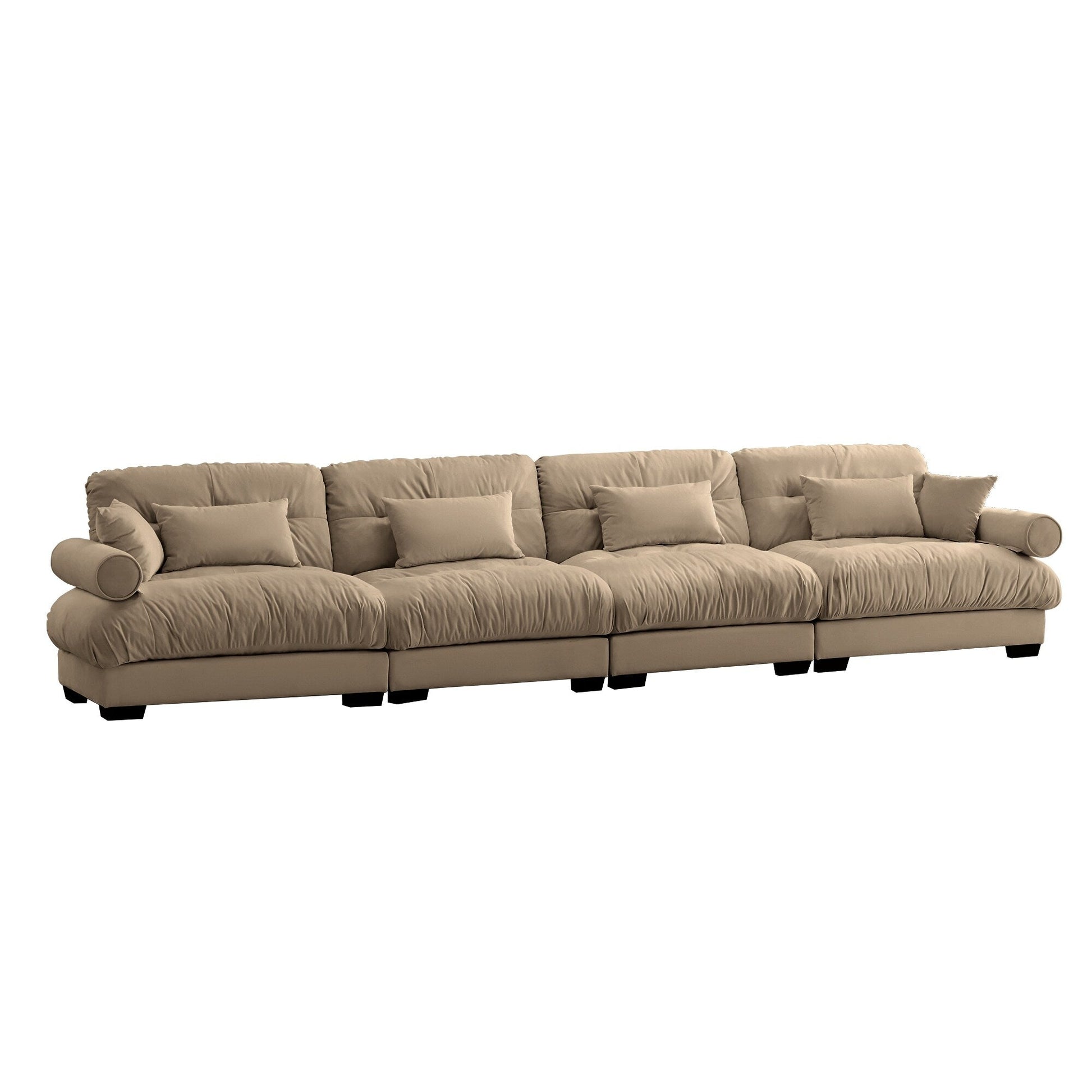 166Velvet 4-Seater Sofa with Bolster Armrests, High-Resilience Sponge...