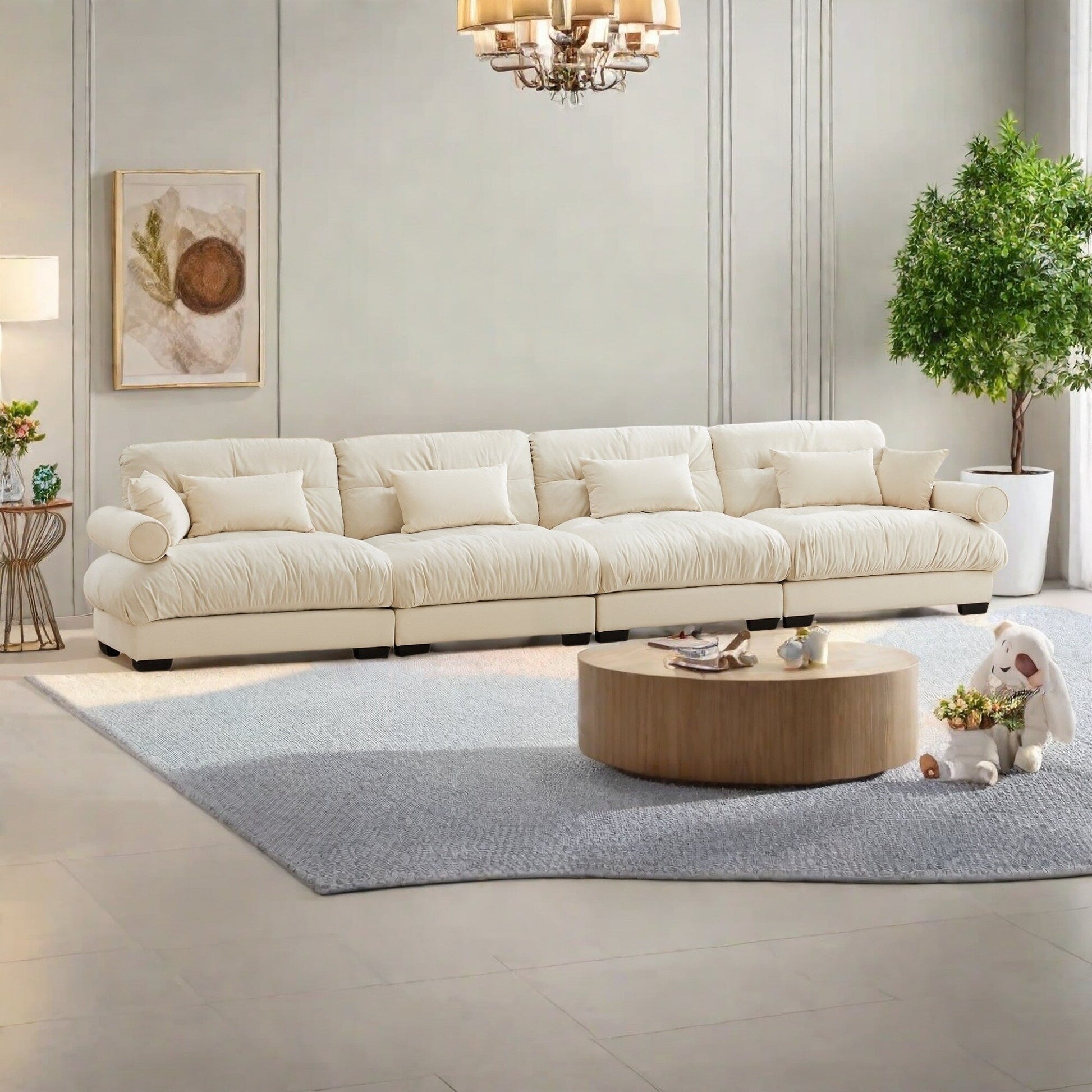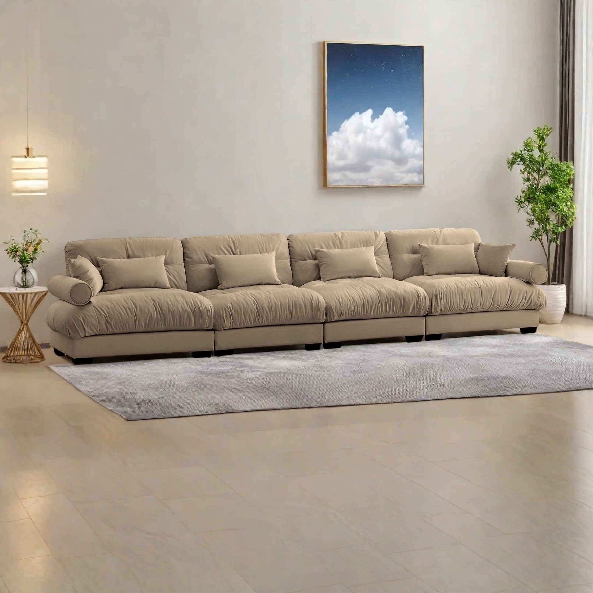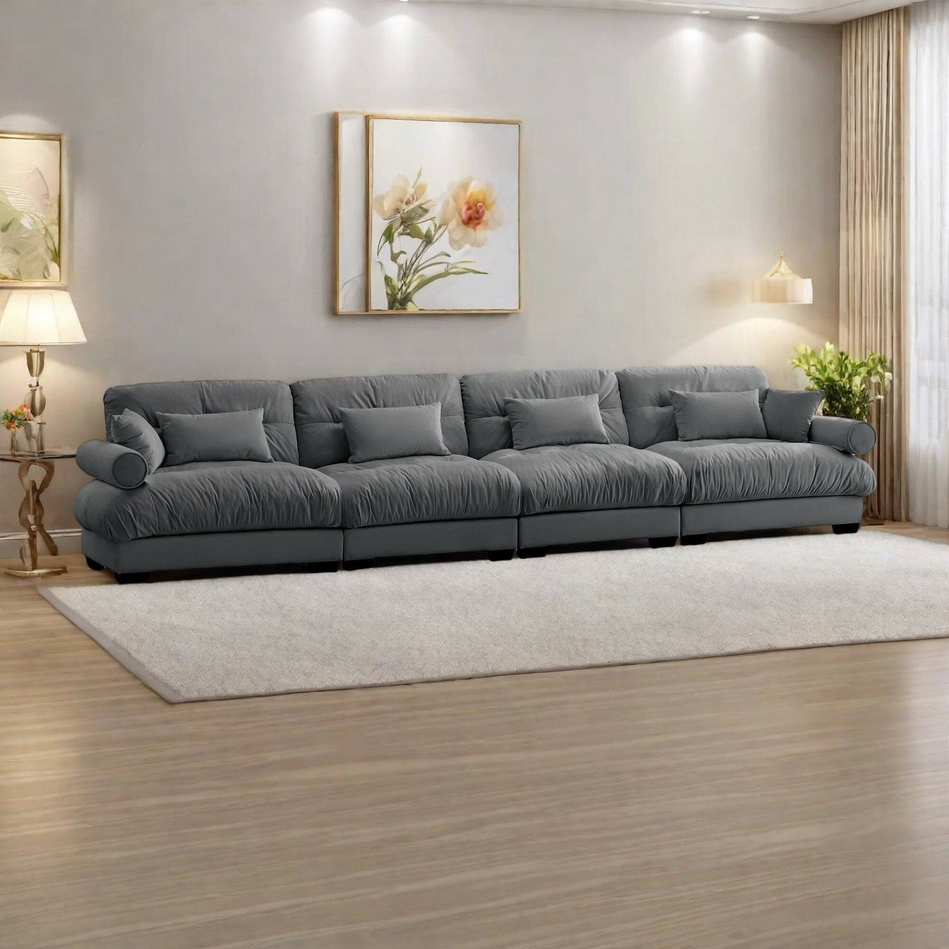 166Velvet 4-Seater Sofa with Bolster Armrests, High-Resilience Sponge...