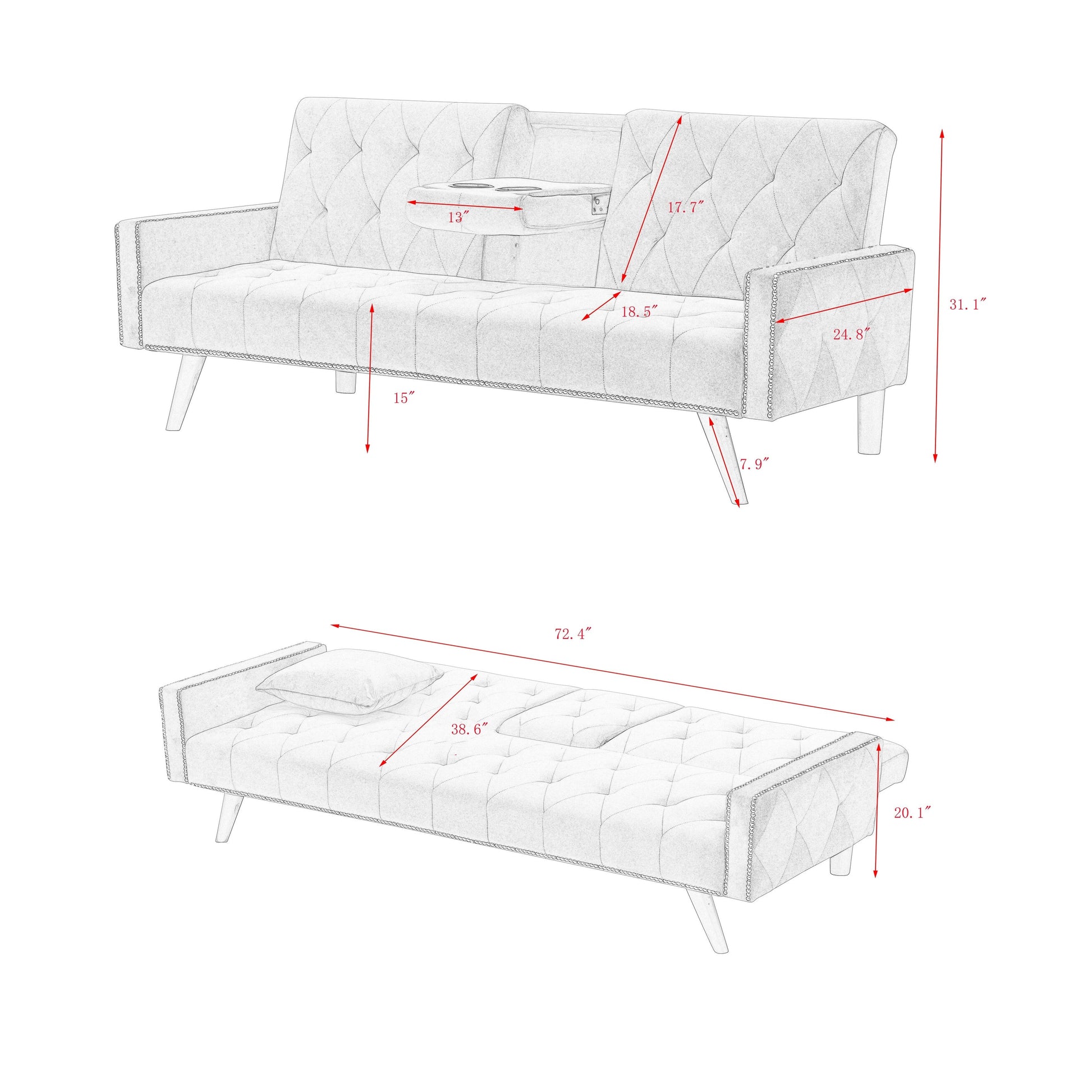 1730 Sofa Bed Armrest with Nail Head Trim...
