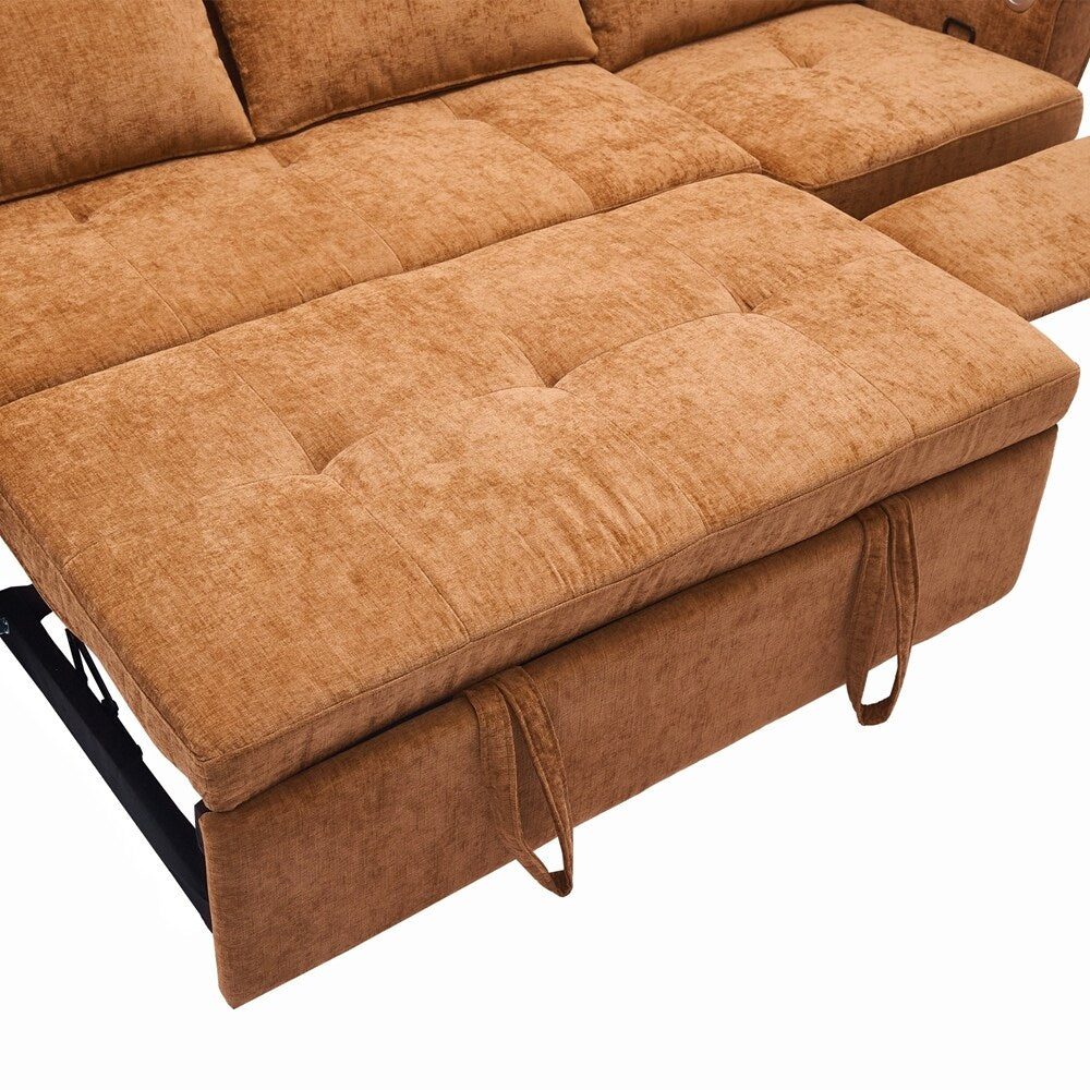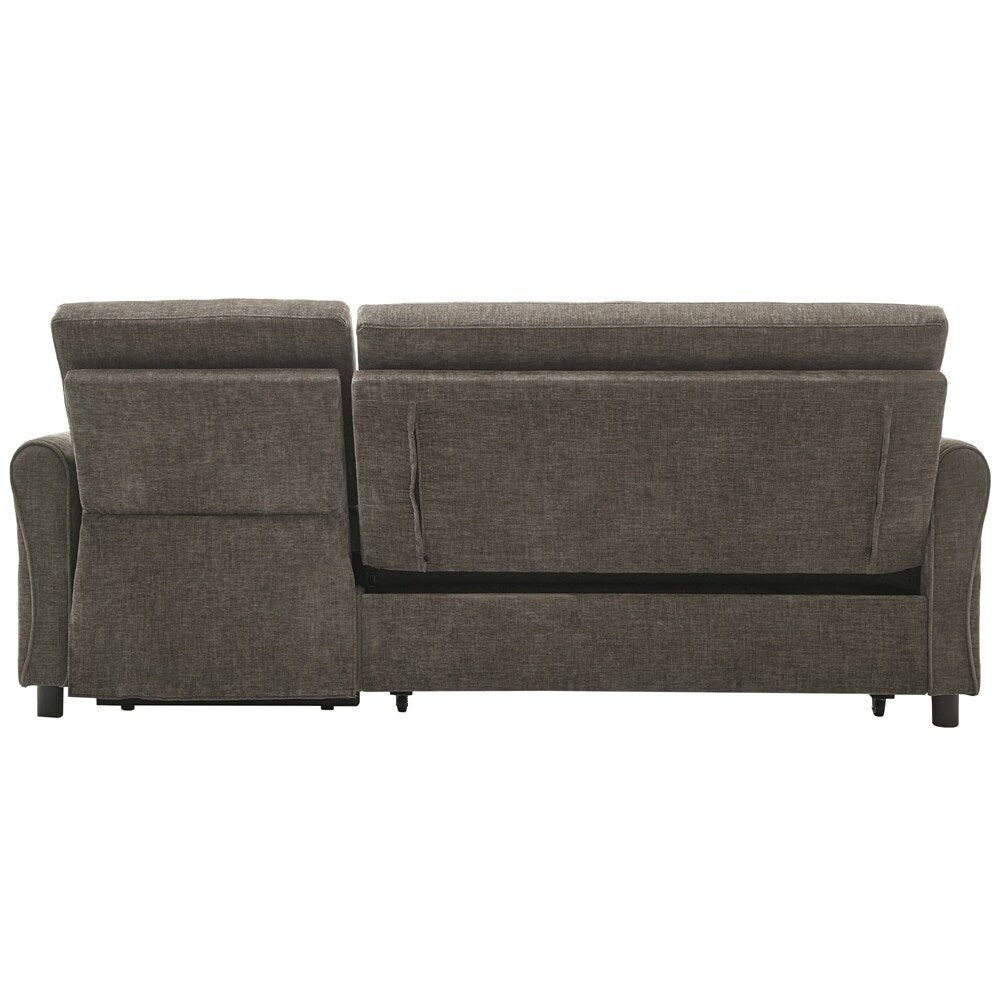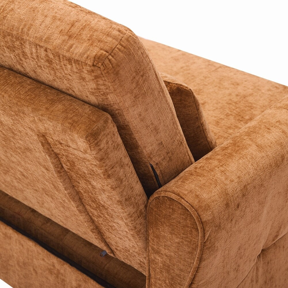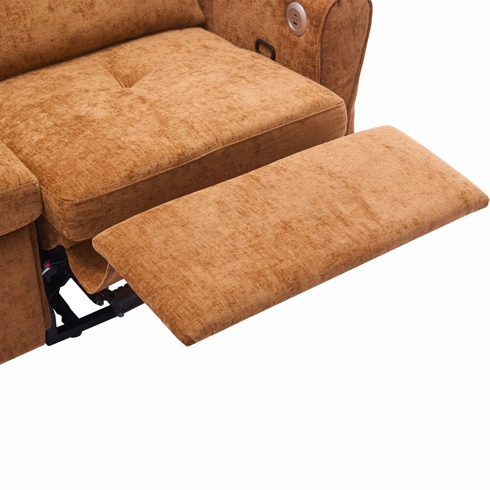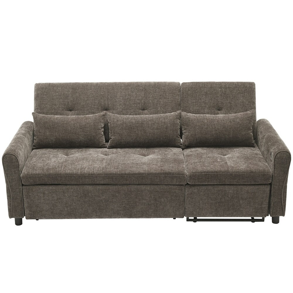 Innovative 2-in-1 Sofa - This sofa offers both a spacious pull-out sleeper and a functional recliner section in one smart design, making it ideal for homes that need both comfort and versatility. The pull-out bed provides a generous sleeping area for guests, while the recliner adds an extra layer of relaxation. This rare combination makes it a standout piece, perfect for modern, multifunctional spaces.Three - Level Adjustable Backrest - Both backrests are designed with a three-position reclining system (sofa bed:105 °,140 ° and 180 °, recliner:105 °,120 ° and 140 °), allowing users to adjust the angle individually for each seat. Whether sitting upright for conversation, lounging back for reading, or fully reclining for napping, the adjustable backrests meet a variety of comfort needs, making it perfect for families with different preferences.Reversible Recliner Section - The functional recliner chair section can be installed on either the left or right side of the sofa, offering maximum flexibility to fit different room layouts and personal habits. Whether your living room requires a left-arm or right-arm recliner configuration, this design adapts effortlessly without the need for special tools.Elegant Curved Armrests with Tufted Detailing - The sofa's armrests feature a smooth, rounded arc design that provides a classic and timeless look while enhancing arm support. The button-tufted accents on both the backrests and seat cushions create a sophisticated visual texture, giving the sofa a premium appearance that complements various home décor styles, from modern to traditional.Dual USB Charging Ports for Modern Convenience - Equipped with two built-in USB charging ports conveniently located on the armrest, this sofa lets you easily charge smartphones, tablets, or other electronic devices without leaving your seat. This feature is especially useful for busy households or tech-savvy users who want to stay connected while relaxing.Easy to Assemble - This sofa is easy to assemble, all necessary accessories and detailed instructions are included. It comes with 3 boxes. Overall dimension: 82'W*33.5'D*36'H.