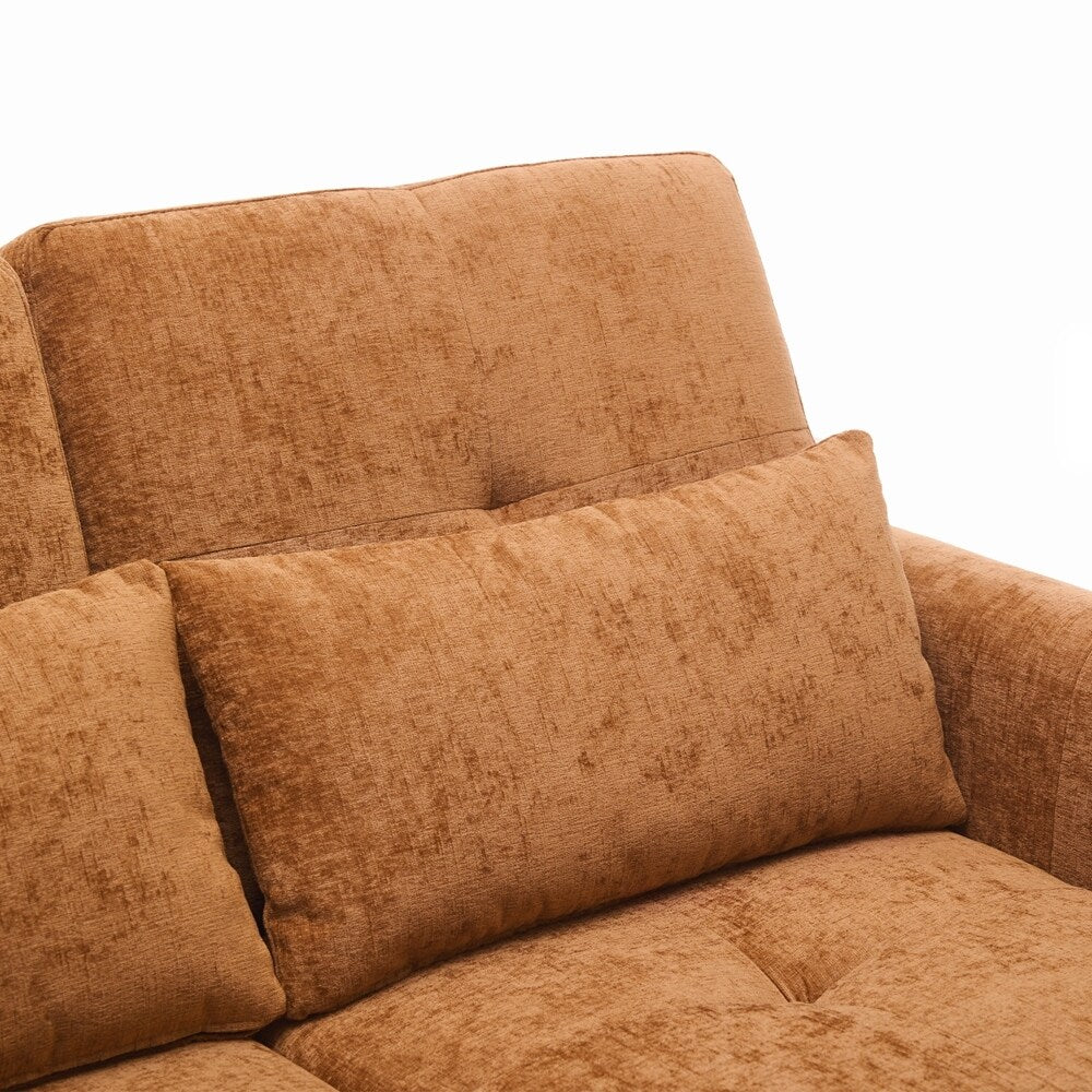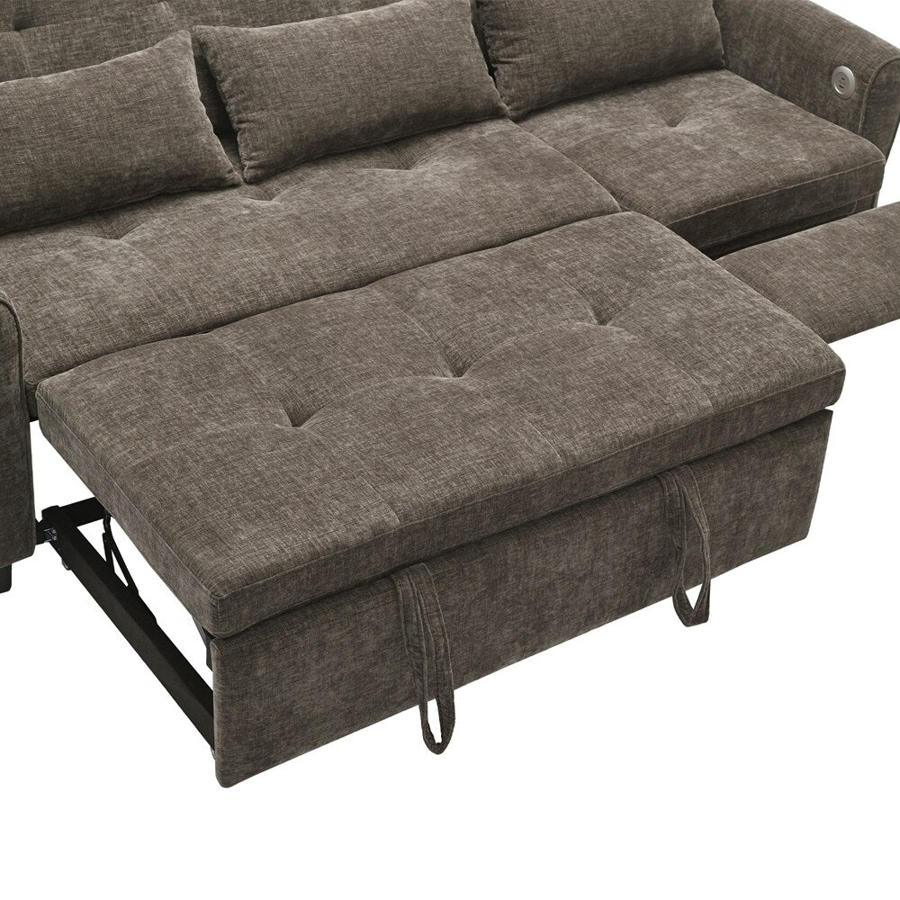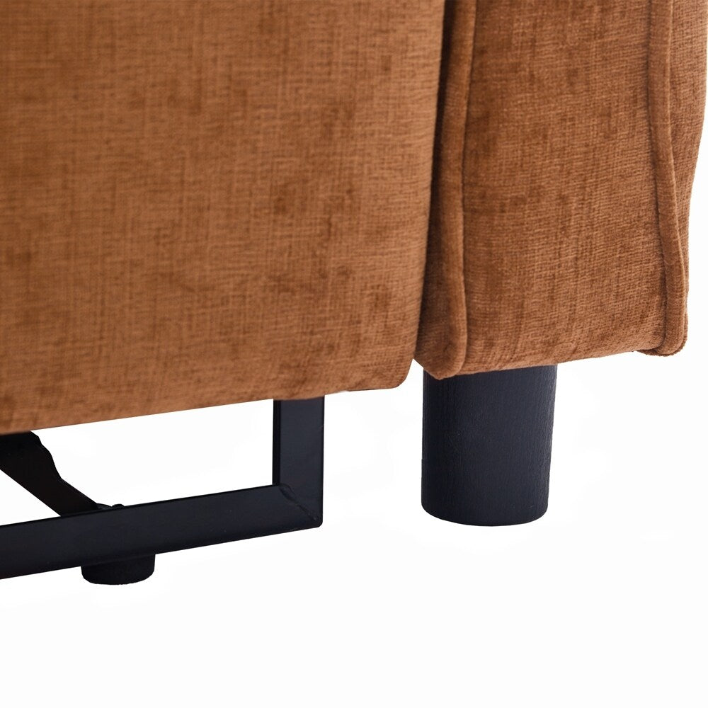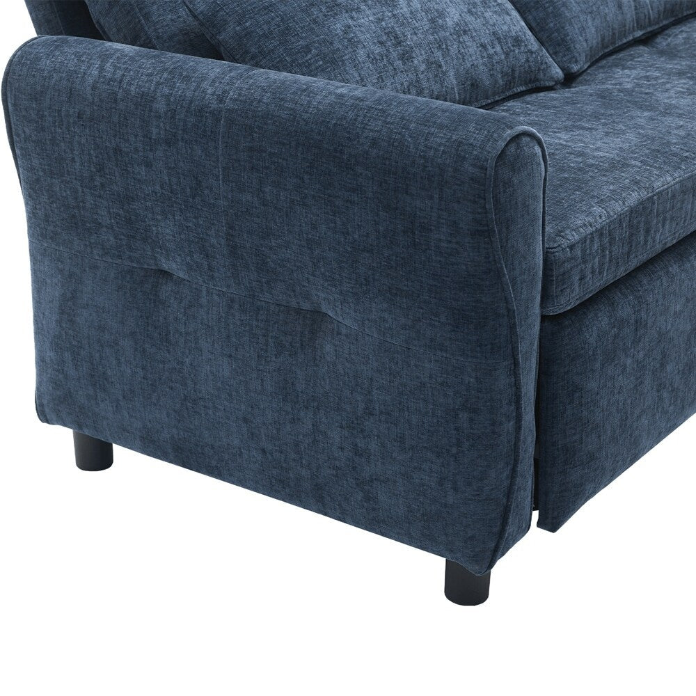 Innovative 2-in-1 Sofa - This sofa offers both a spacious pull-out sleeper and a functional recliner section in one smart design, making it ideal for homes that need both comfort and versatility. The pull-out bed provides a generous sleeping area for guests, while the recliner adds an extra layer of relaxation. This rare combination makes it a standout piece, perfect for modern, multifunctional spaces.Three - Level Adjustable Backrest - Both backrests are designed with a three-position reclining system (sofa bed:105 °,140 ° and 180 °, recliner:105 °,120 ° and 140 °), allowing users to adjust the angle individually for each seat. Whether sitting upright for conversation, lounging back for reading, or fully reclining for napping, the adjustable backrests meet a variety of comfort needs, making it perfect for families with different preferences.Reversible Recliner Section - The functional recliner chair section can be installed on either the left or right side of the sofa, offering maximum flexibility to fit different room layouts and personal habits. Whether your living room requires a left-arm or right-arm recliner configuration, this design adapts effortlessly without the need for special tools.Elegant Curved Armrests with Tufted Detailing - The sofa's armrests feature a smooth, rounded arc design that provides a classic and timeless look while enhancing arm support. The button-tufted accents on both the backrests and seat cushions create a sophisticated visual texture, giving the sofa a premium appearance that complements various home décor styles, from modern to traditional.Dual USB Charging Ports for Modern Convenience - Equipped with two built-in USB charging ports conveniently located on the armrest, this sofa lets you easily charge smartphones, tablets, or other electronic devices without leaving your seat. This feature is especially useful for busy households or tech-savvy users who want to stay connected while relaxing.Easy to Assemble - This sofa is easy to assemble, all necessary accessories and detailed instructions are included. It comes with 3 boxes. Overall dimension: 82'W*33.5'D*36'H.