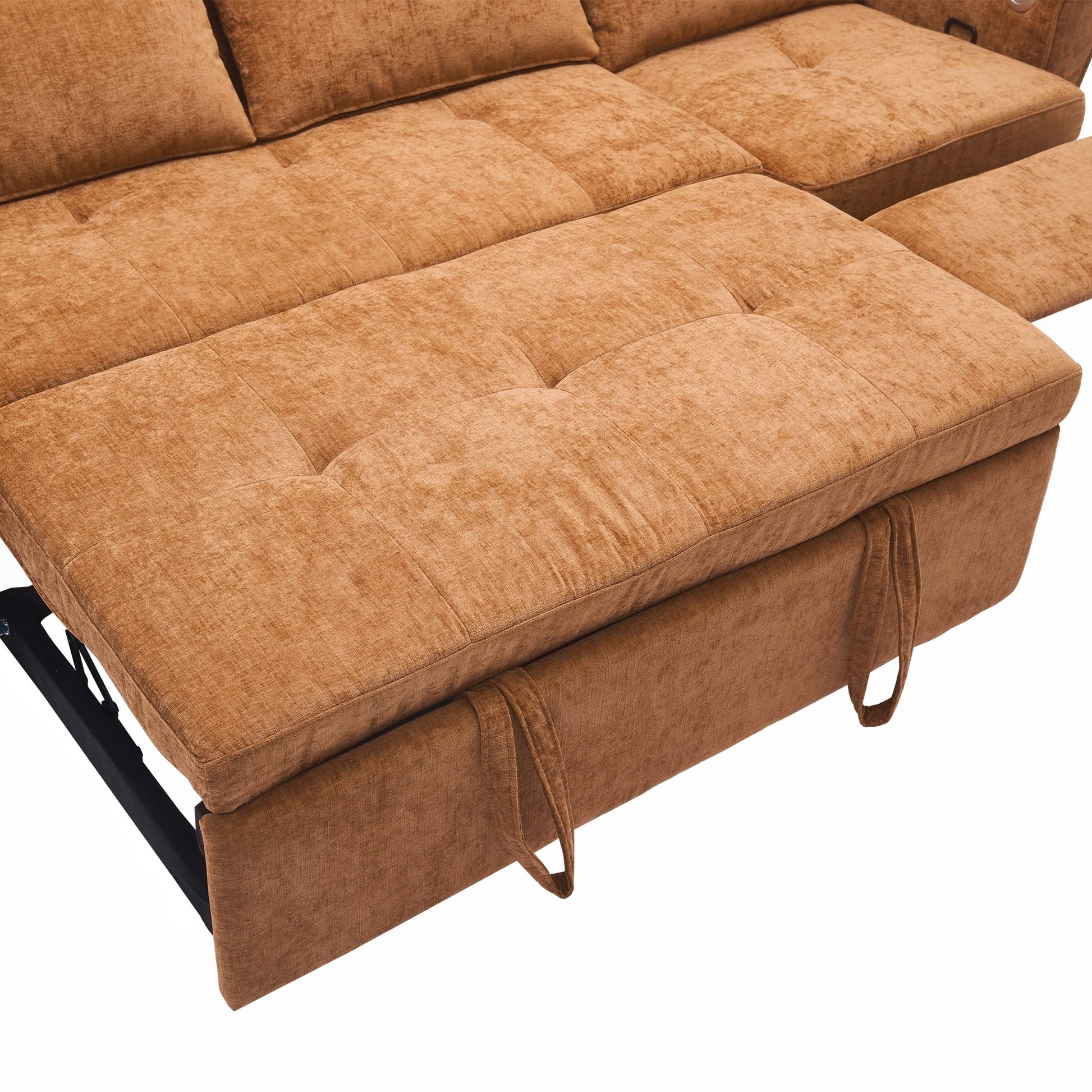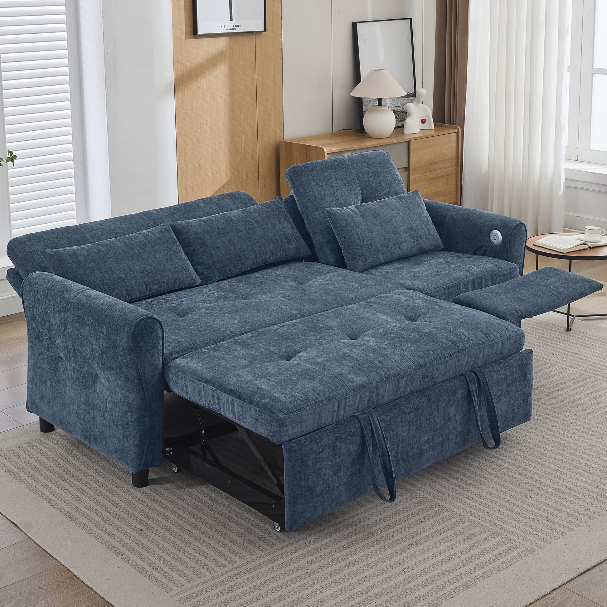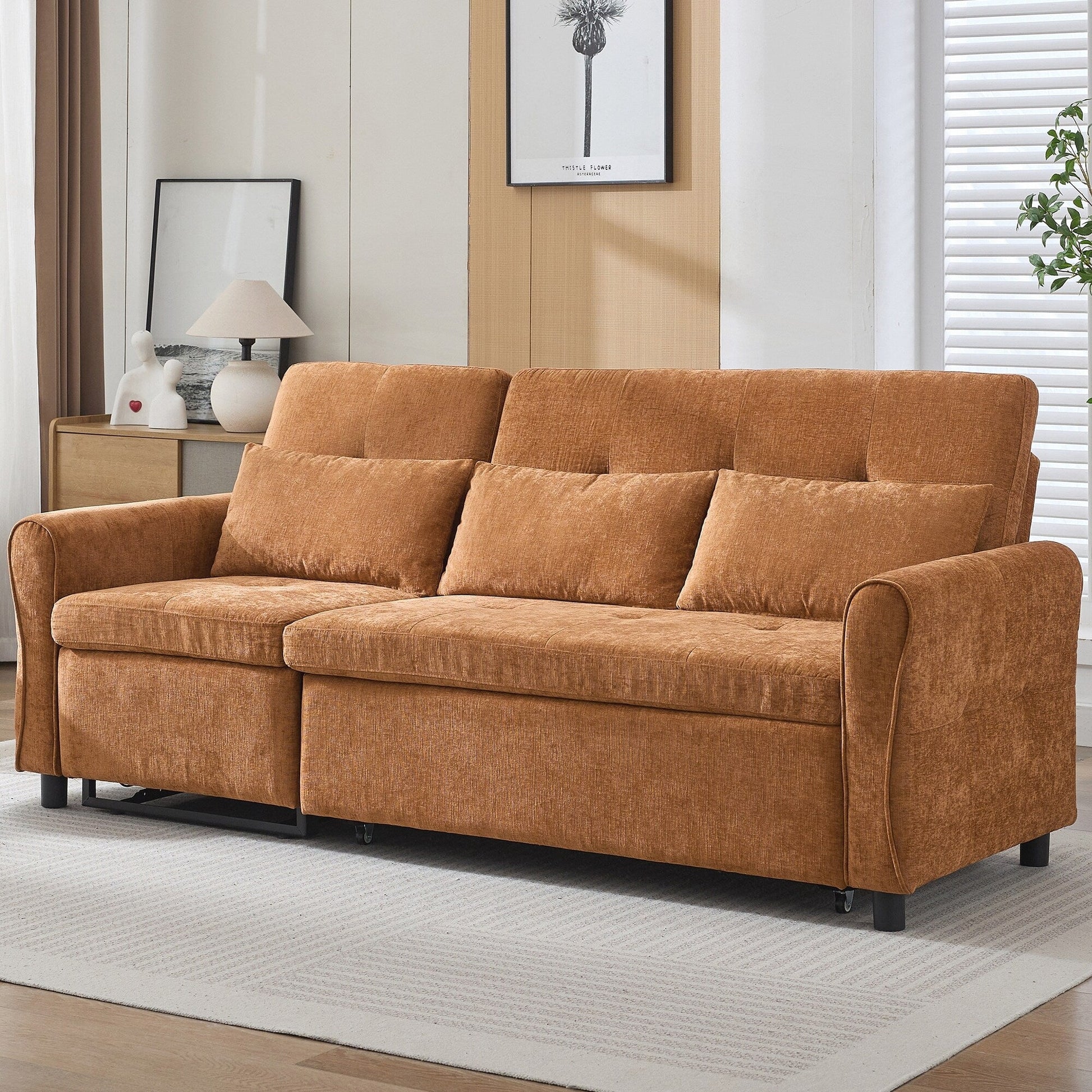 Dual USB Charging Ports Equipped with two built-in USB charging ports conveniently located on the armrest, this sofa lets you easily charge smartphones, tablets, or other electronic devices without leaving your seat. Elegant Curved Armrests with Tufted Detailing The sofa features gracefully rounded armrests that offer both enhanced arm support and a timeless, elegant silhouette. Button-tufted detailing on the backrests and seat cushions adds refined visual texture, elevating the overall aesthetic.