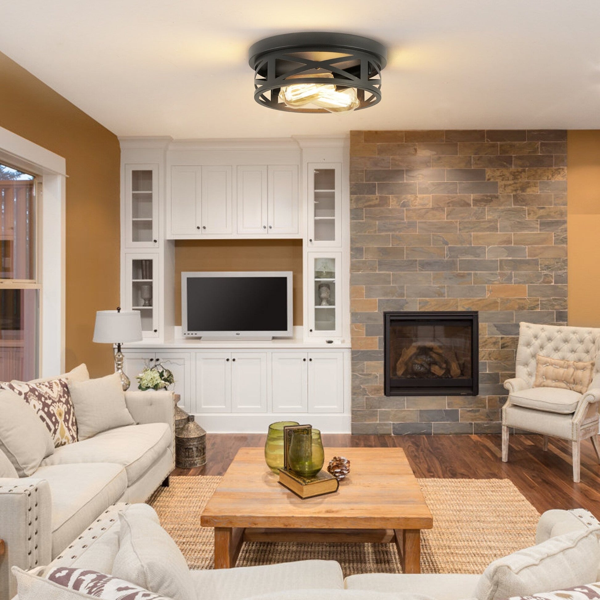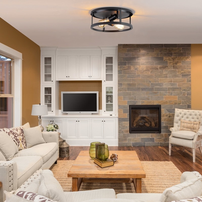 2-Light Black Farmhouse Flush Mount Ceiling...