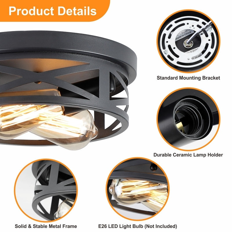 2-Light Black Farmhouse Flush Mount Ceiling Light-2 Pack