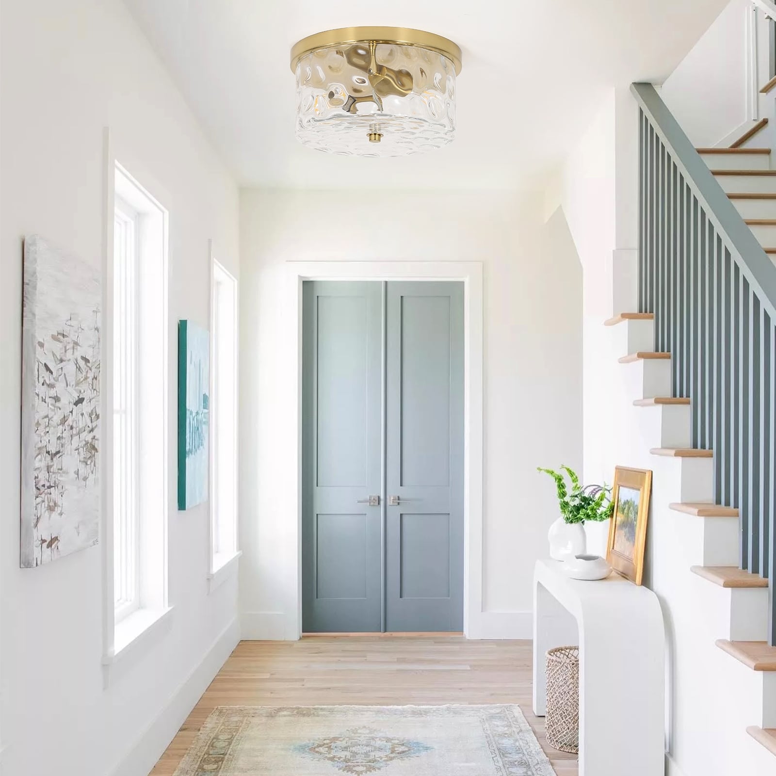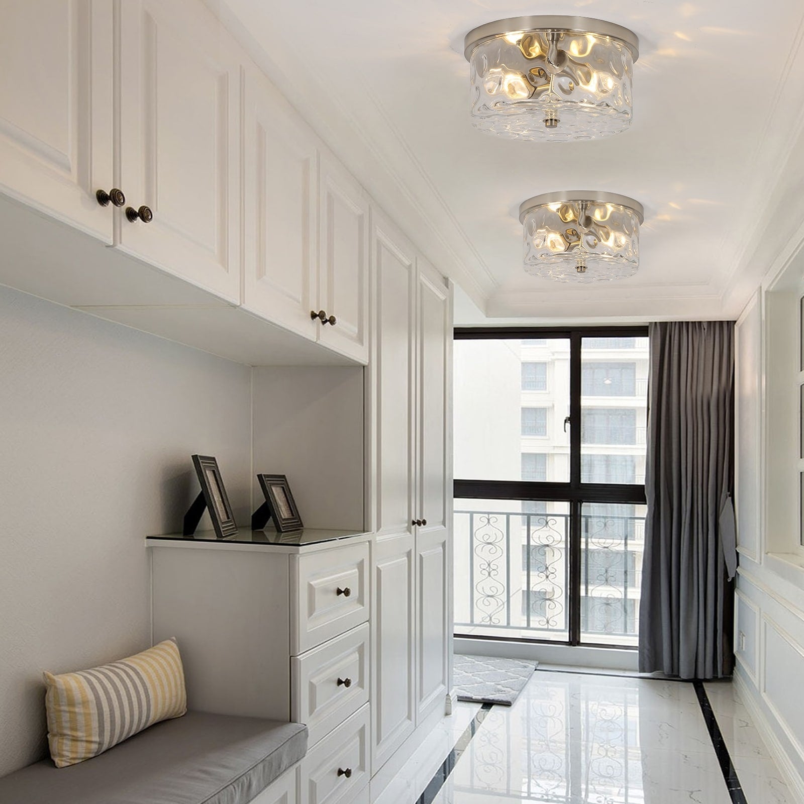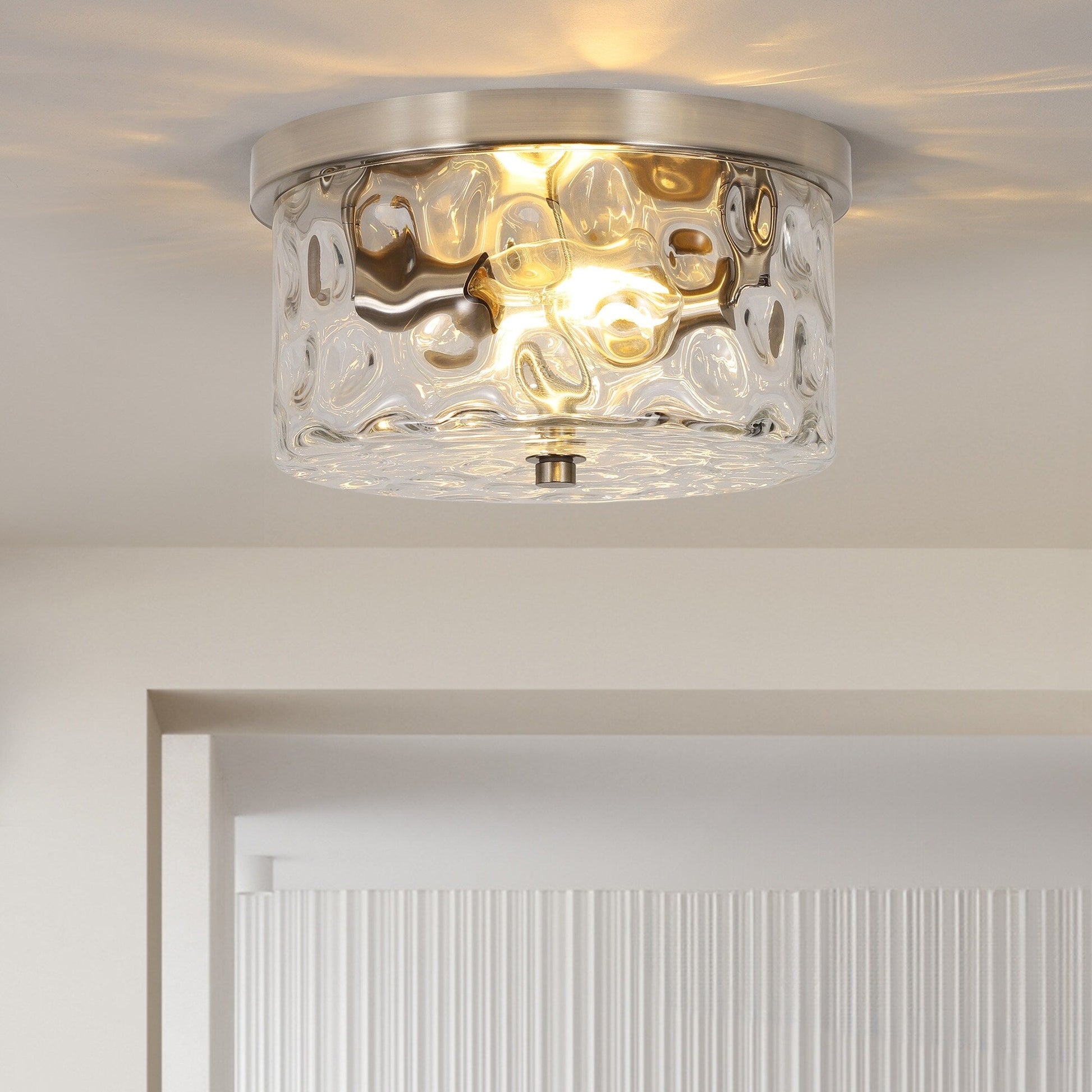 2-Light Flush Mount Ceiling Light with Clear Hammered...