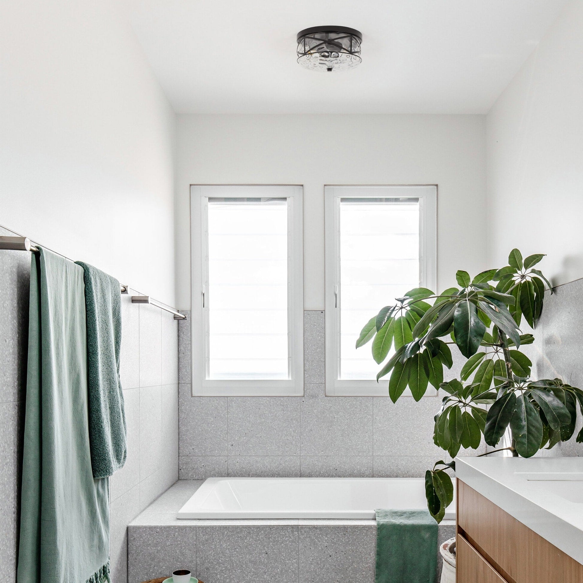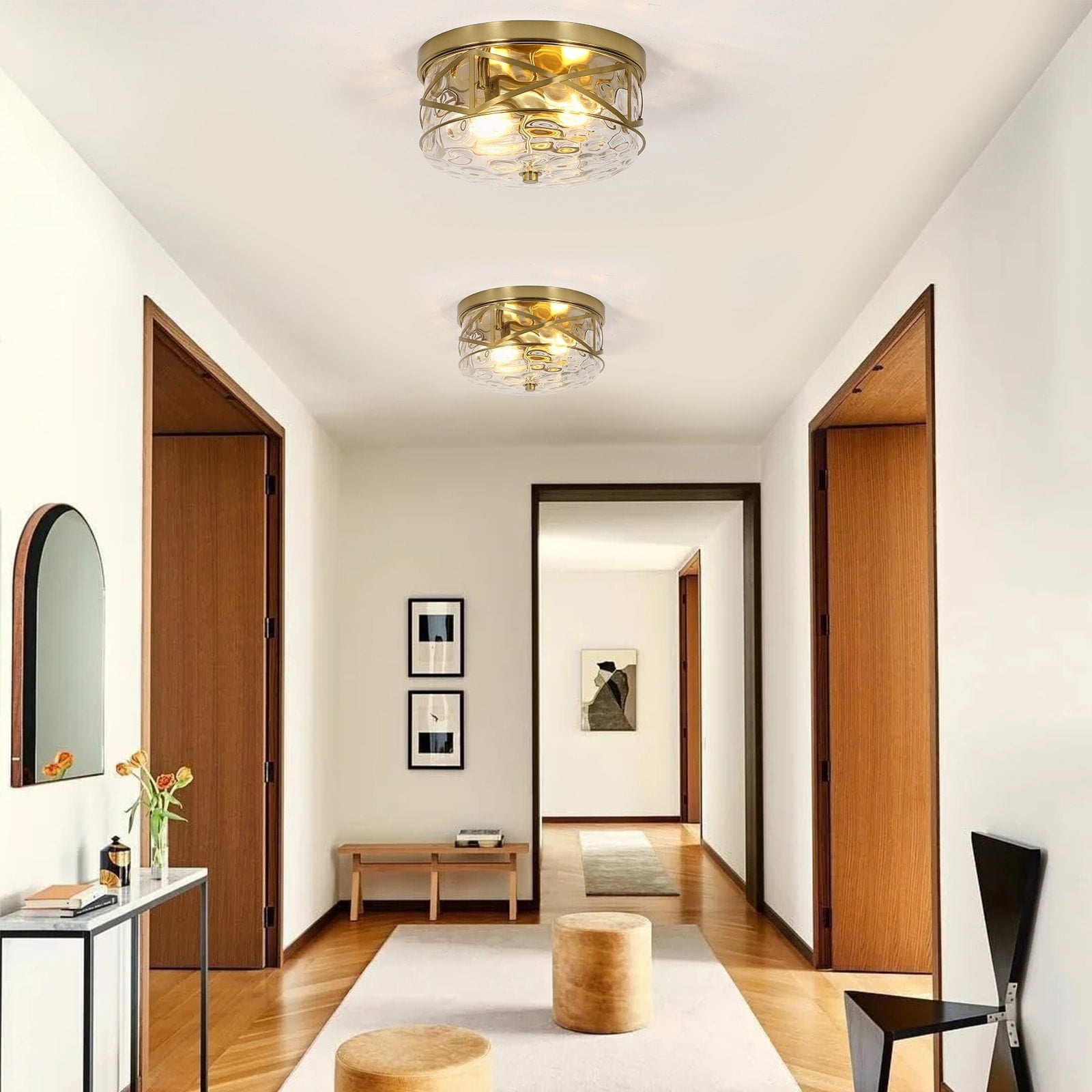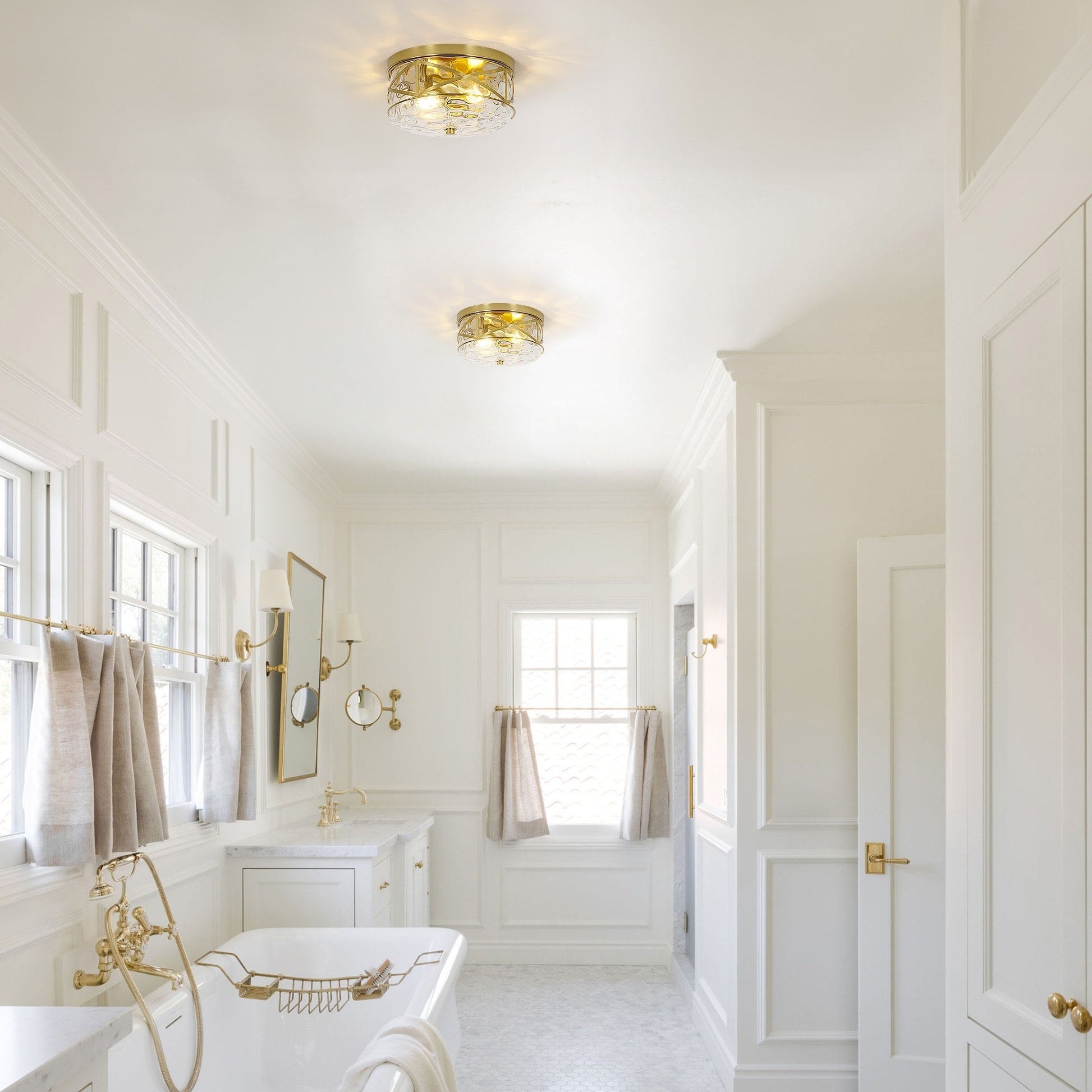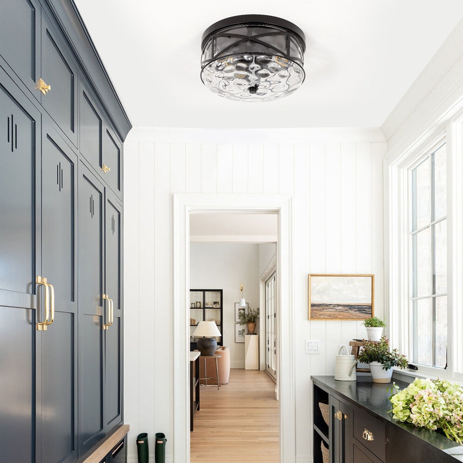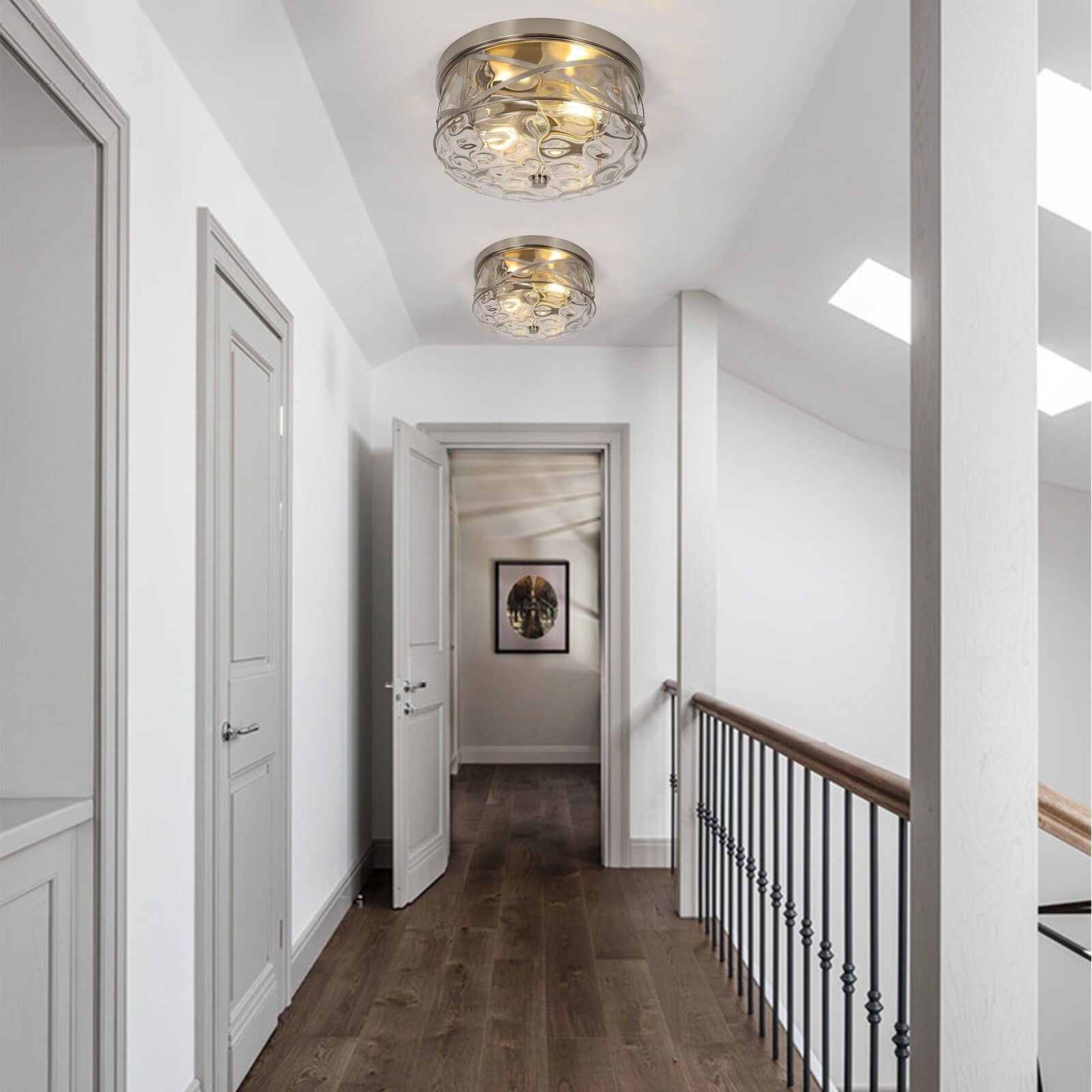 2-Light Flush Mount Glass Ceiling Light with Metal...