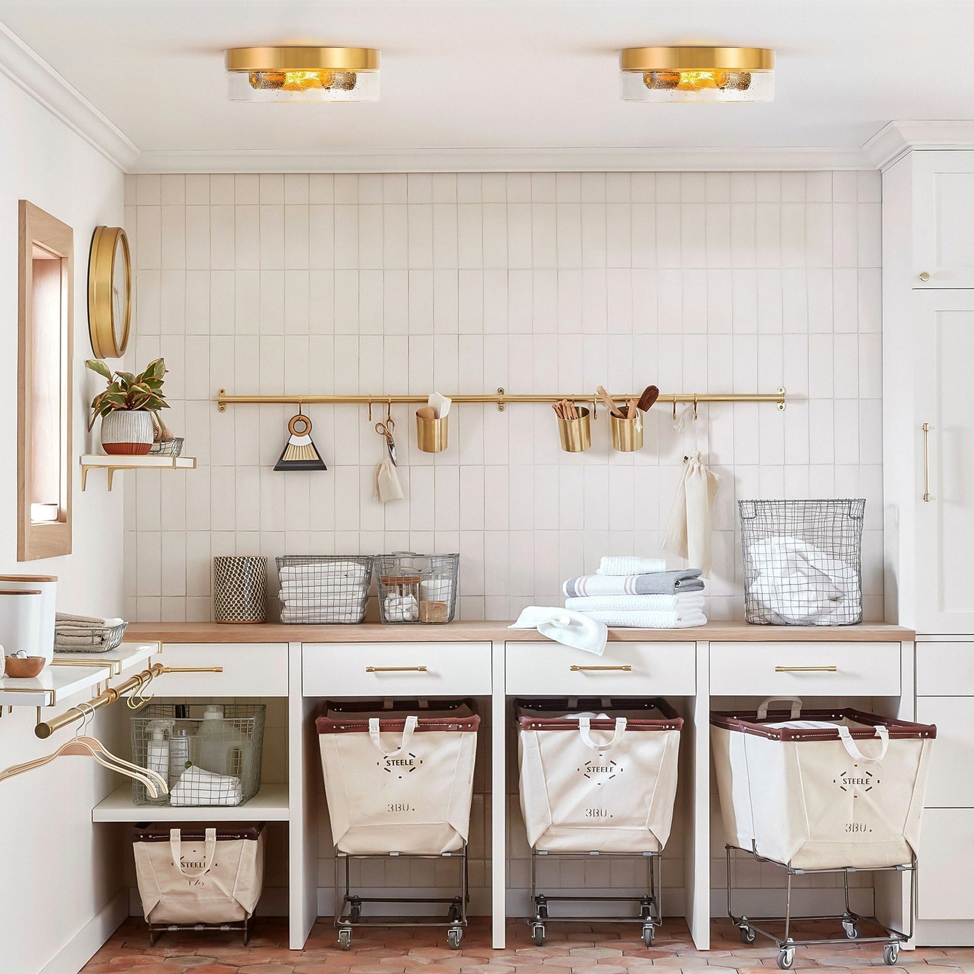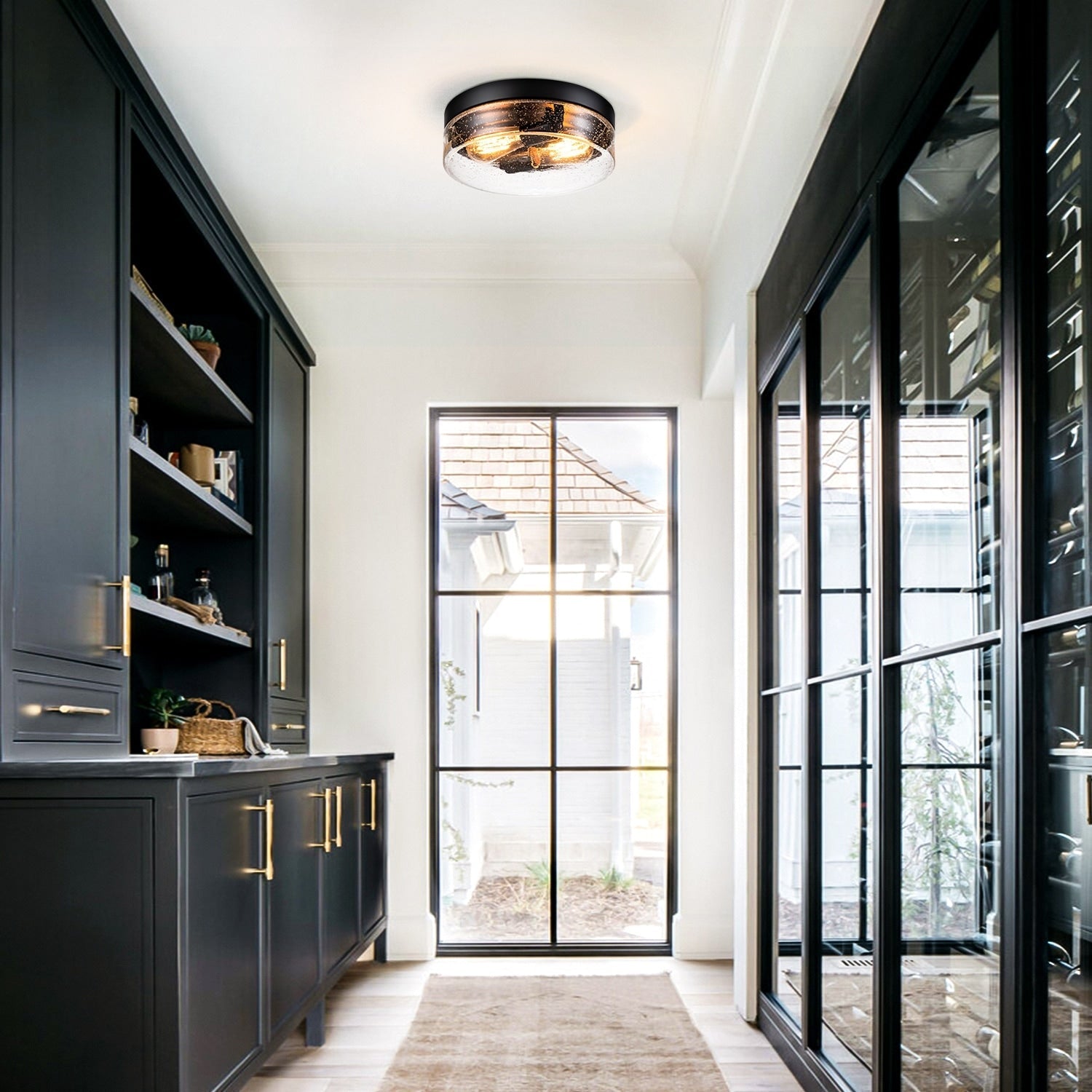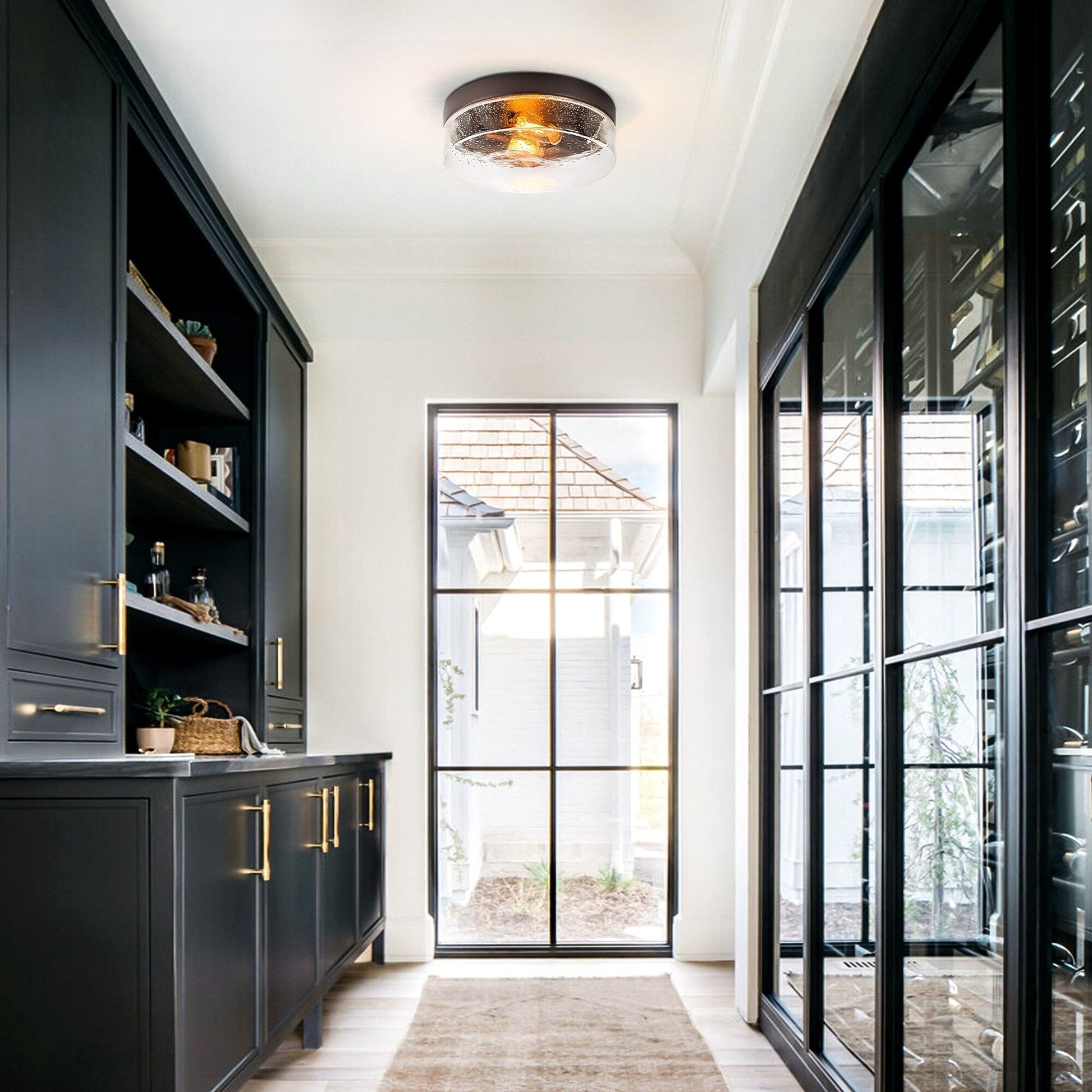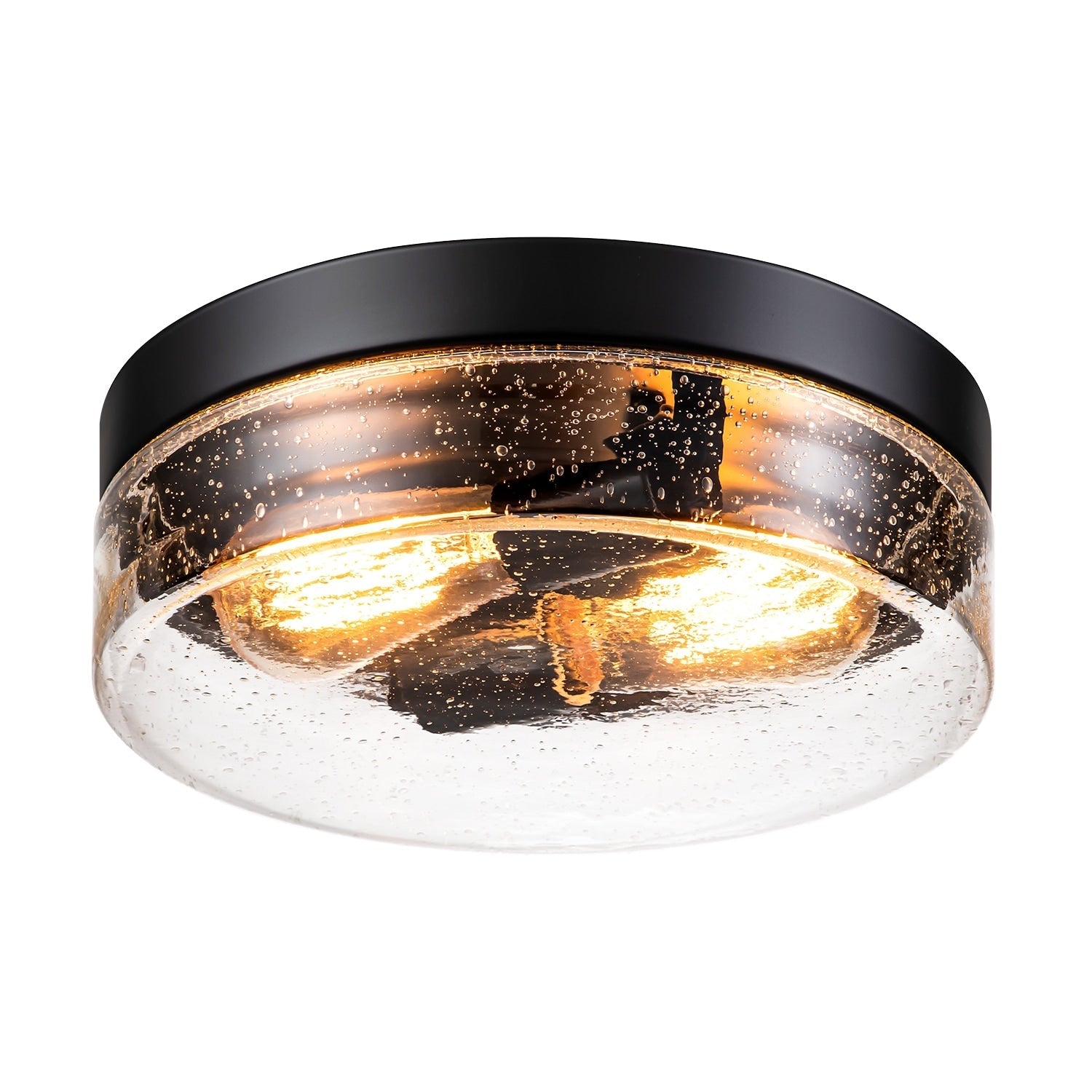 2-Light Modern Farmhouse Dome Clear Seeded/Bubble Glass Flush...