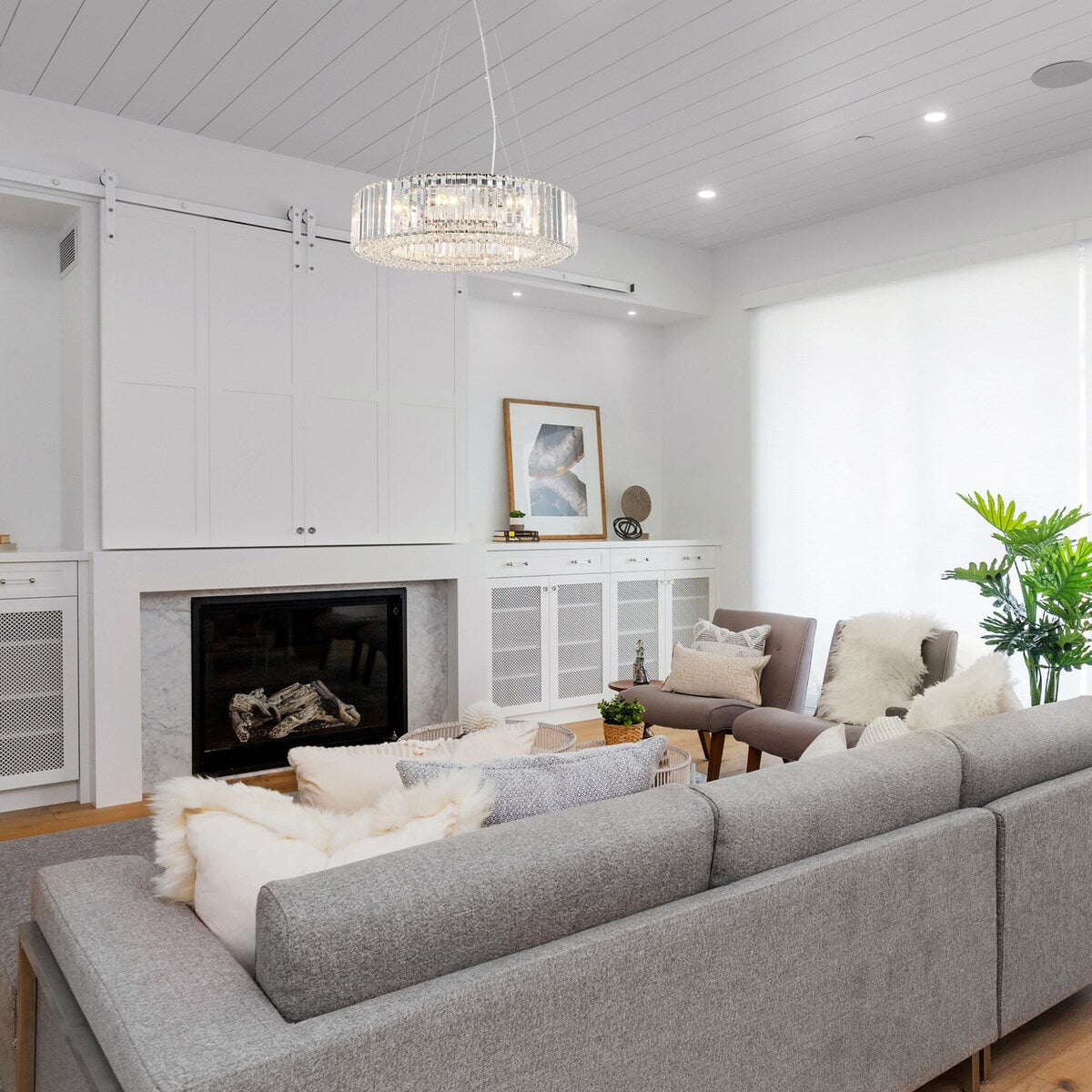 24.8 in. 8-Light Farmhouse Chandelier, Crystal Chandelier, Drum...