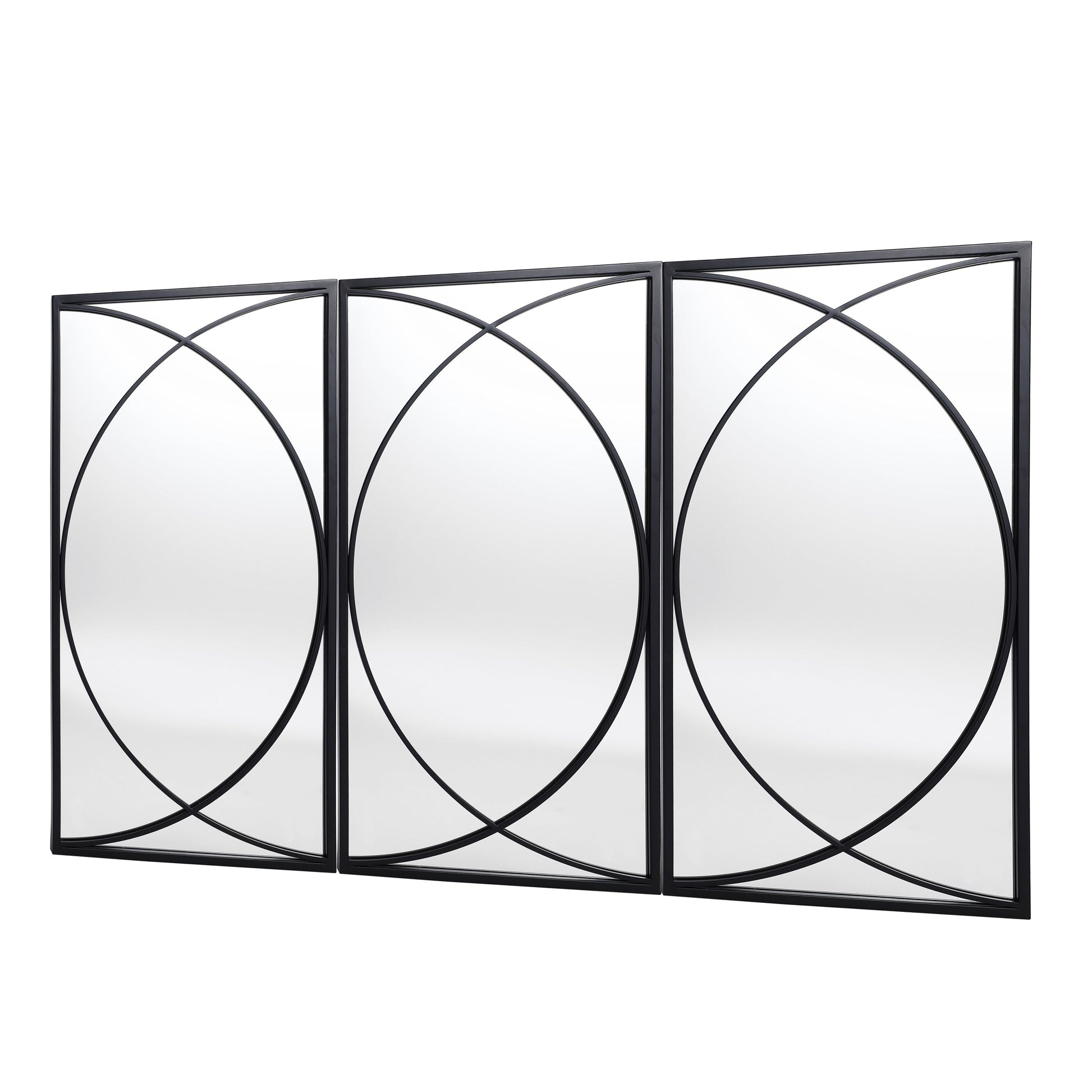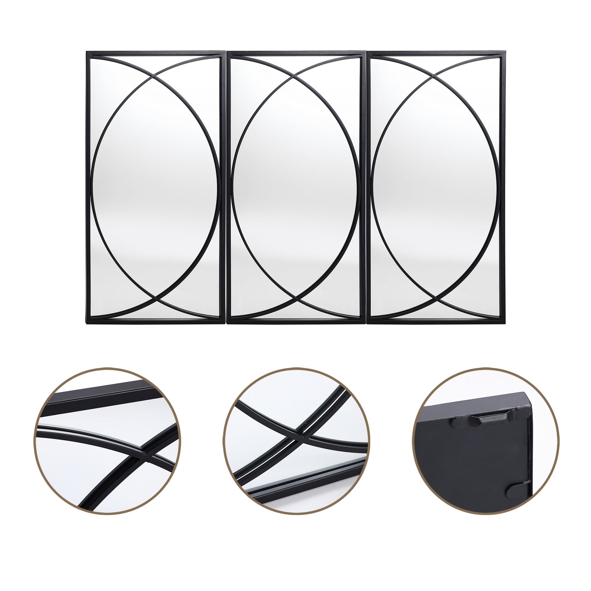 3-Piece Black Metal Rectangular Wall Mirror Set -...
