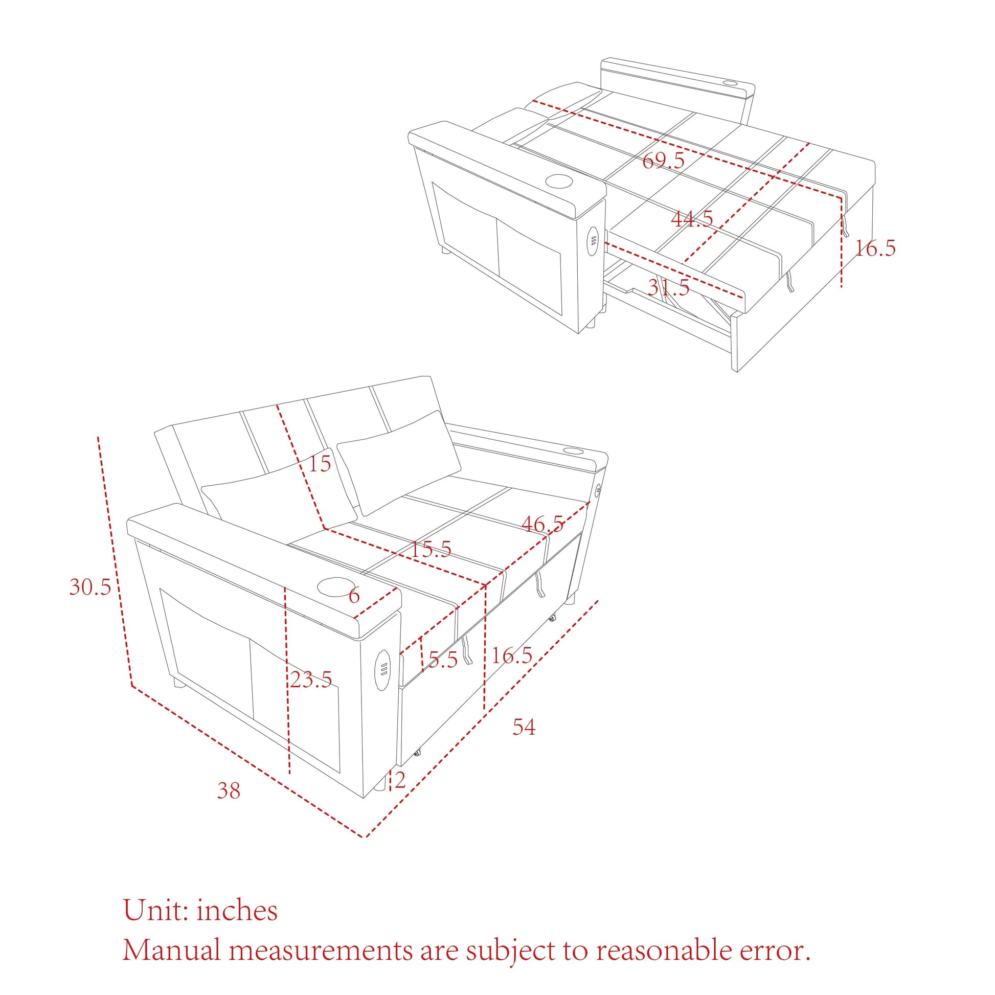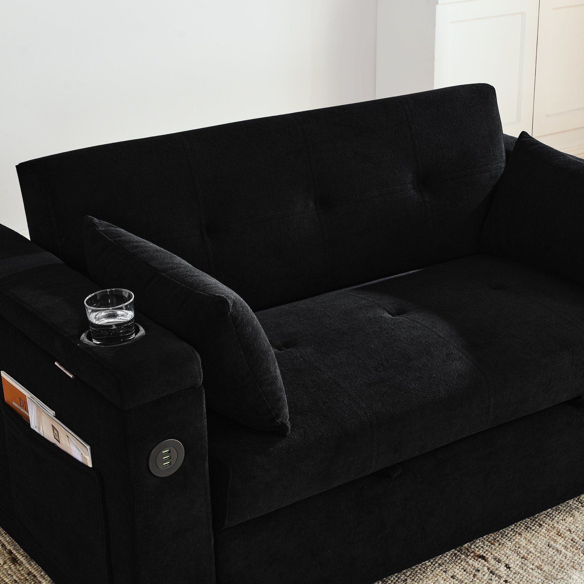 The side armrests are equipped with USB power port, which can provide supplies when you are resting or sitting on the sofa to play your cell phone.