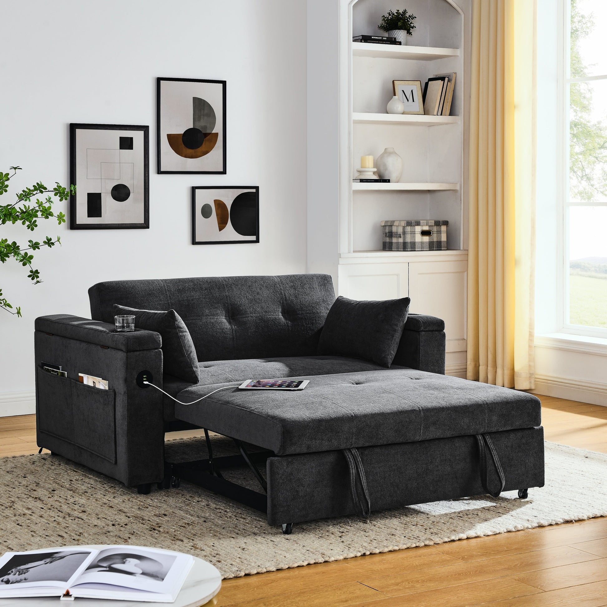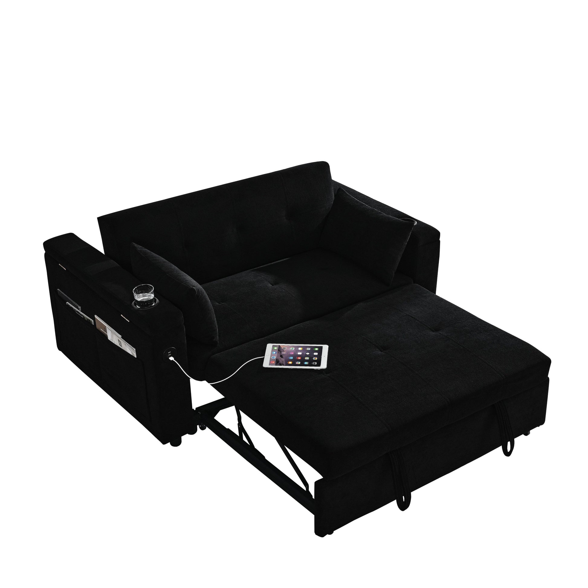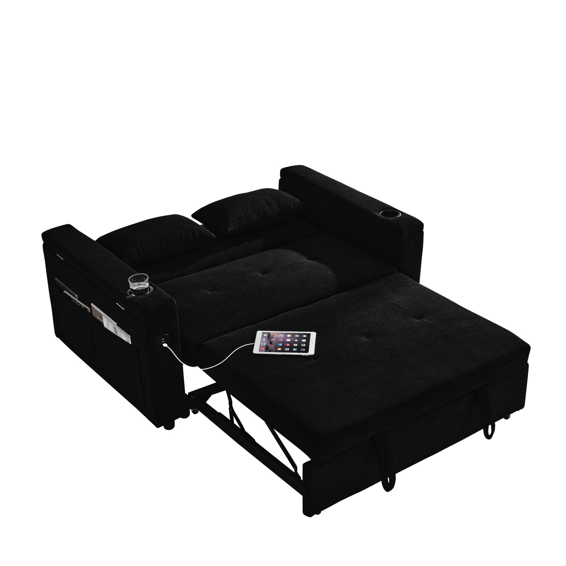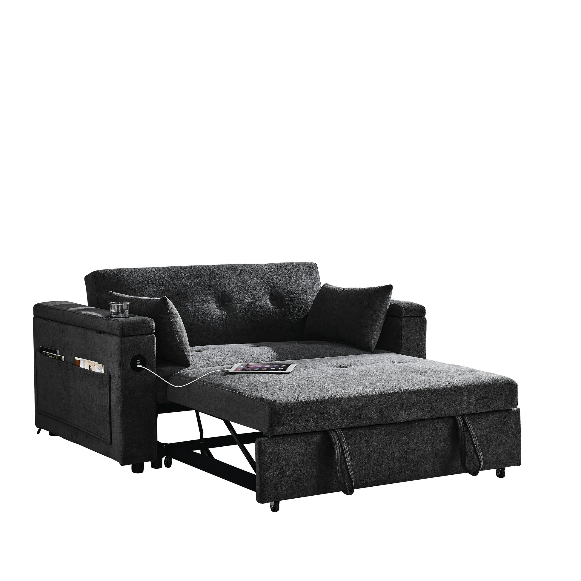 USE: It has two straps to assist in pulling out, which can quickly turn the sofa into a bed. The pull-out strapped bed is made of high quality foam and metal iron frame, which can support you to lie firmly on the bed.