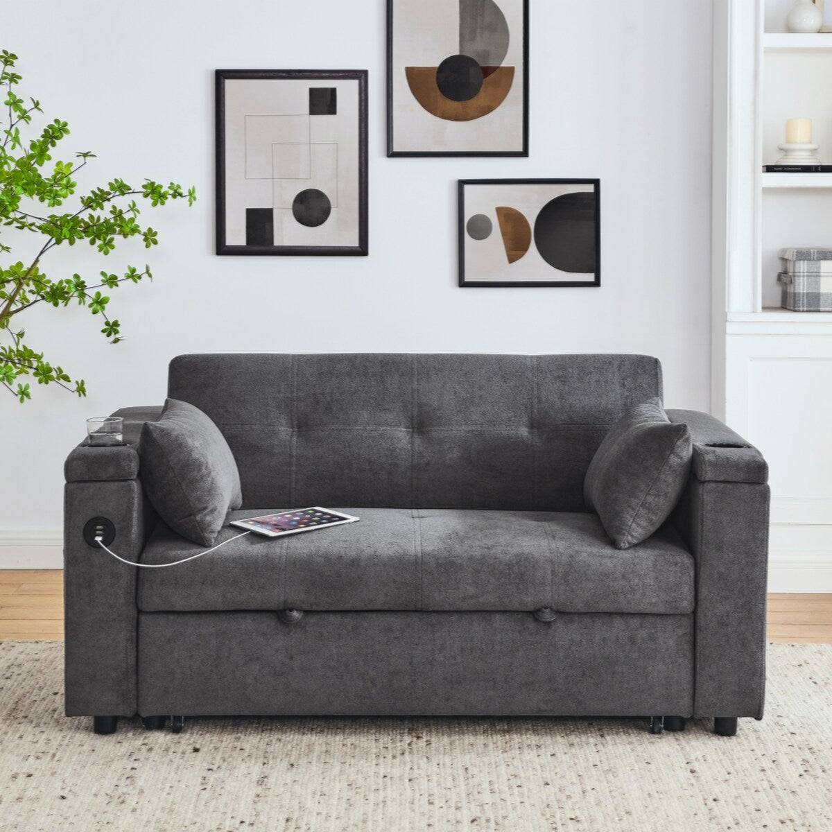 54 Pull-Out Sleeper Sofa Bed Double Seat Recliner Sofa Bed with Armrests with Storage and Side Pockets,with USB Power Outlet