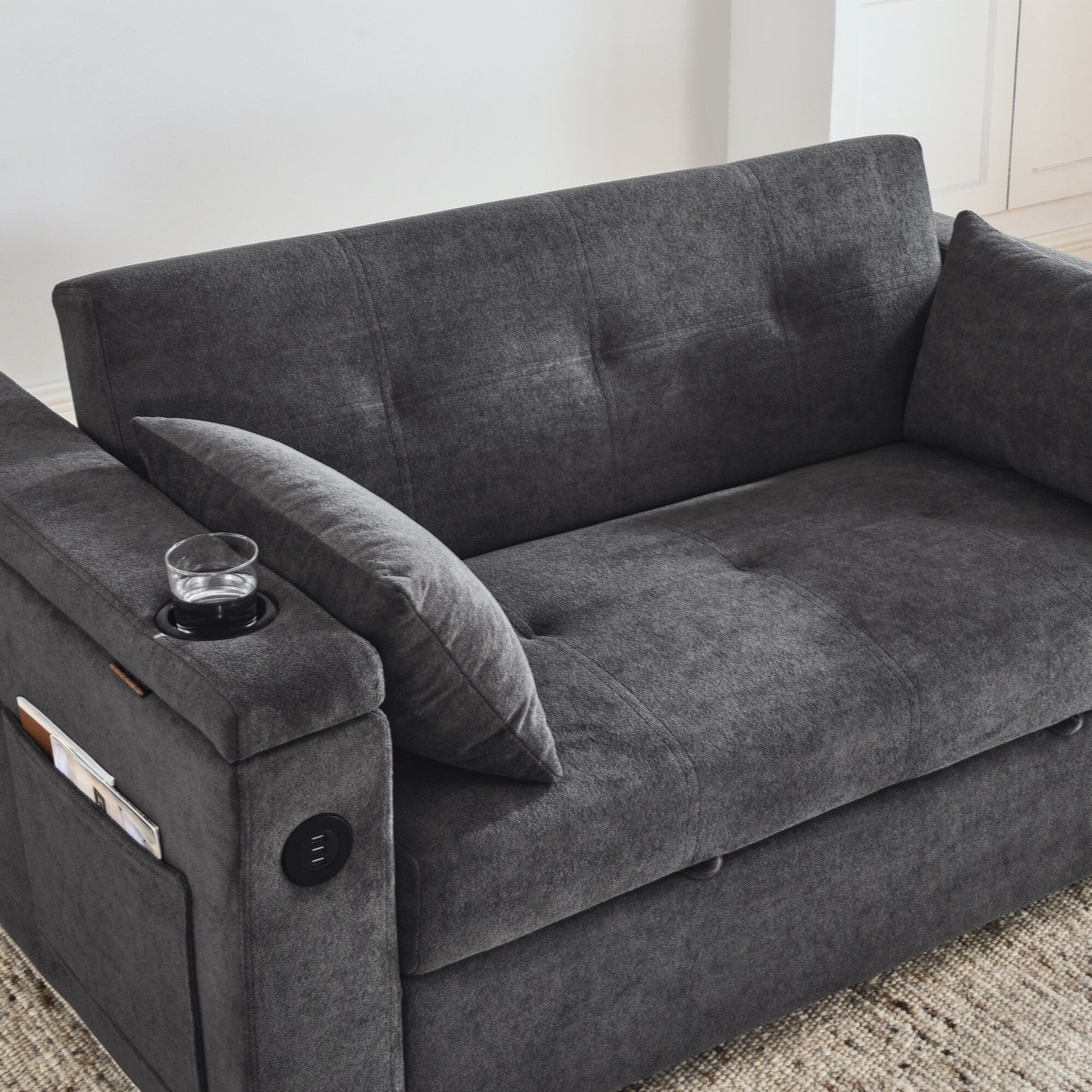 • ★The side armrests are equipped with USB power port, which can provide supplies when you are resting or sitting on the sofa to play your cell phone.