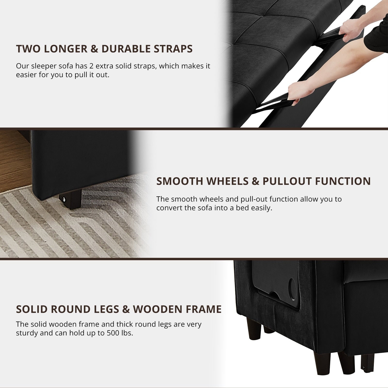 55 Inch Velvet Convertible Sofa, 3...