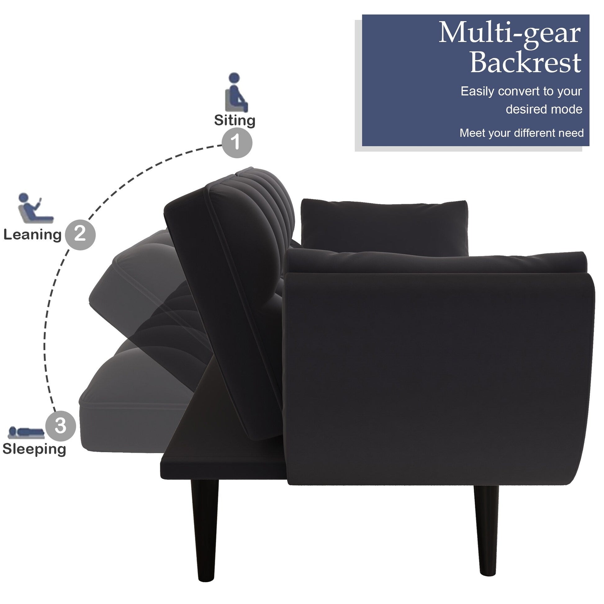 57 Velvet 2 Seater Convertible Sofa with Adjustable...