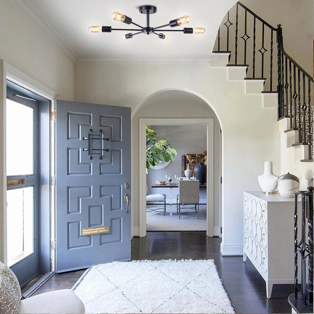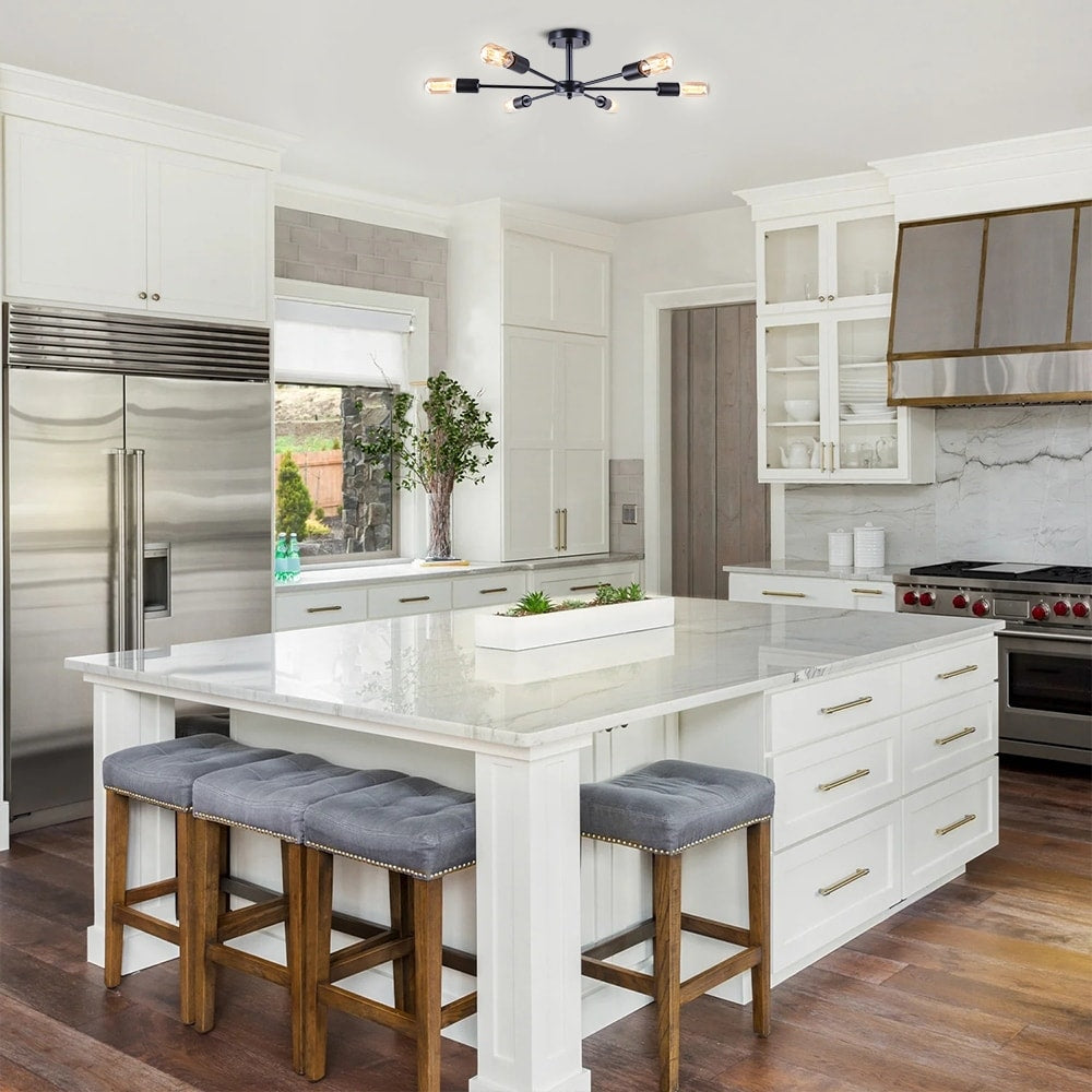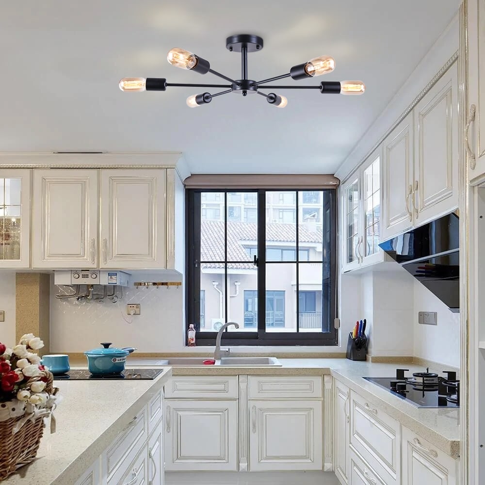 6-Light Modern Industrial Dimmable Sputnik Linear Cluster Semi-Flush...