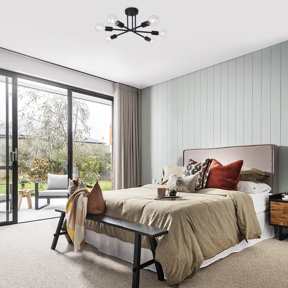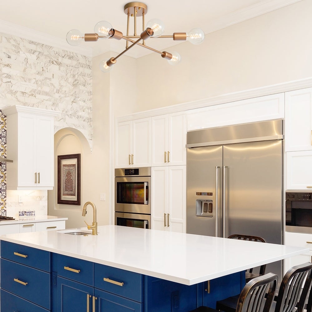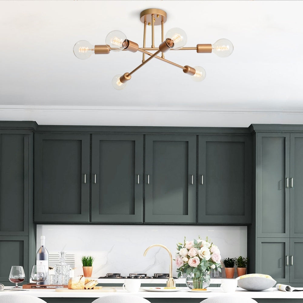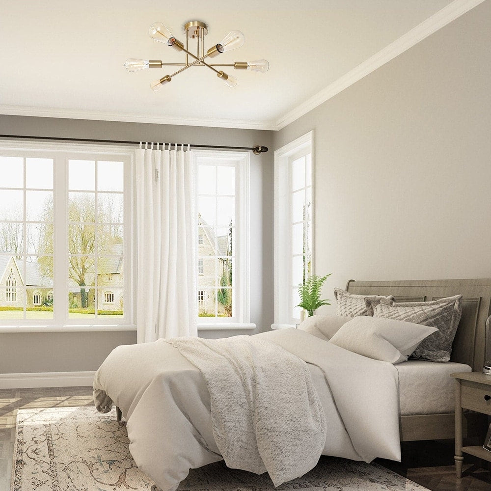 6-Light Modern Industrial Linear Sputnik Branch Semi-Flush Mount...